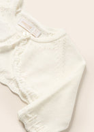 ECOFRIENDS garment 100% organic cotton Long sleeved cardigan for newborn. Single button fastening. Decorative elements: openwork details.