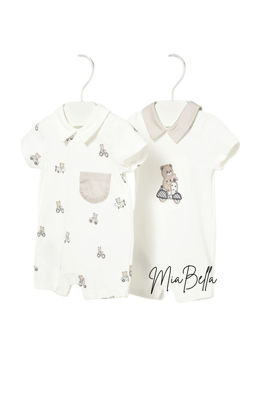 Mayoral Baby Boys Beige 2 Pack of Rompers