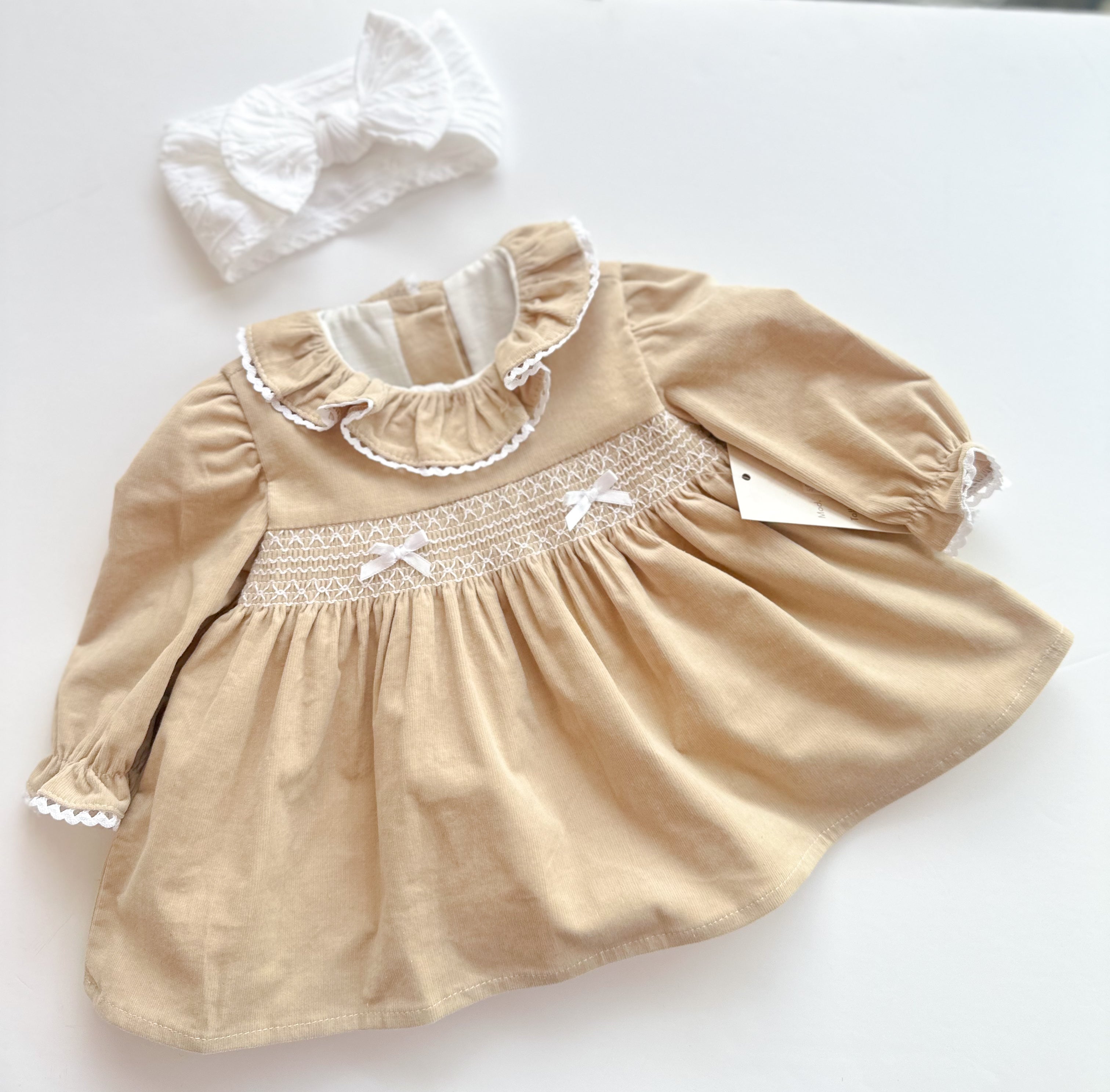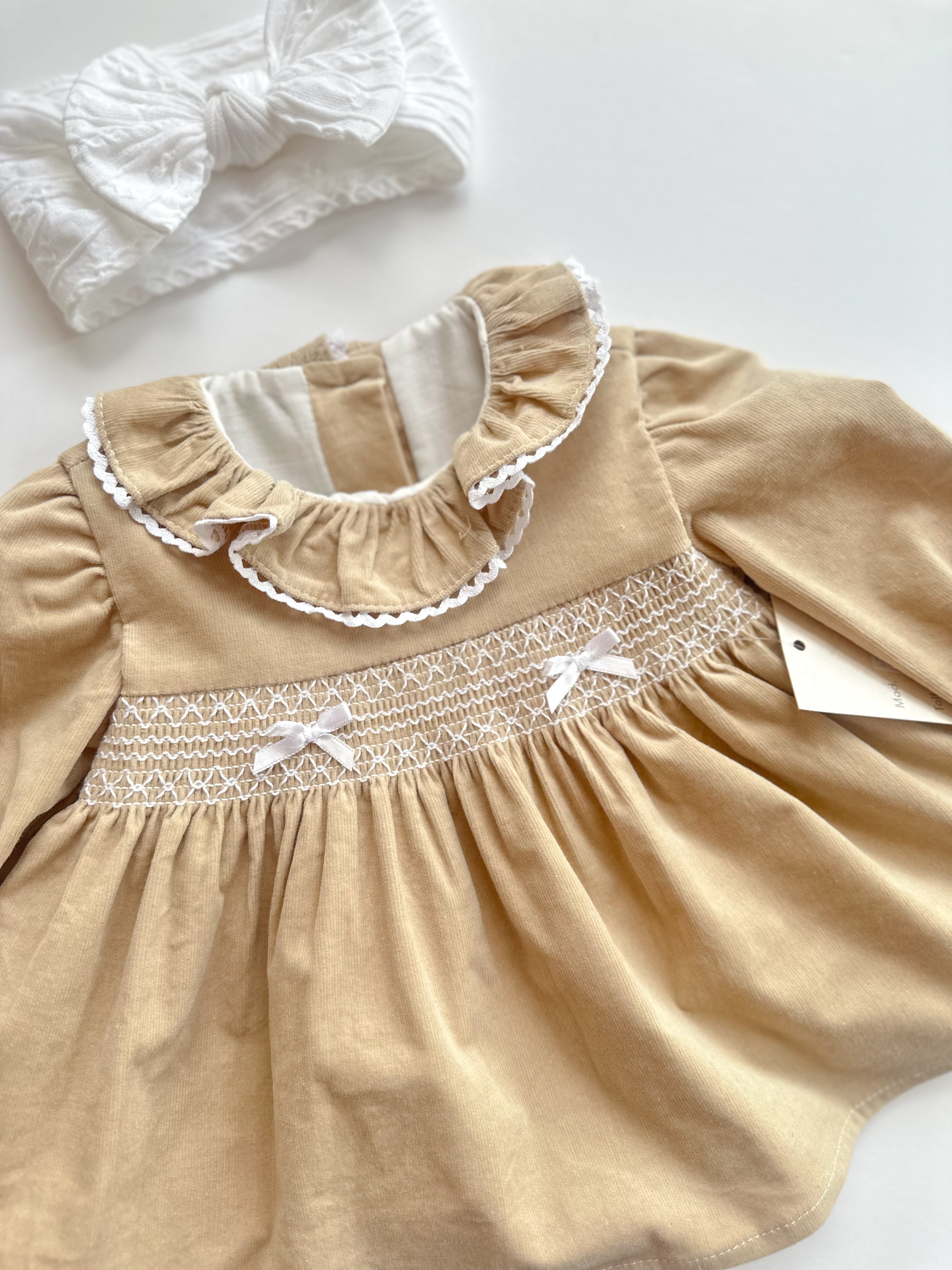 MIA BELLA 2 Piece Smocked Style Set Camel/White