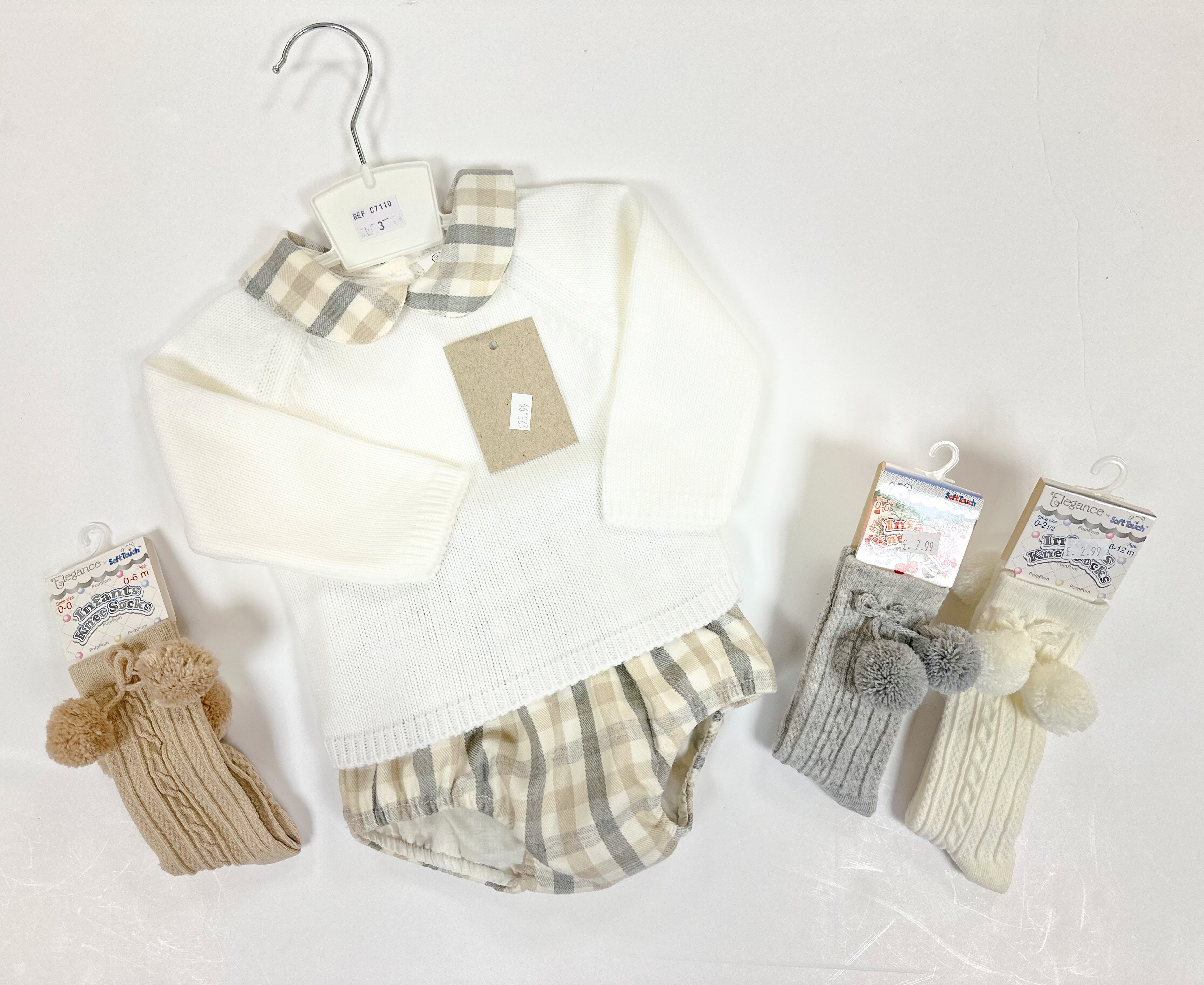 MIA BELLA White Camel Nova Checked Boys 2 Piece Set C7110
