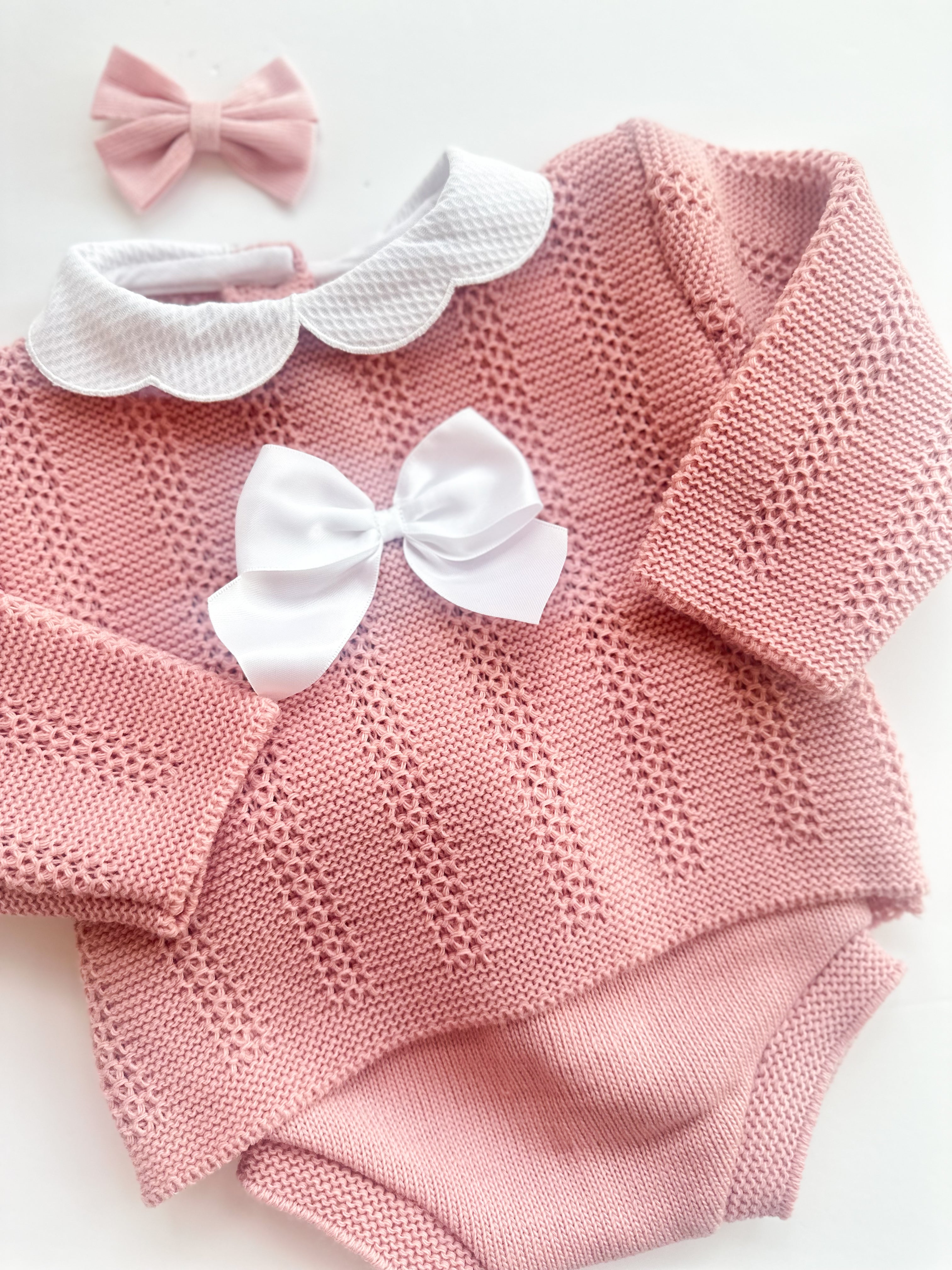 Mia Bella Pink Knit 2 Piece Pramsuit C3262