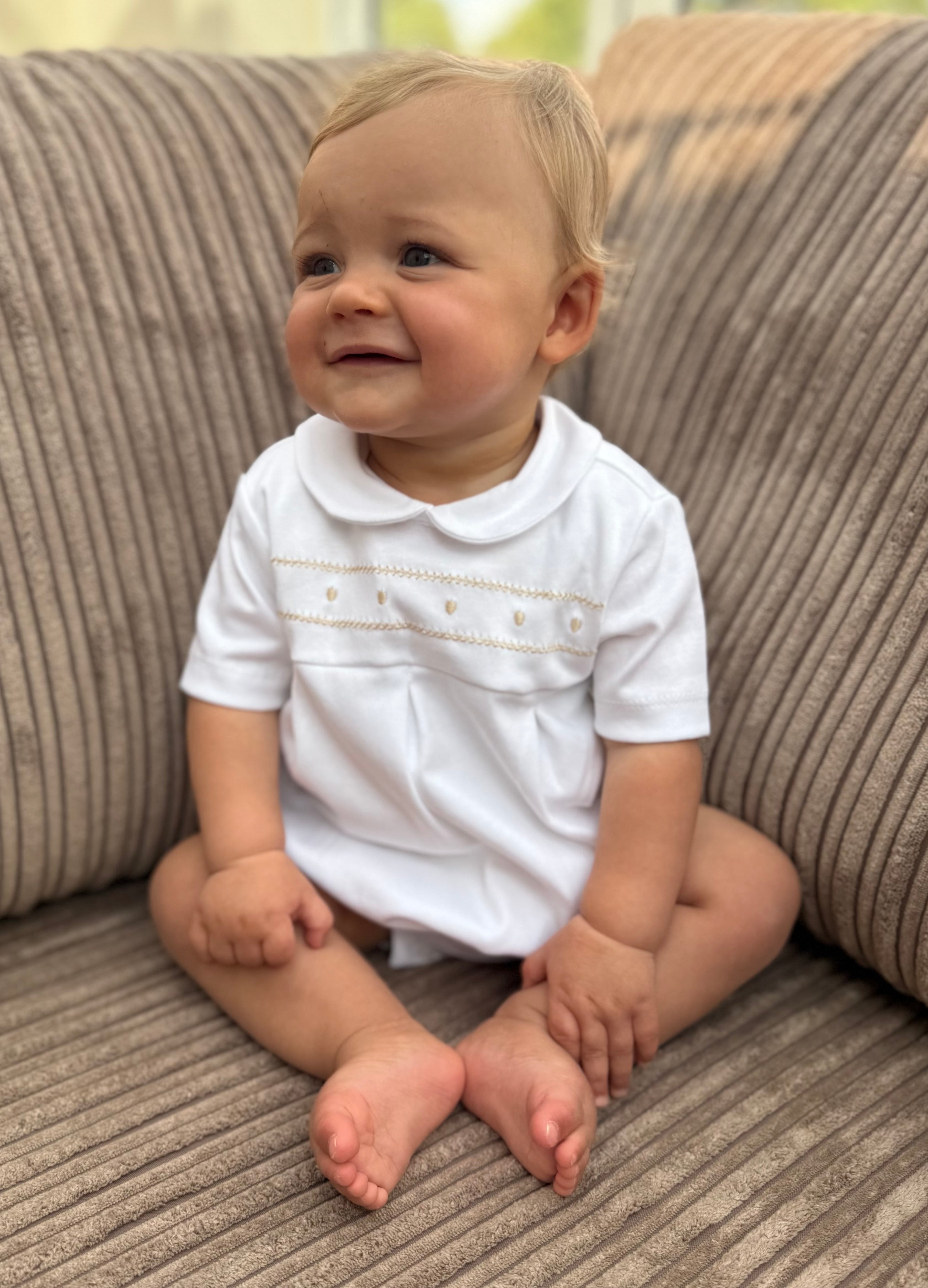 MIA BELLA Luxury Cotton Boys Babygrow Beige