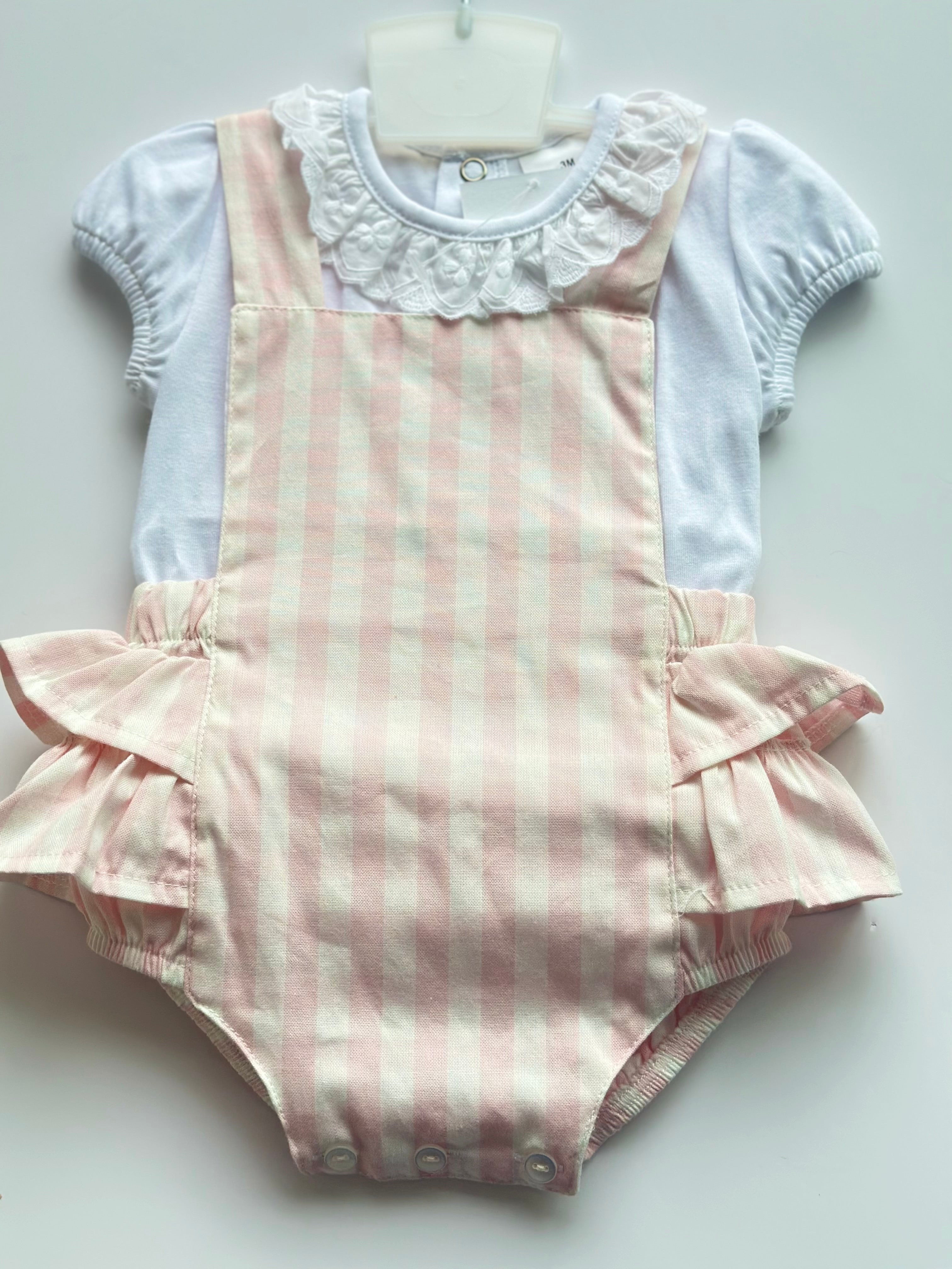 MIA BELLA White/Camel Baby Romper With Embroidery