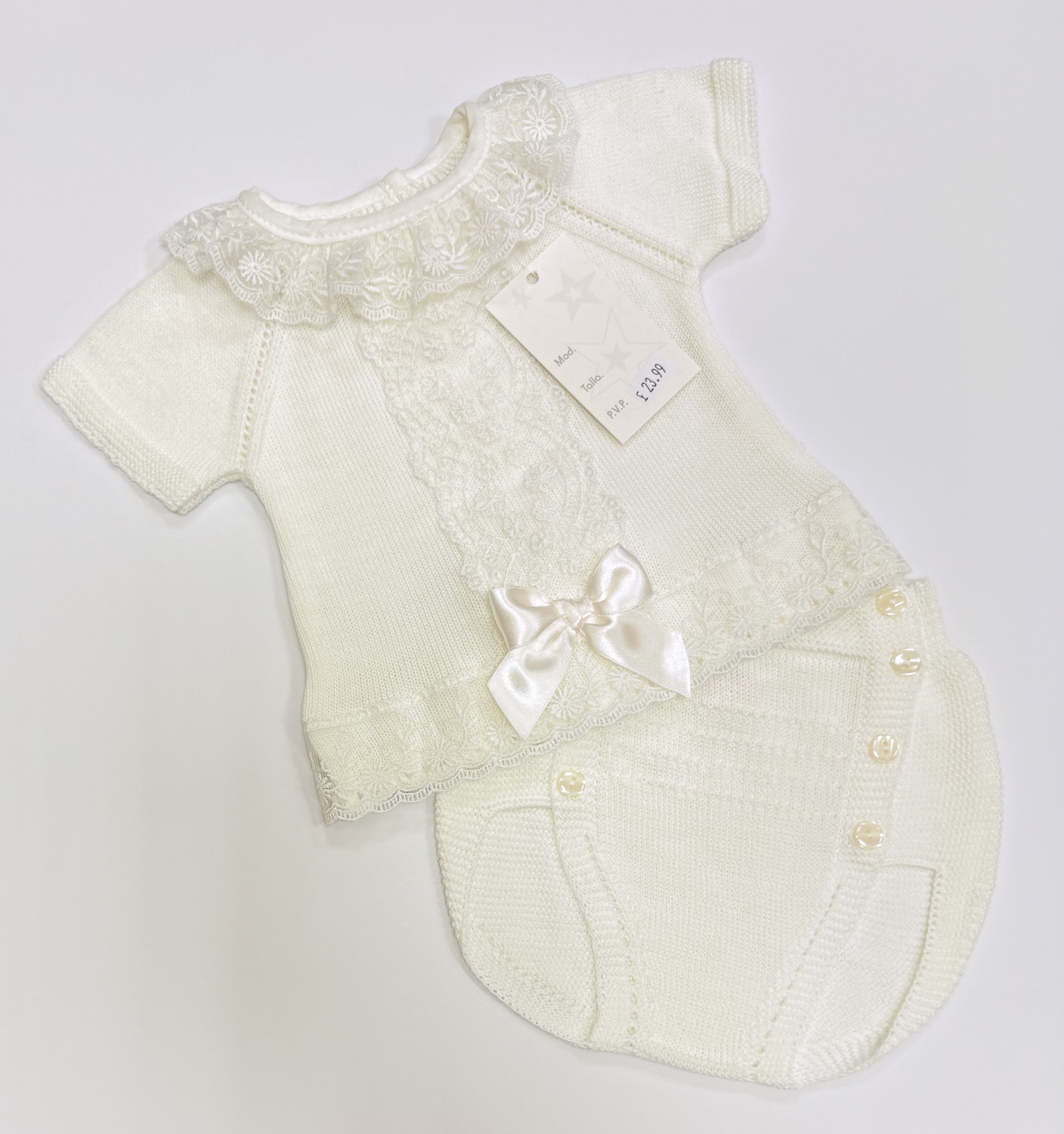 MIA BELLA Luxury Cream & Lace Fine Knit Jam Pant Set