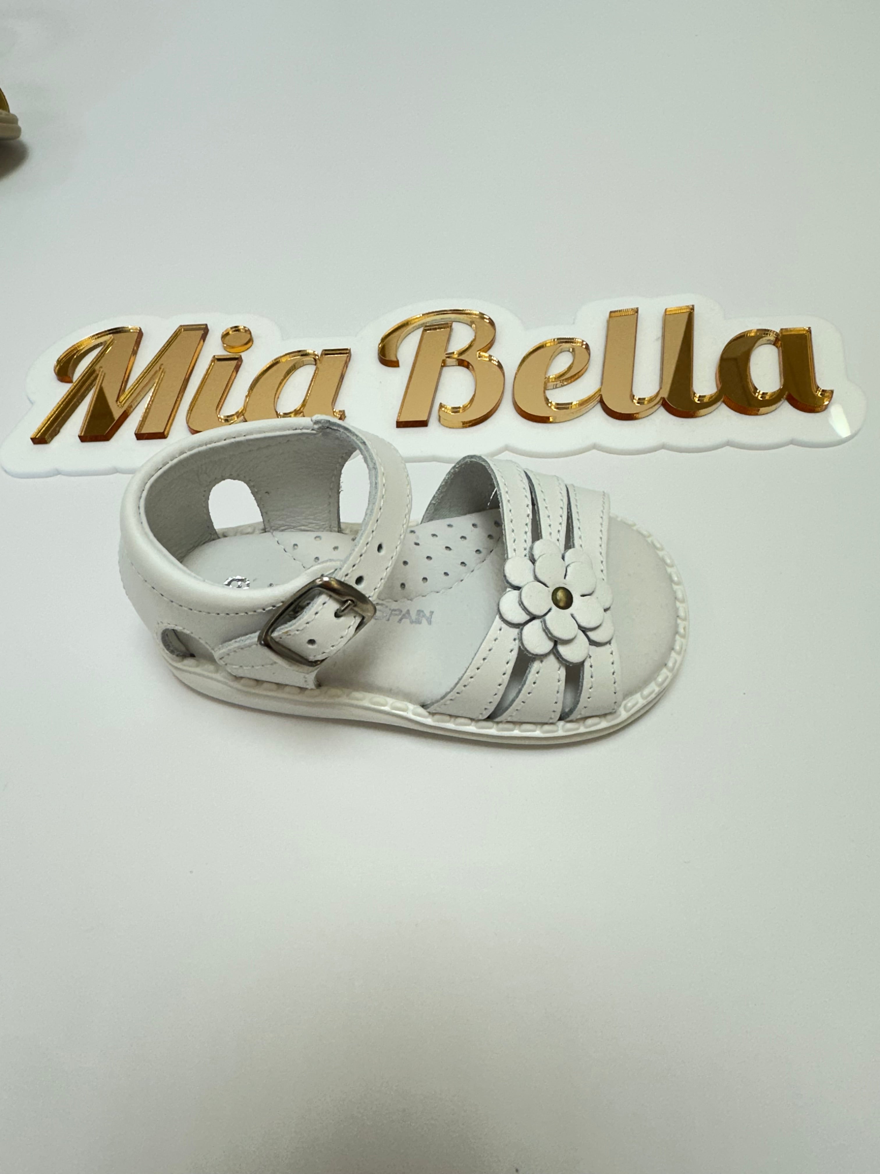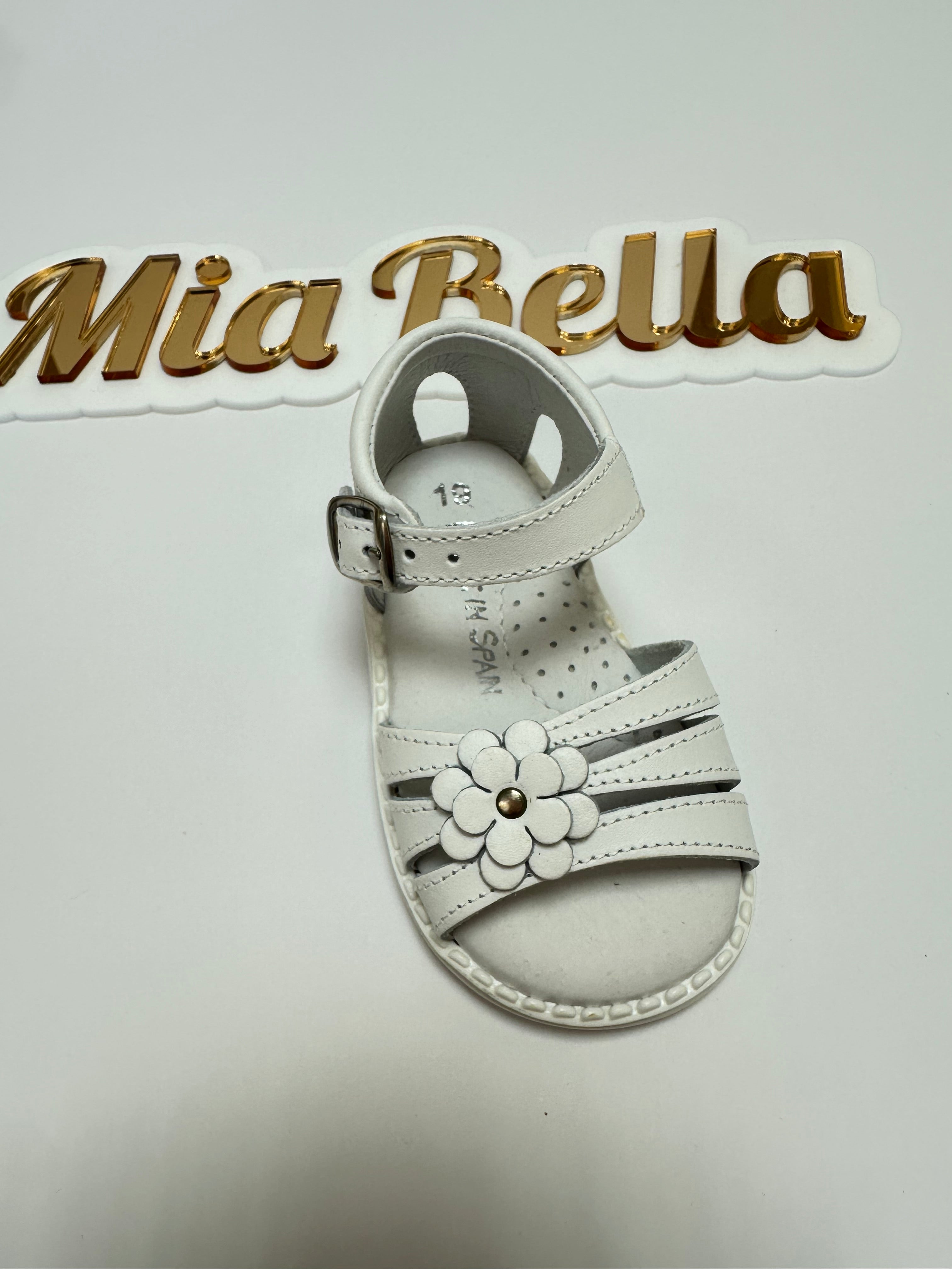 Mia Bella White Leather Sandals with Flower