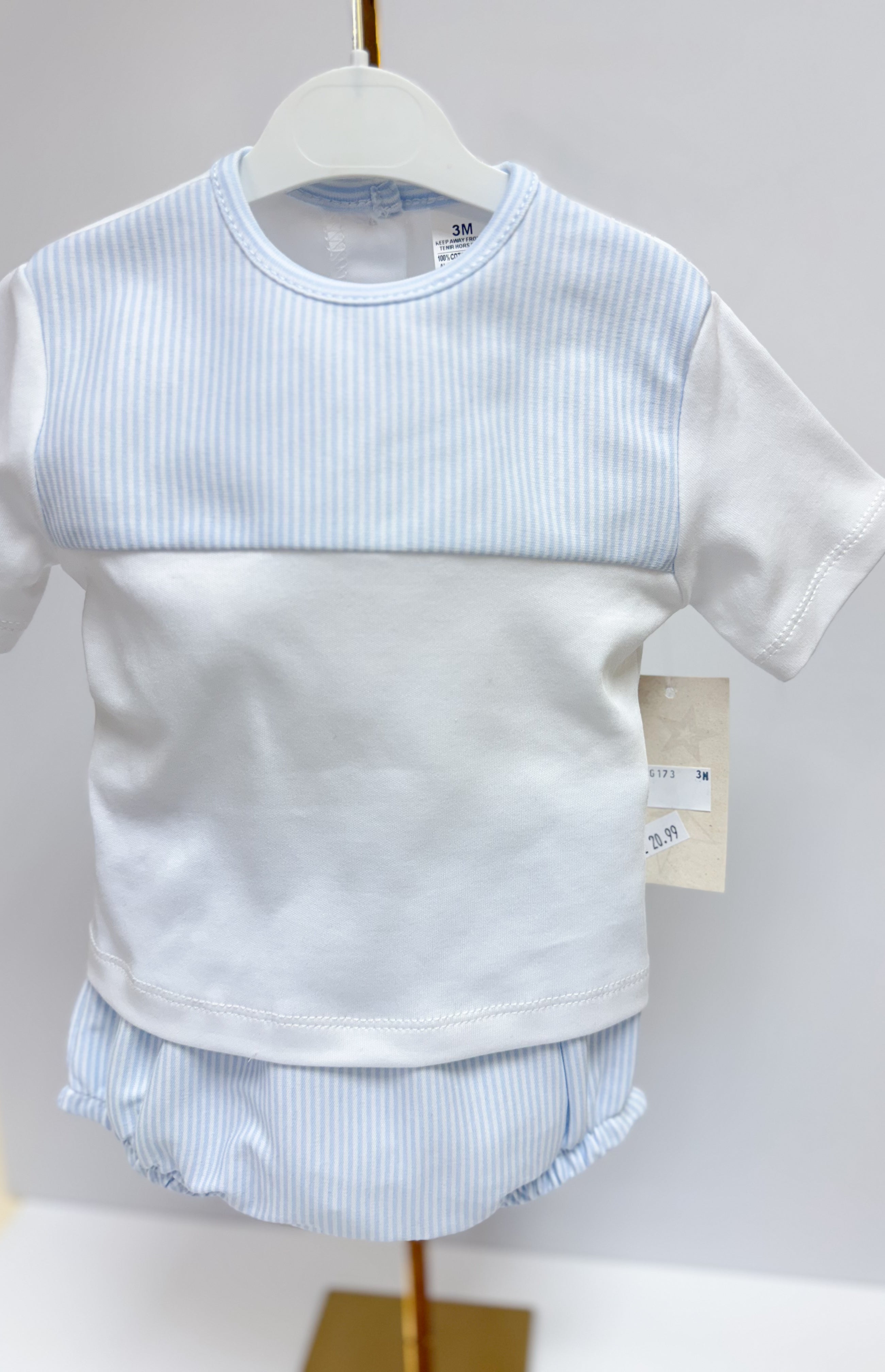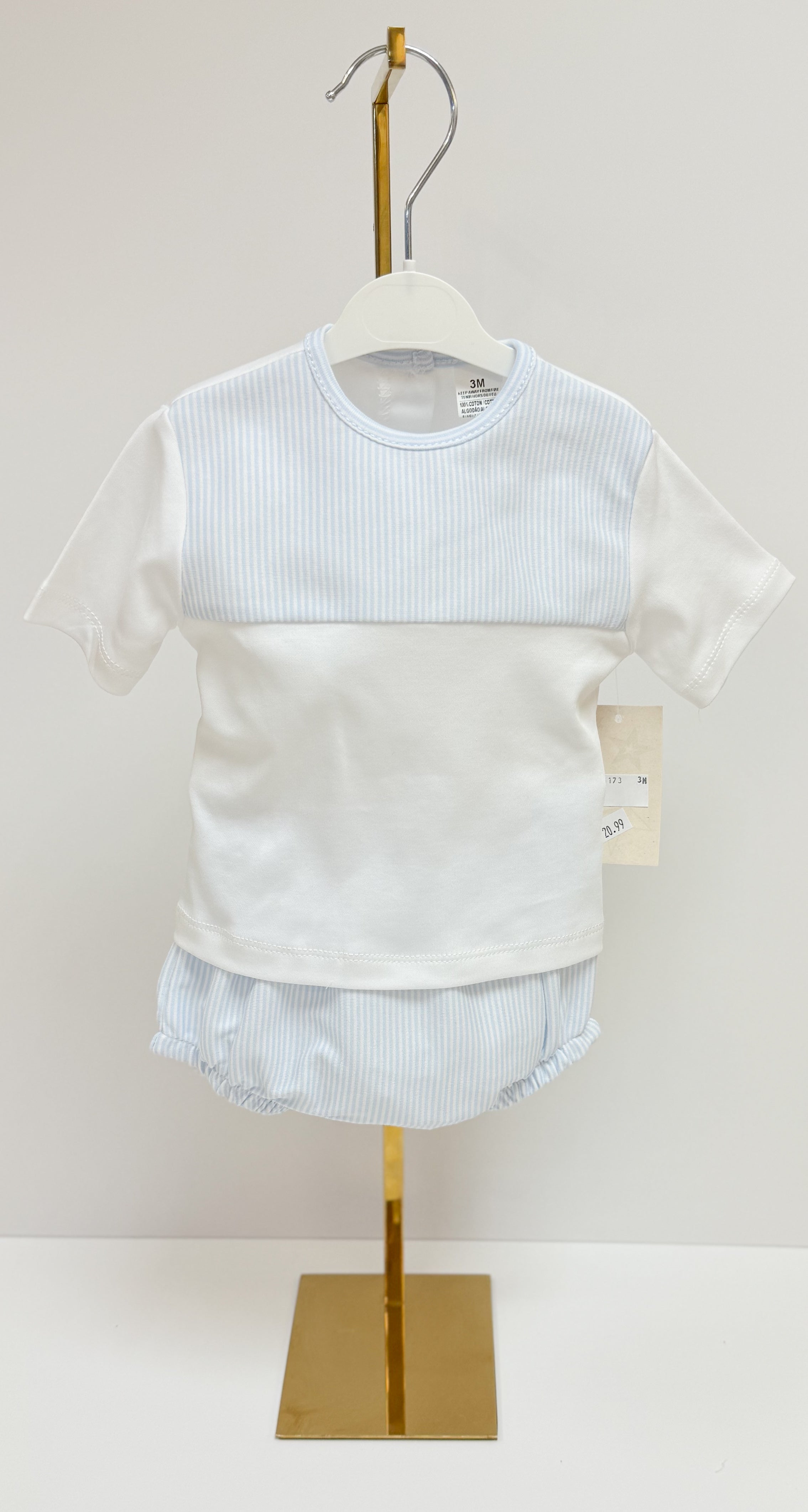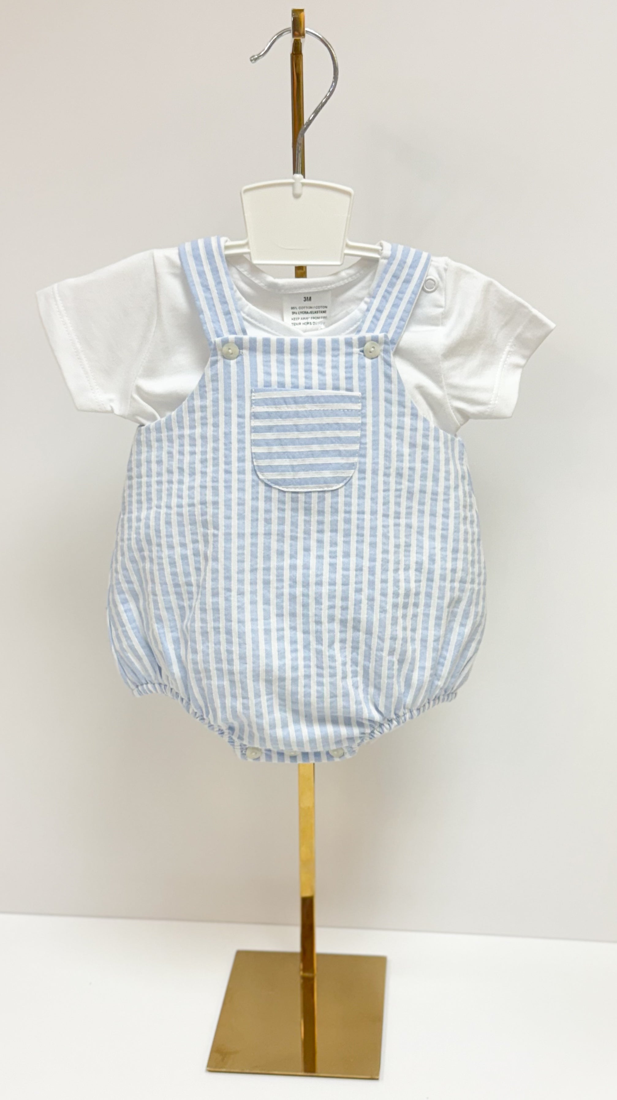 MIA BELLA Baby Boys Blue White Striped 2 Piece Romper