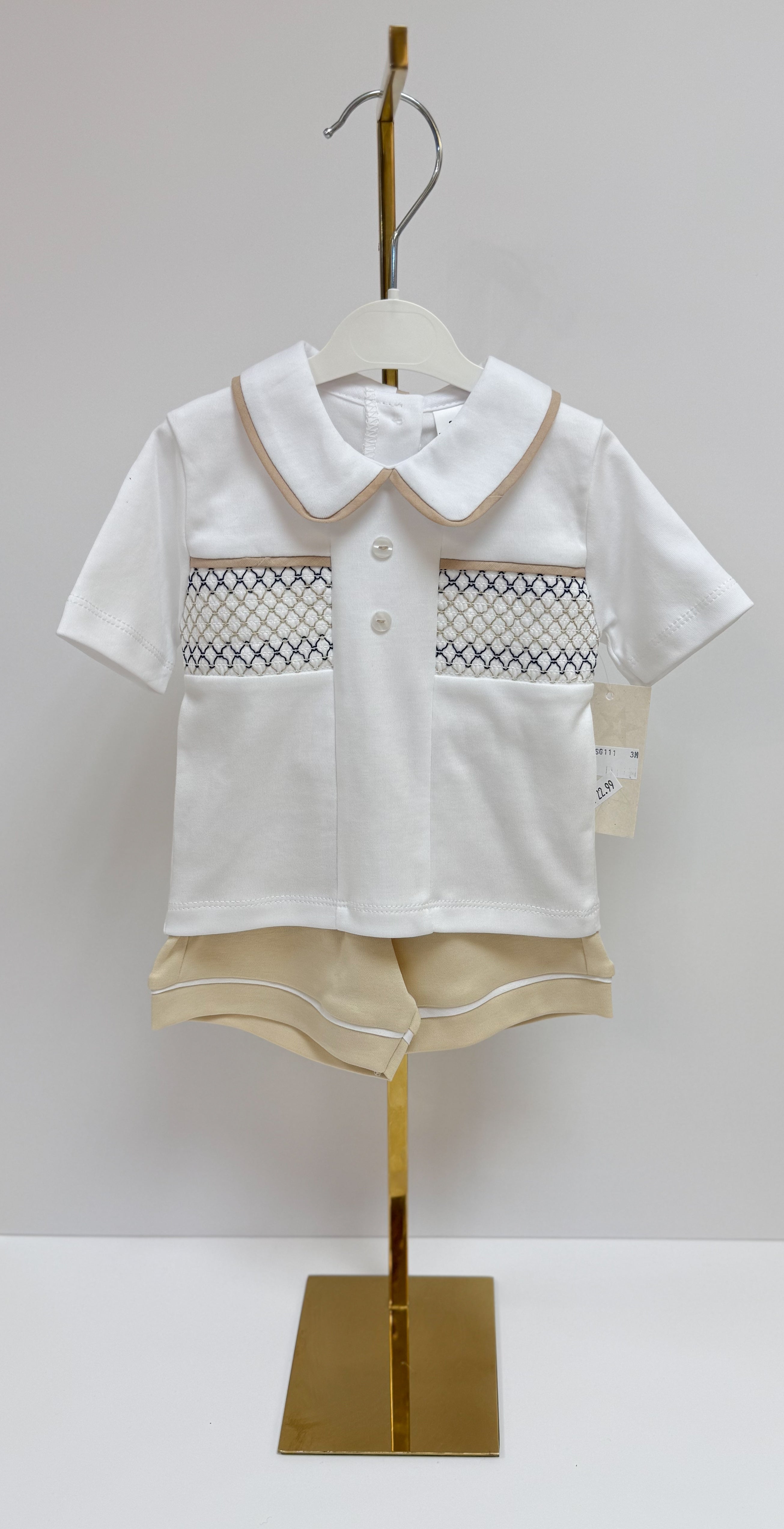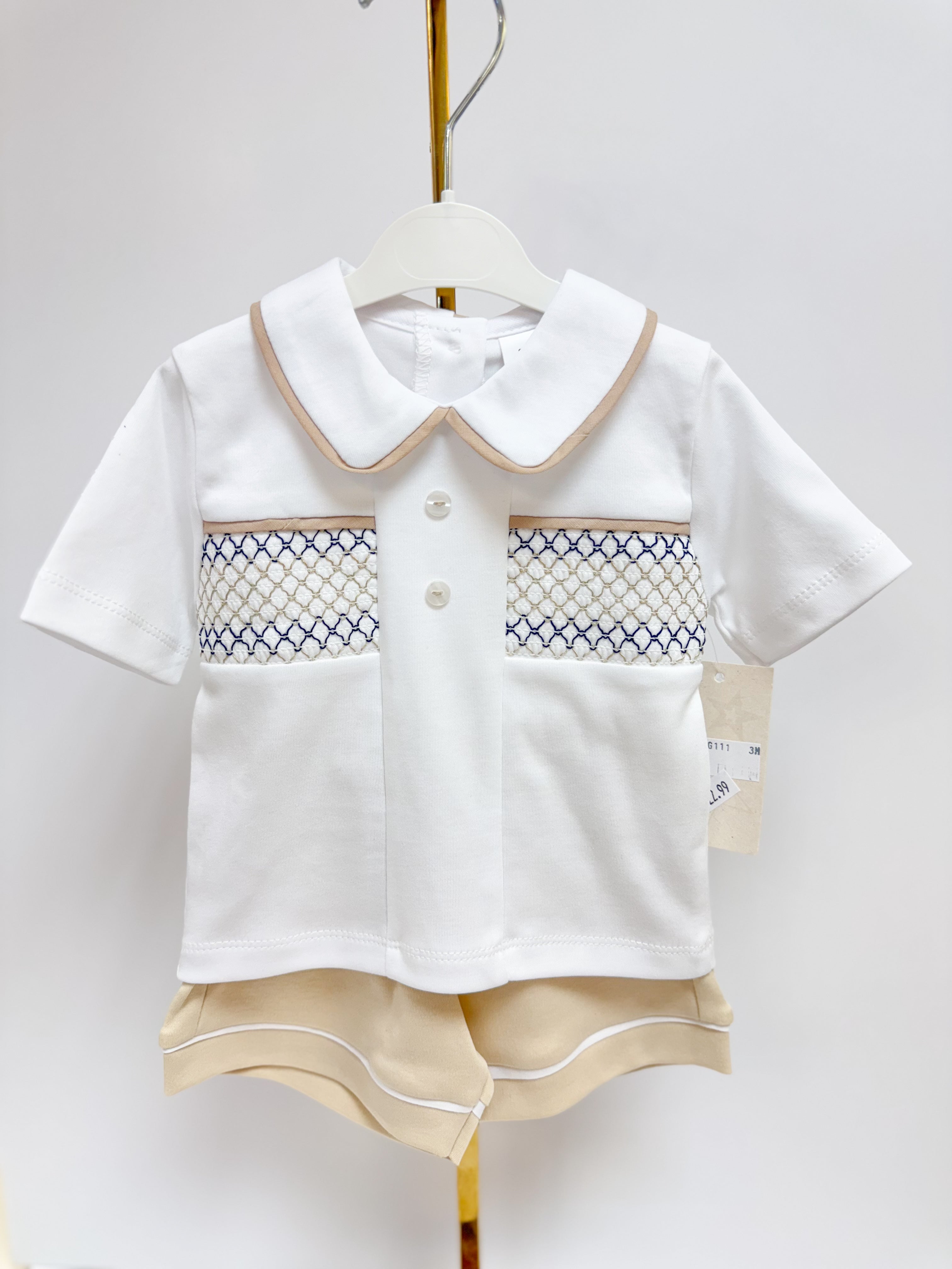 MIA BELLA Baby Boys Camel Smocked Style Short Set