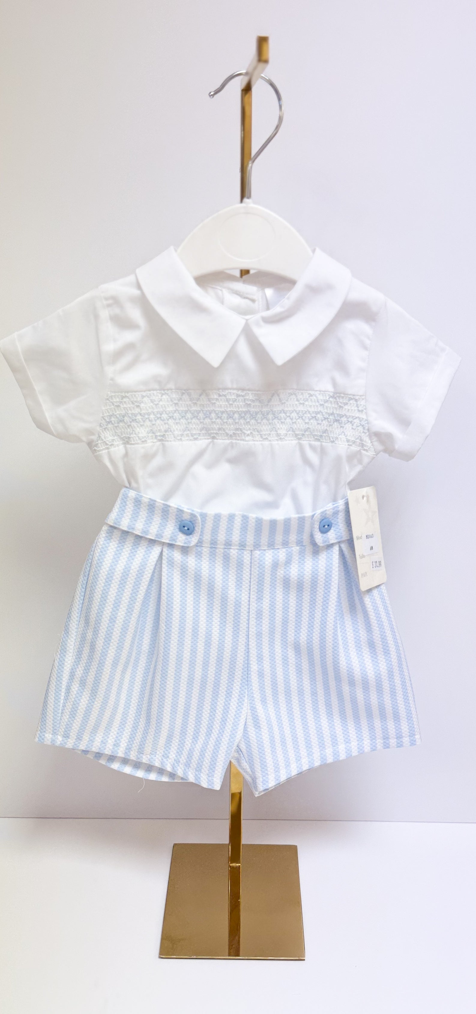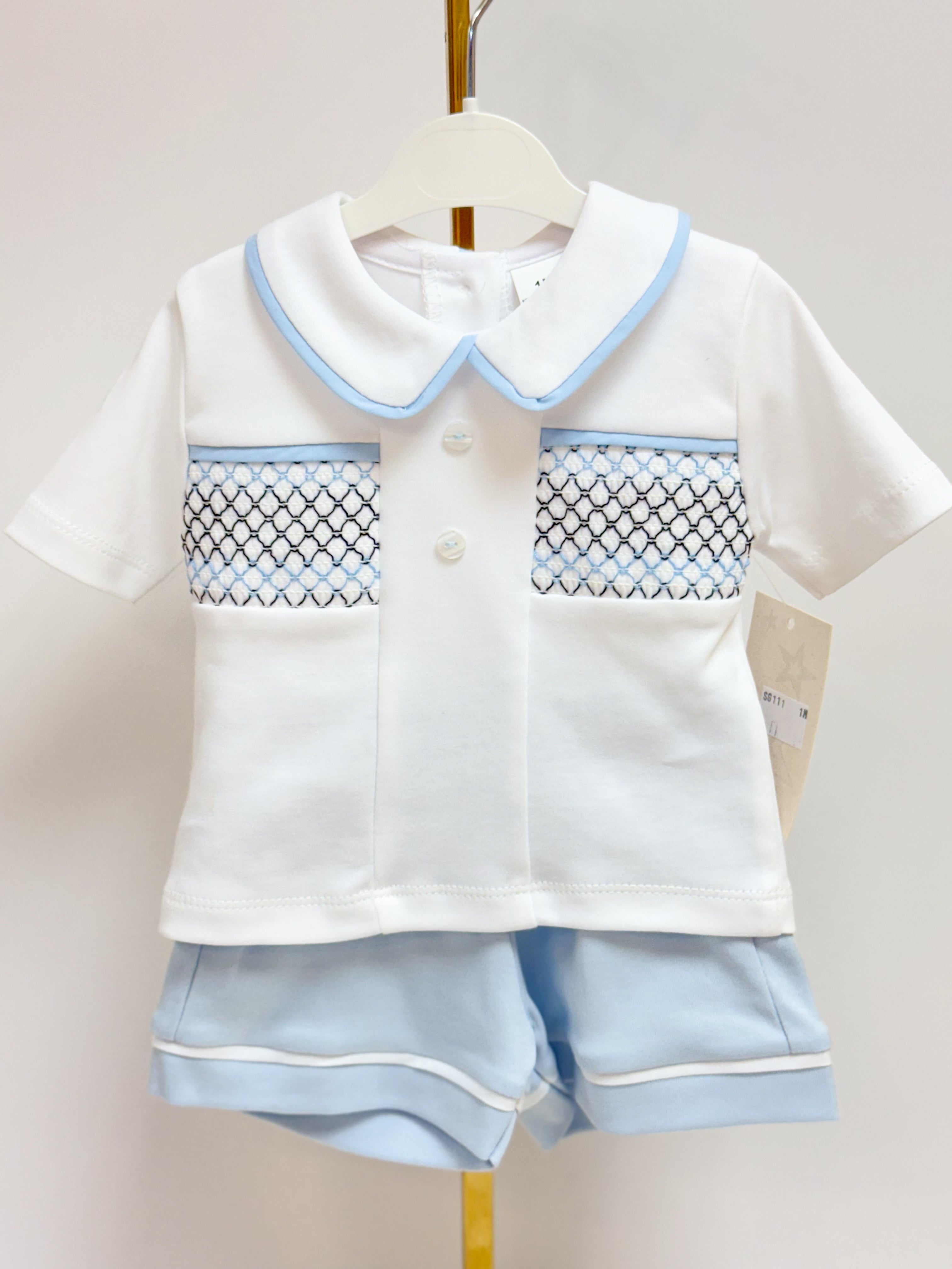 MIA BELLA Baby Boys Blue Smocked Style Short Set