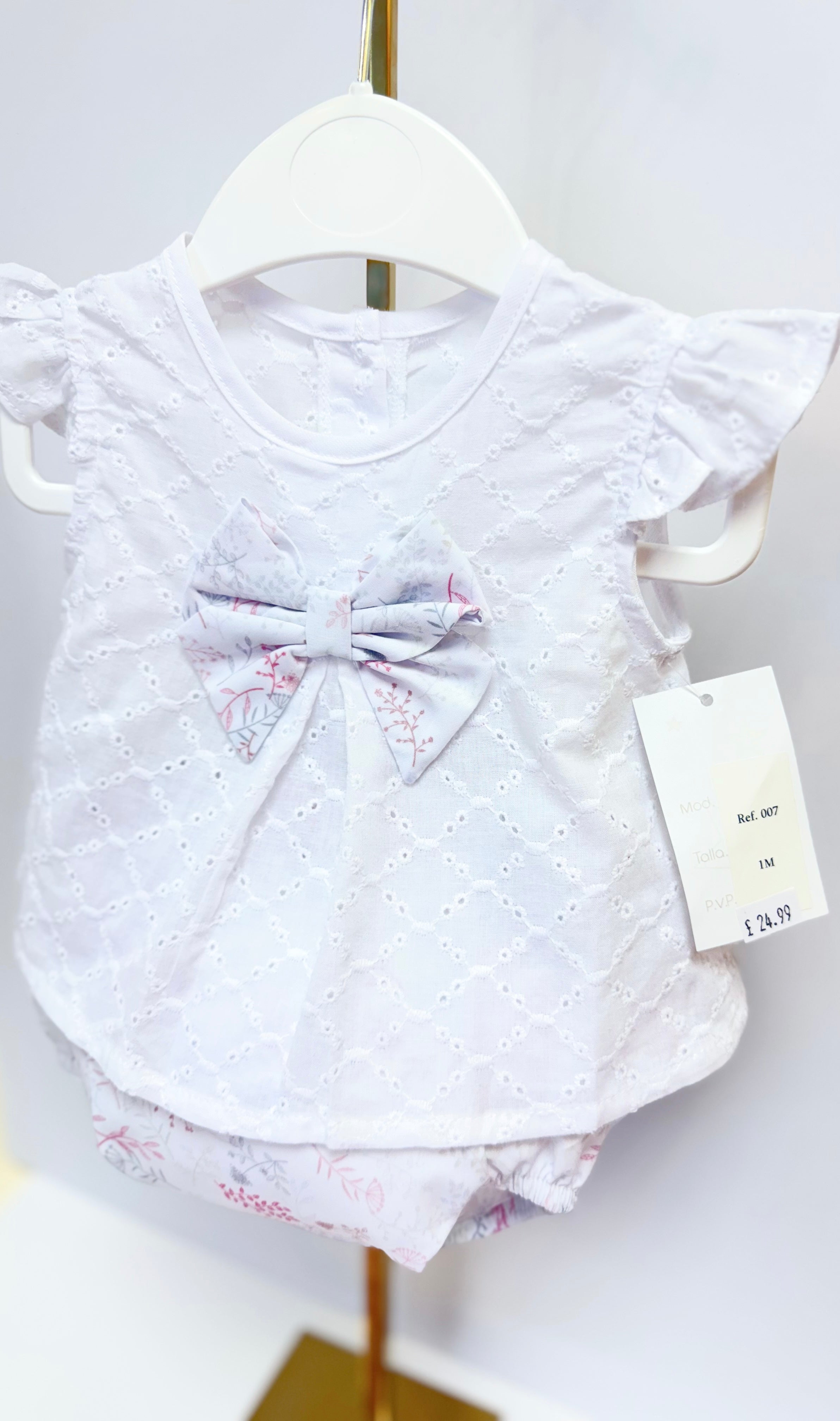 MIA BELLA White Bow Ruffle Jam Pant Setu