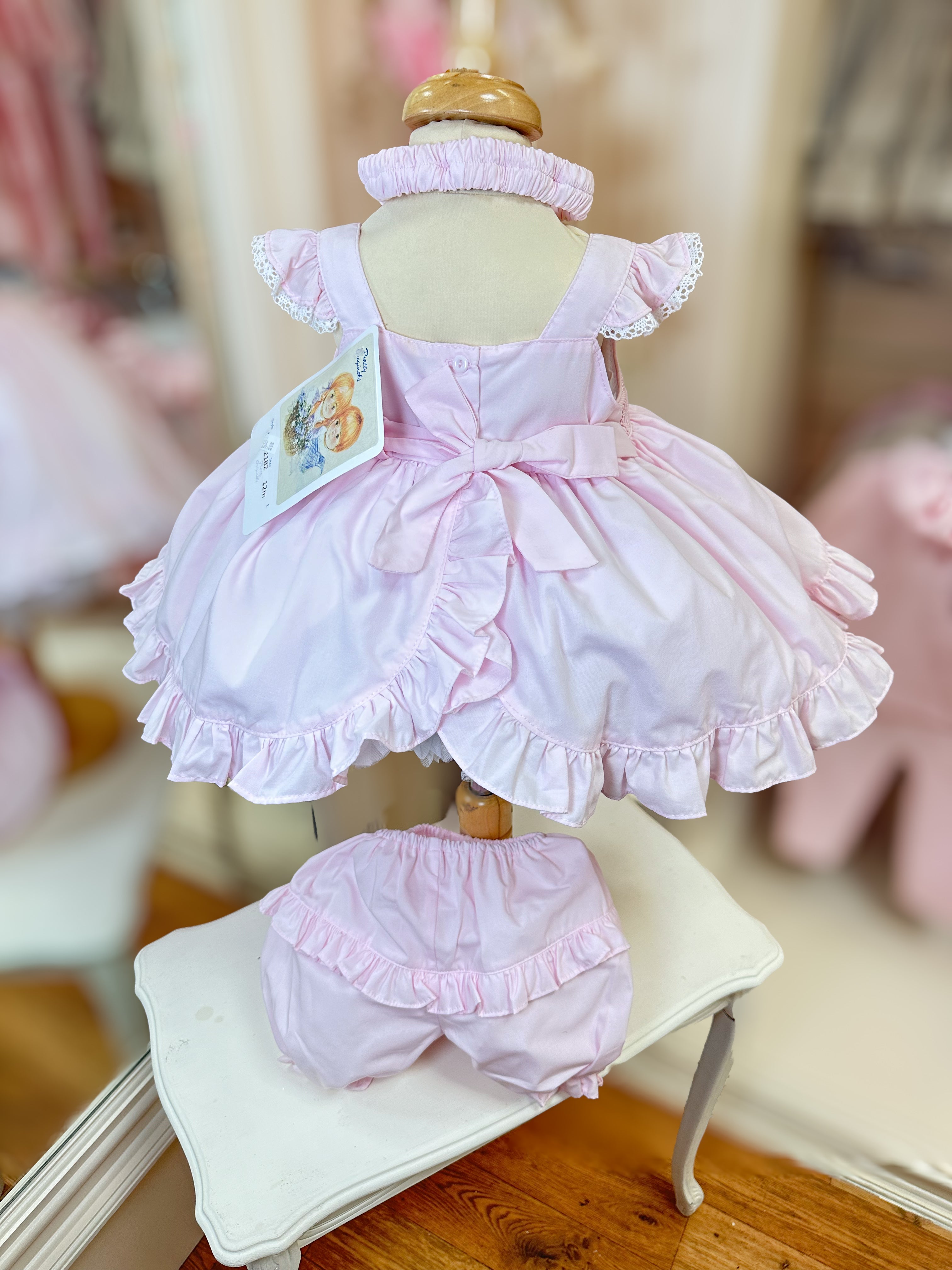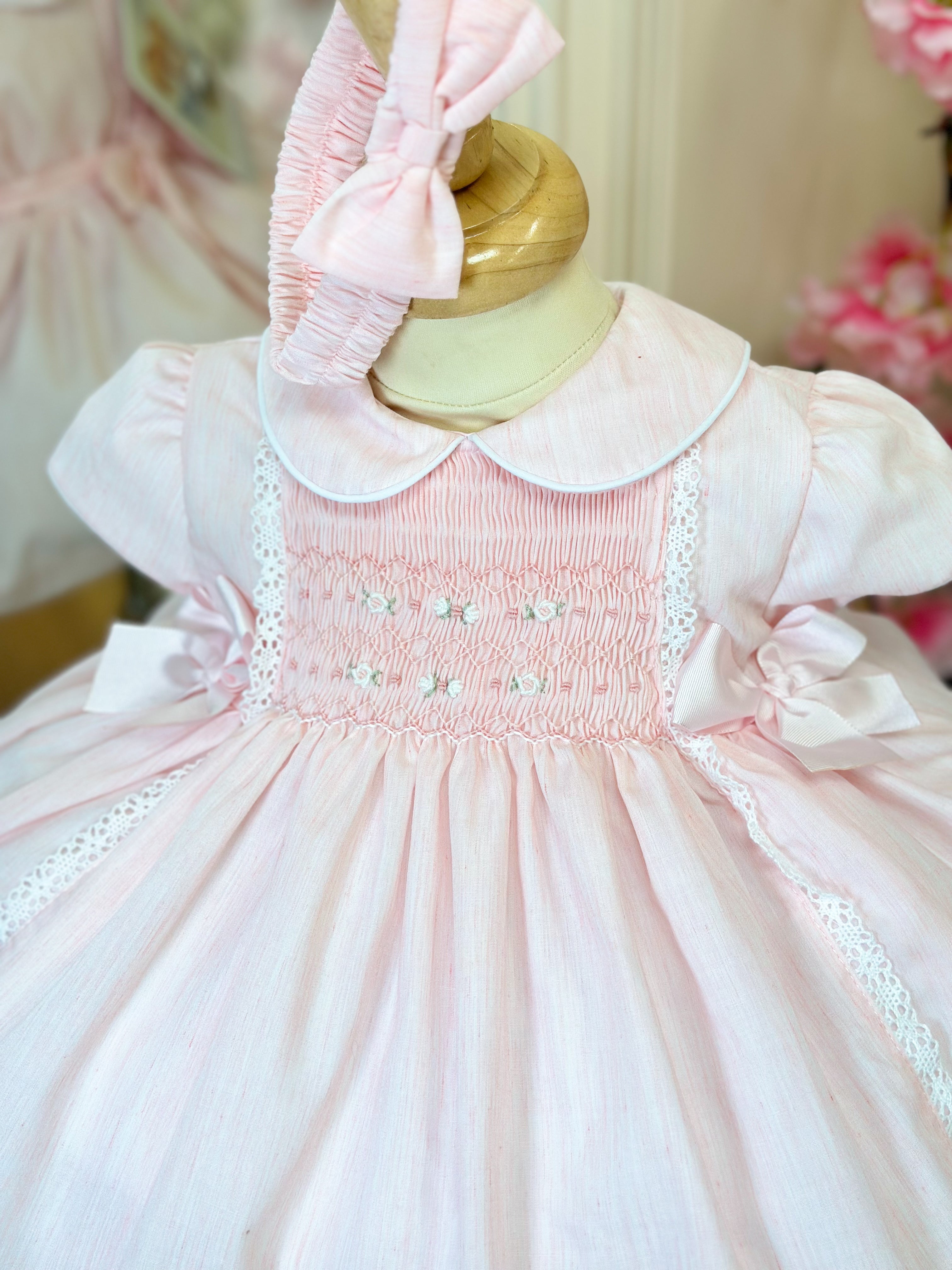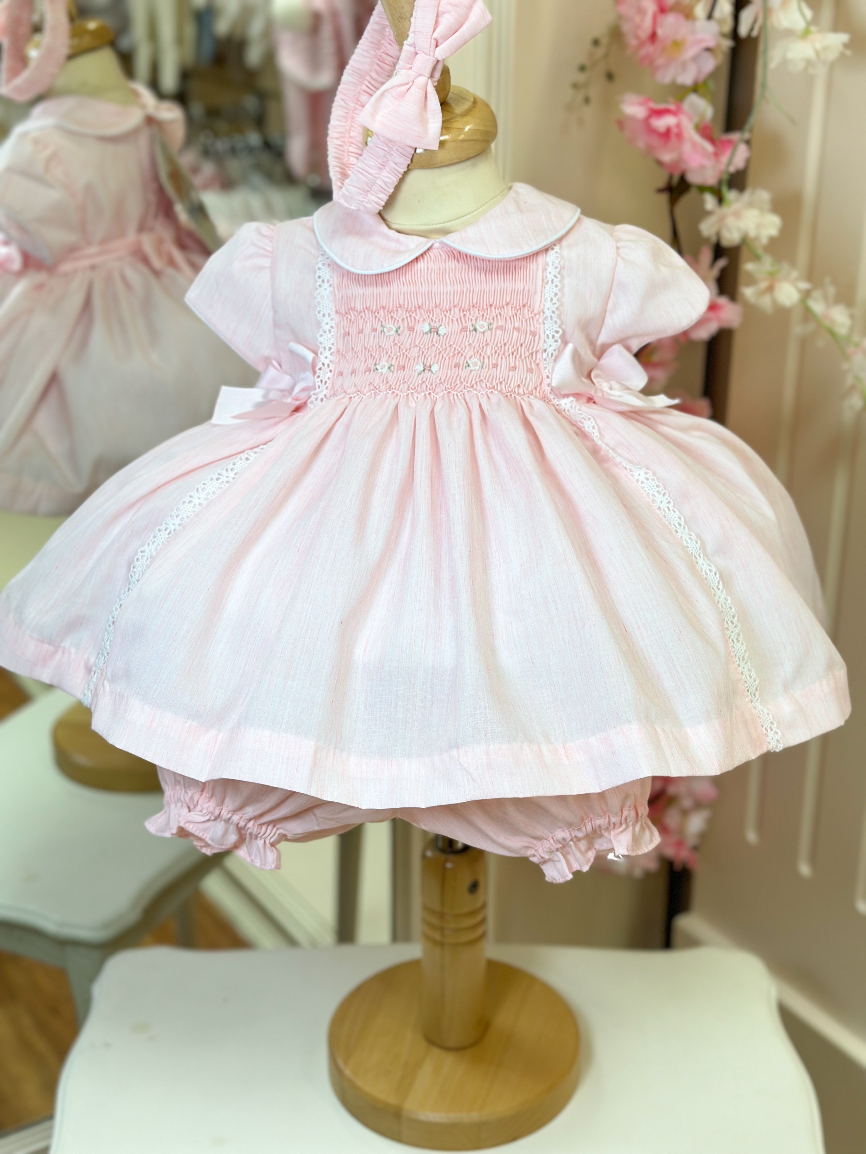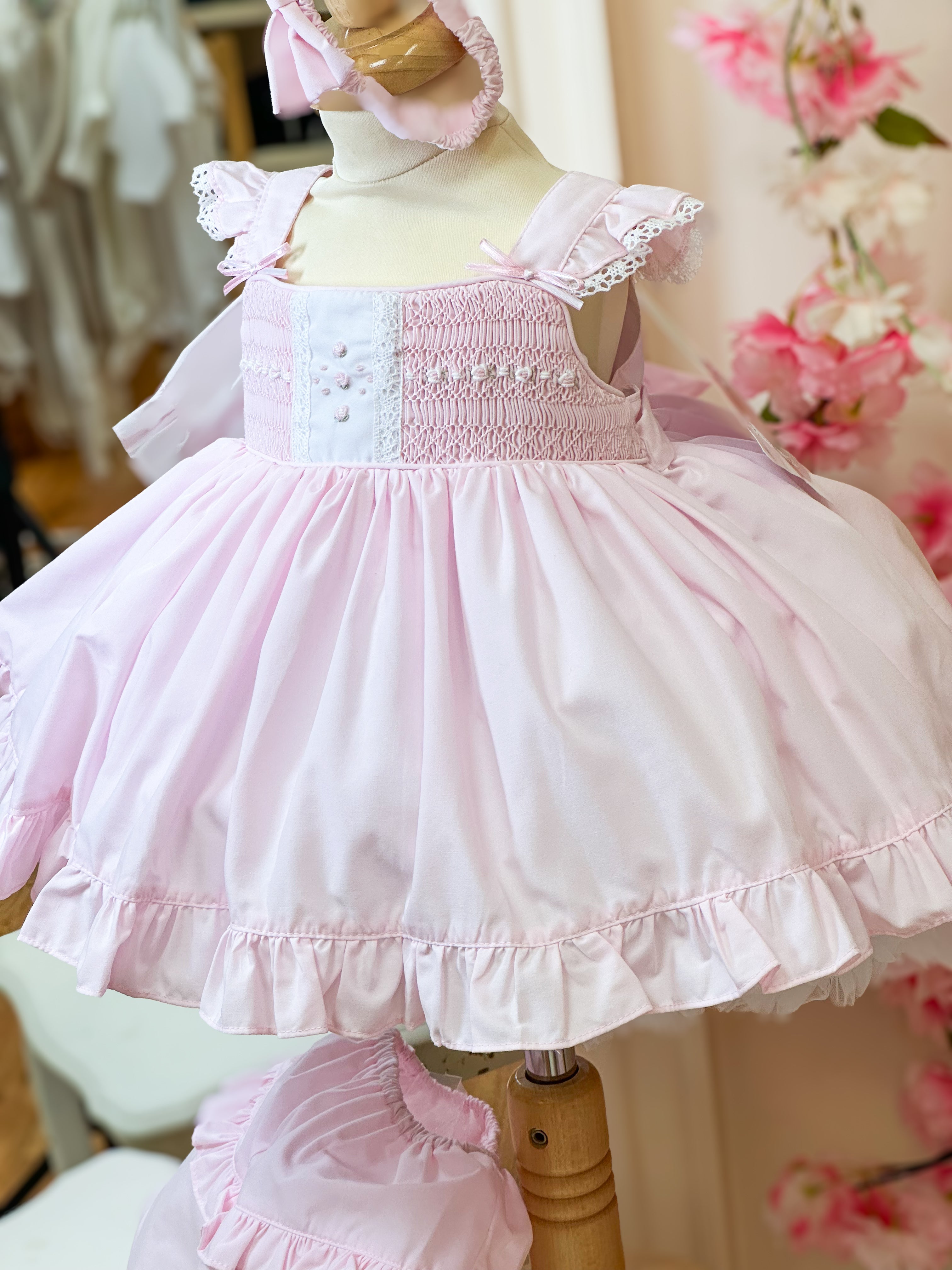 Pretty Originals Pink/White Smock Dress, Bloomers and Headband