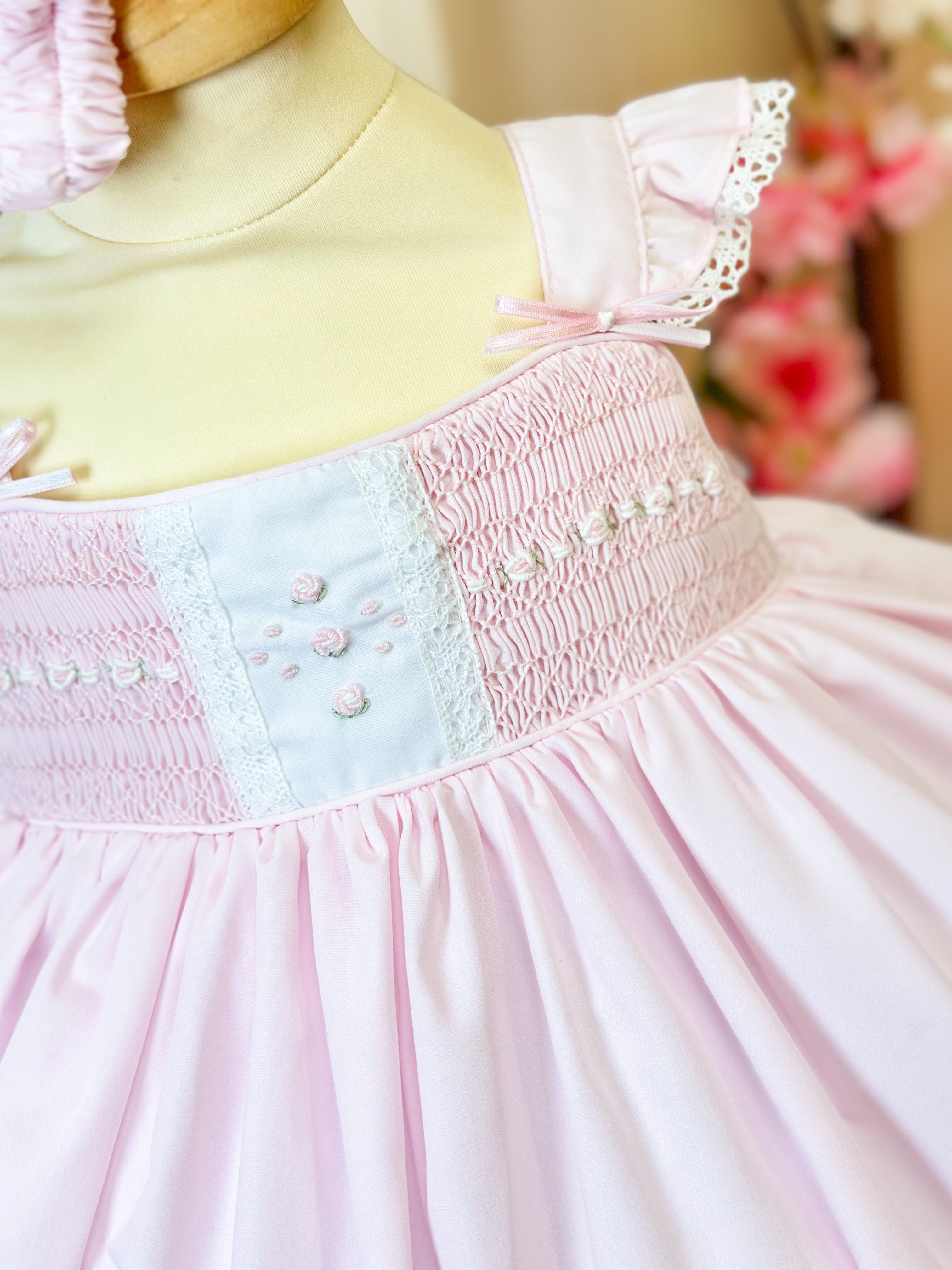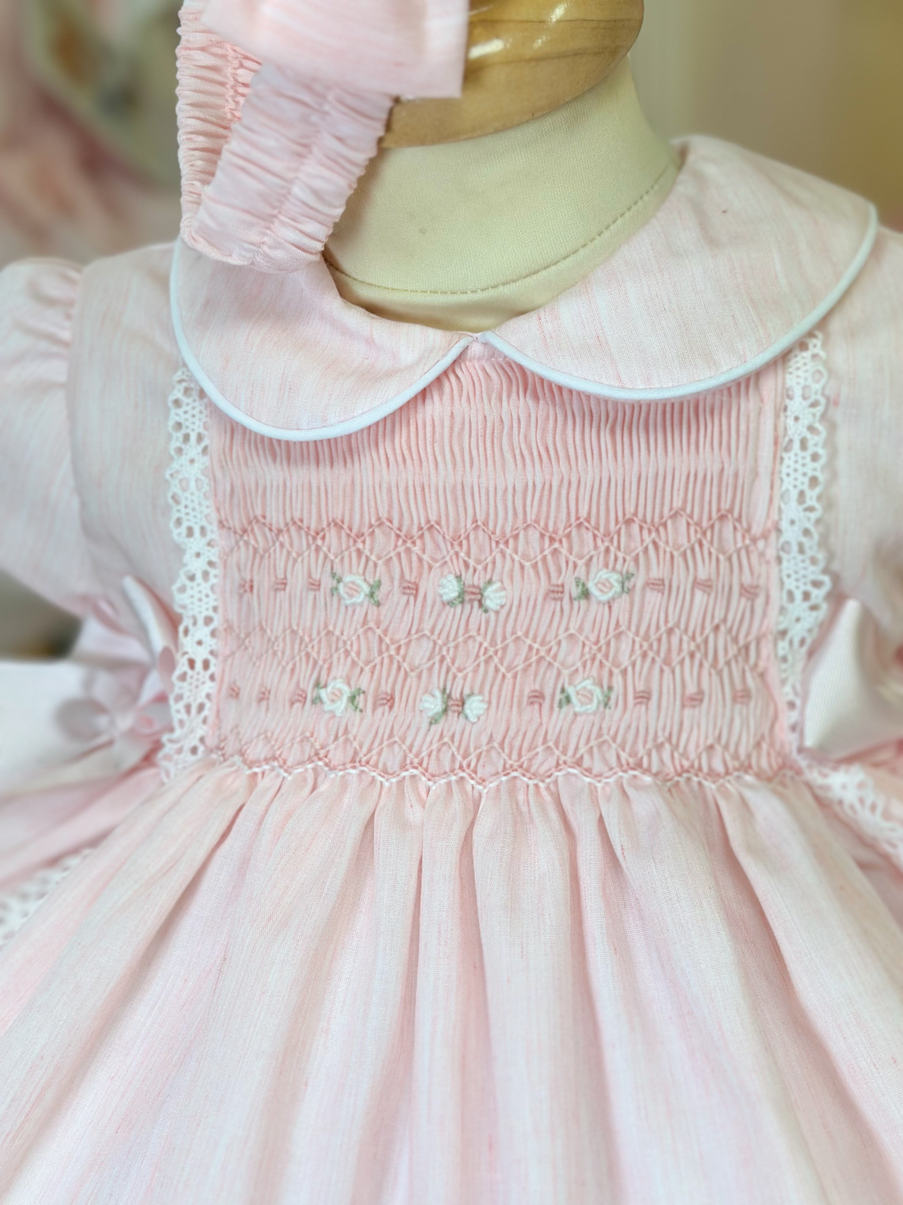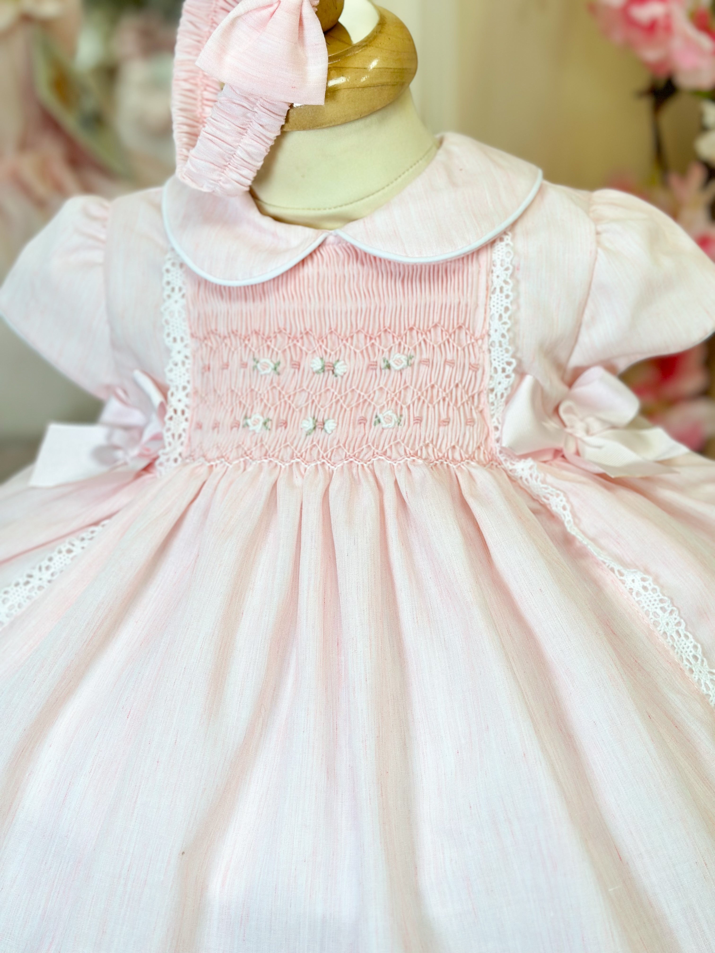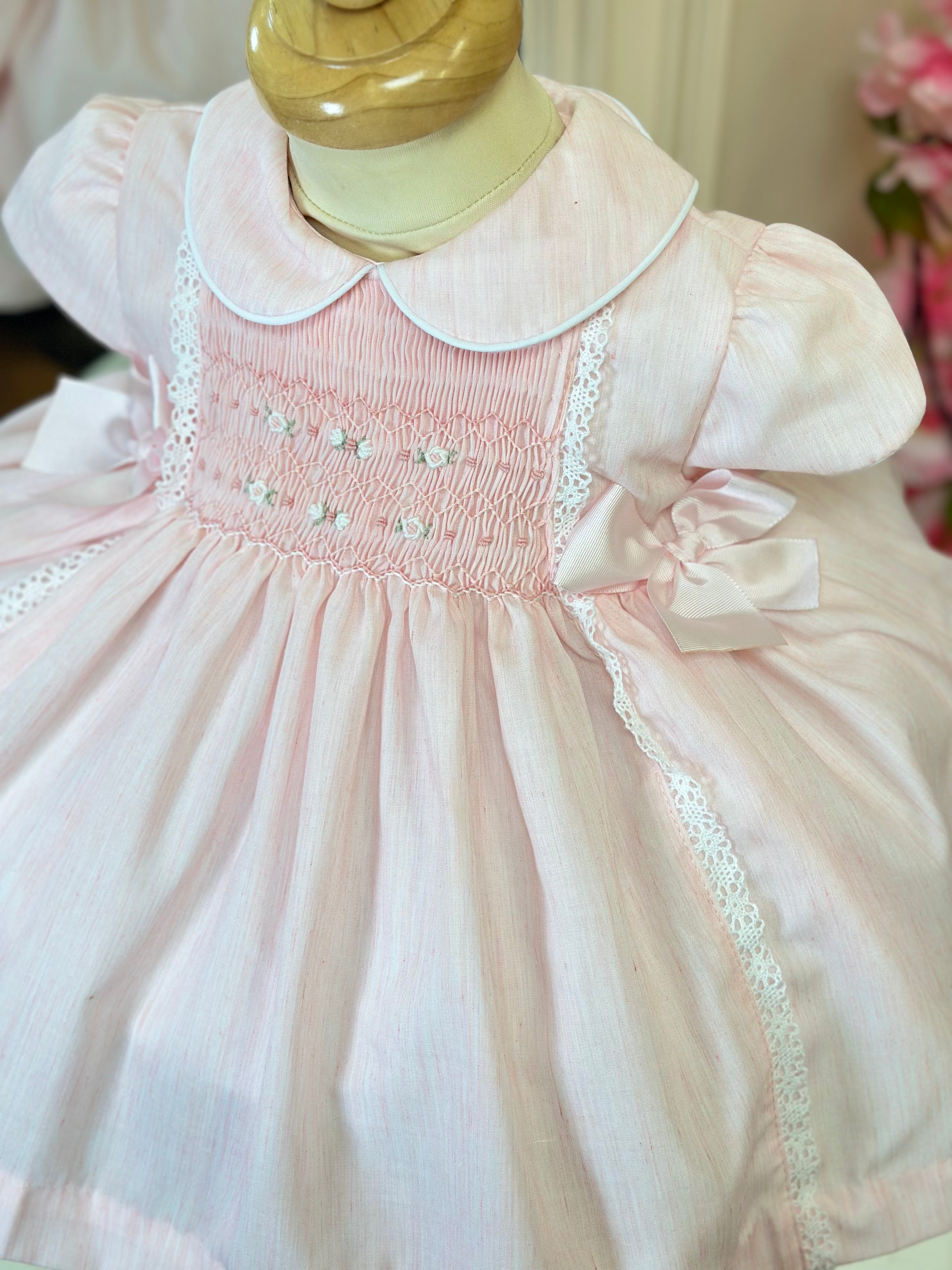 Pretty Originals Pink/White Smock Dress, Bloomers and Headband