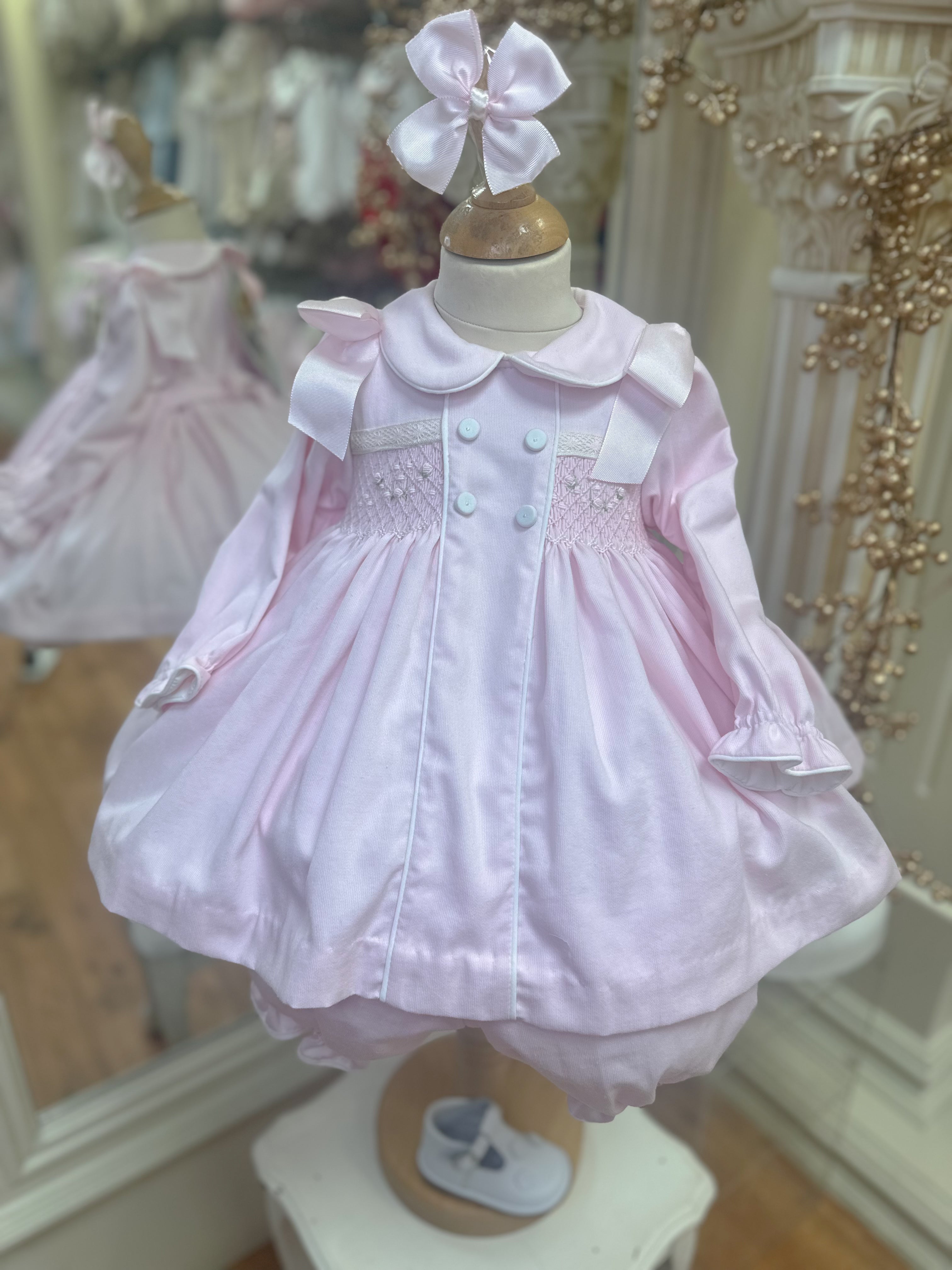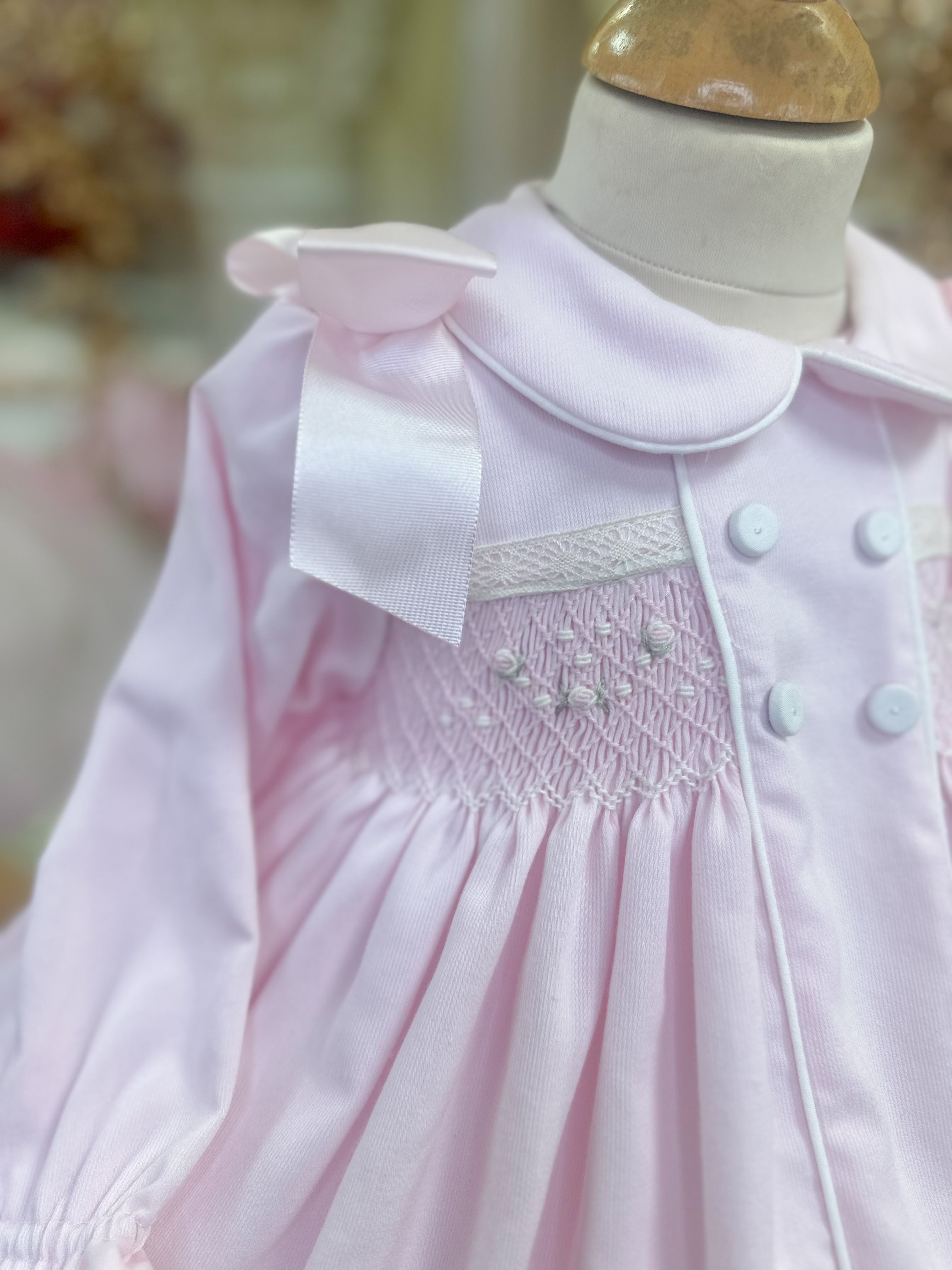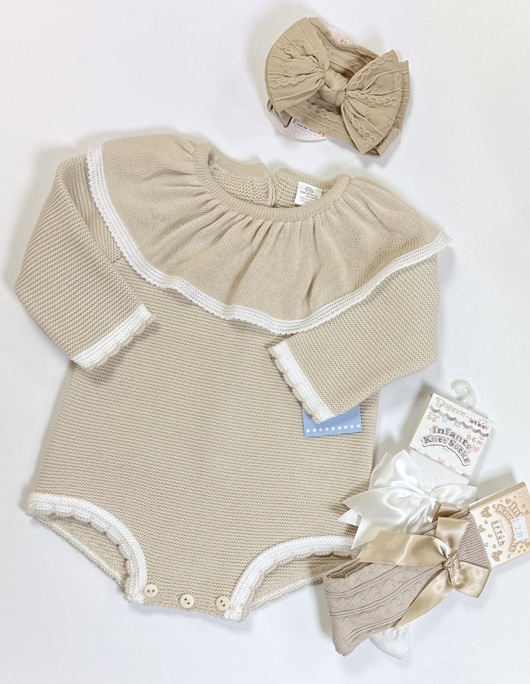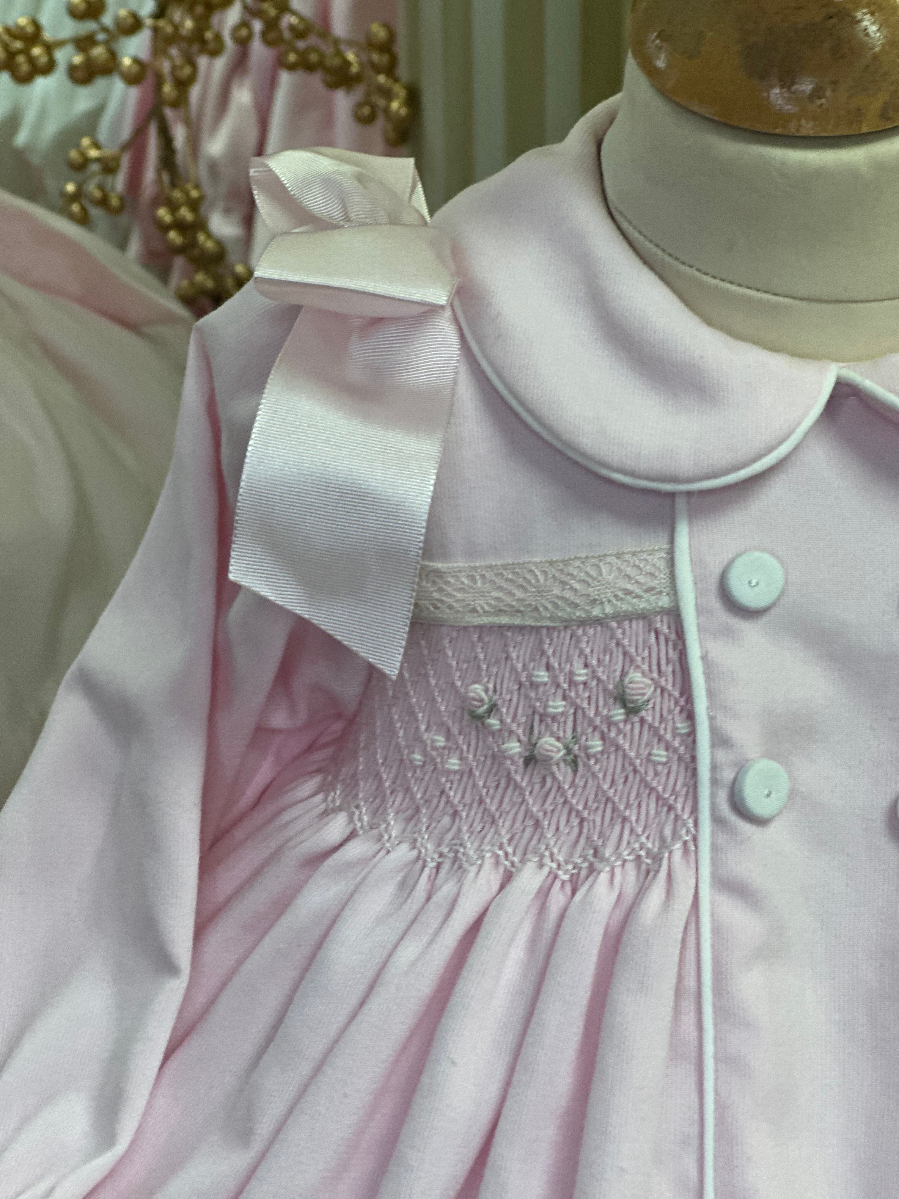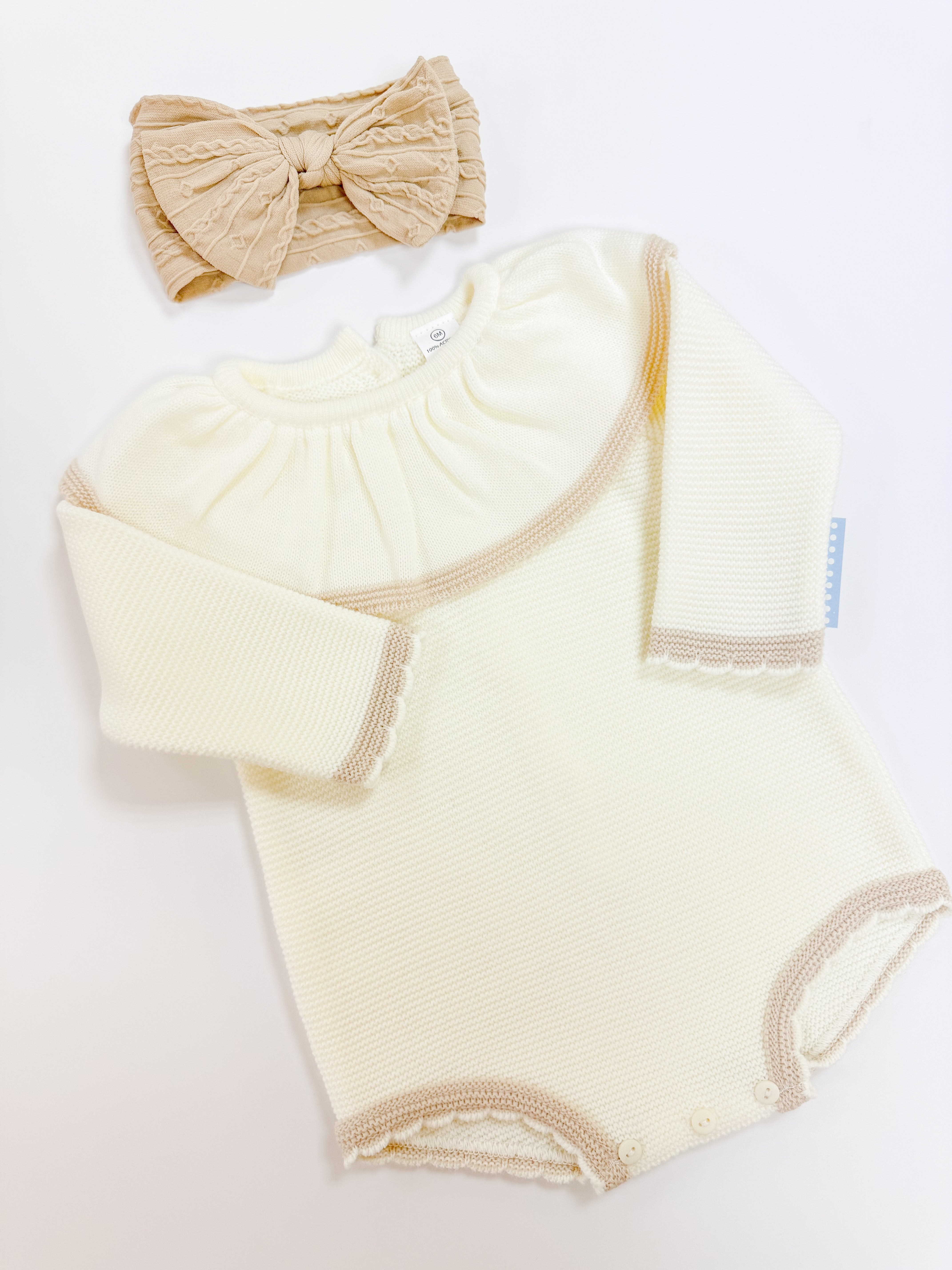 Mia Bella Velour Babygrow with Ribbon and Diamante Cream