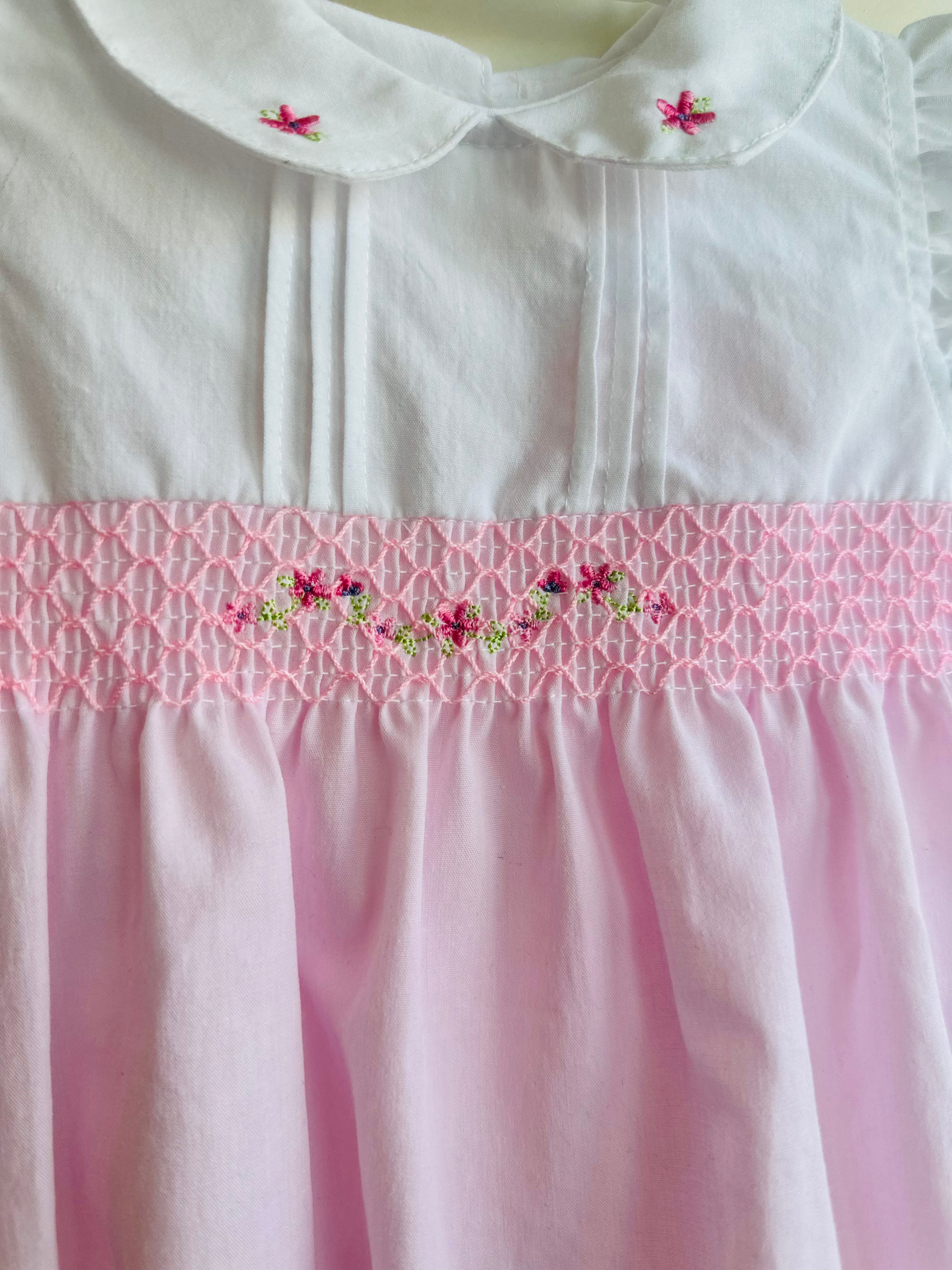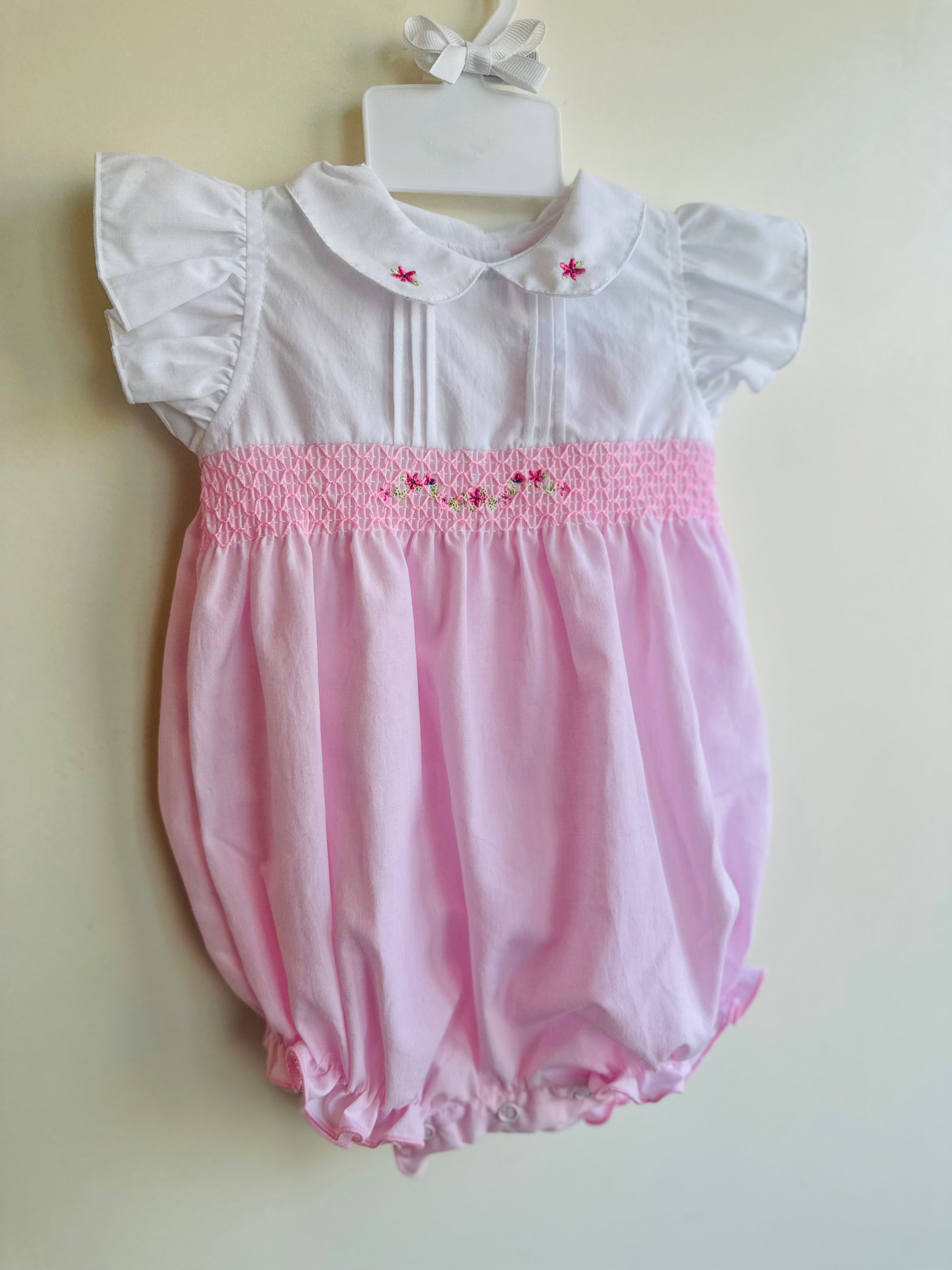 MIA BELLA Smocked Style Baby Romper White/Pink