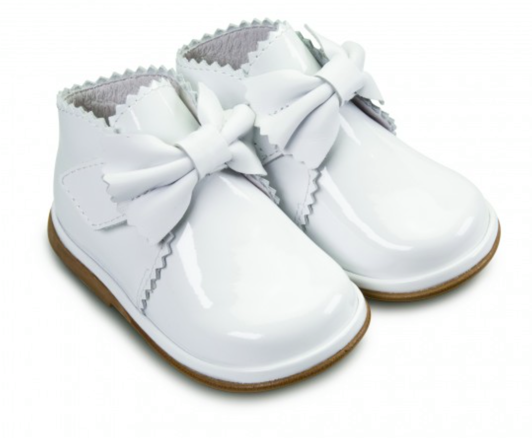 Sharon Boots White PATENT Leather Velcro Boots with Bow