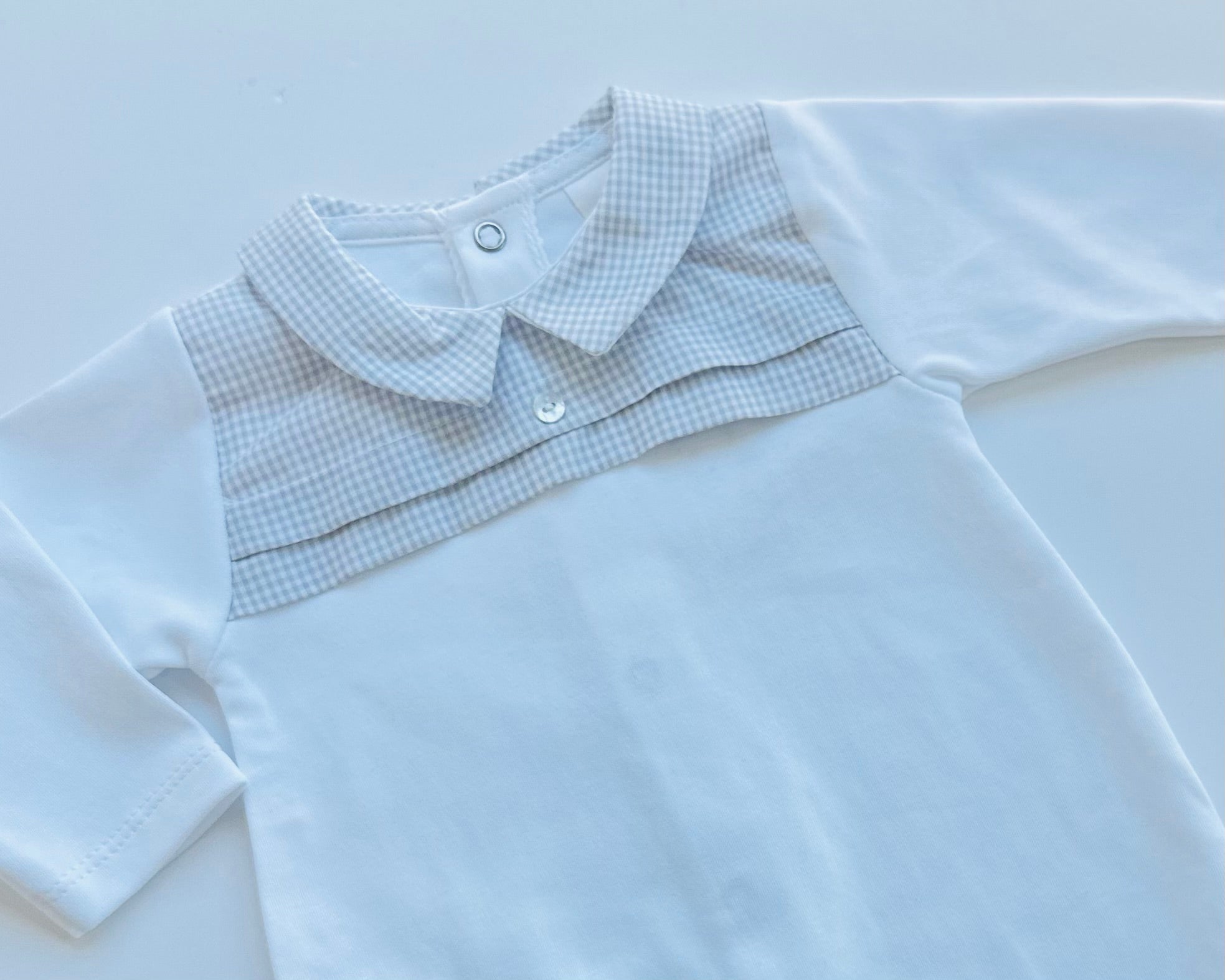 MIA BELLA Smocked Style Cotton Babygrow White/Navy