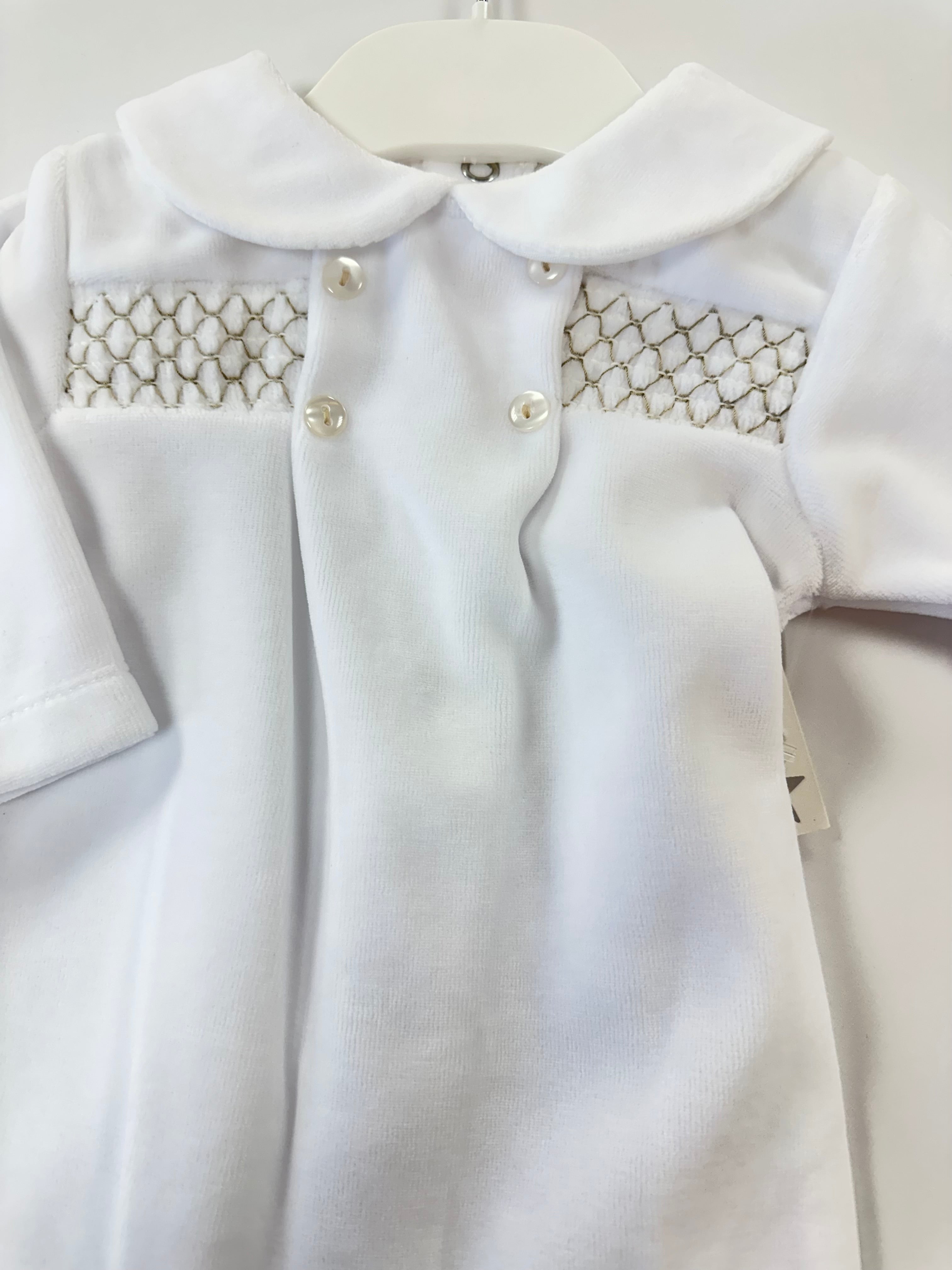MIA BELLA Luxury Velour Smocked Style BabyGrow White