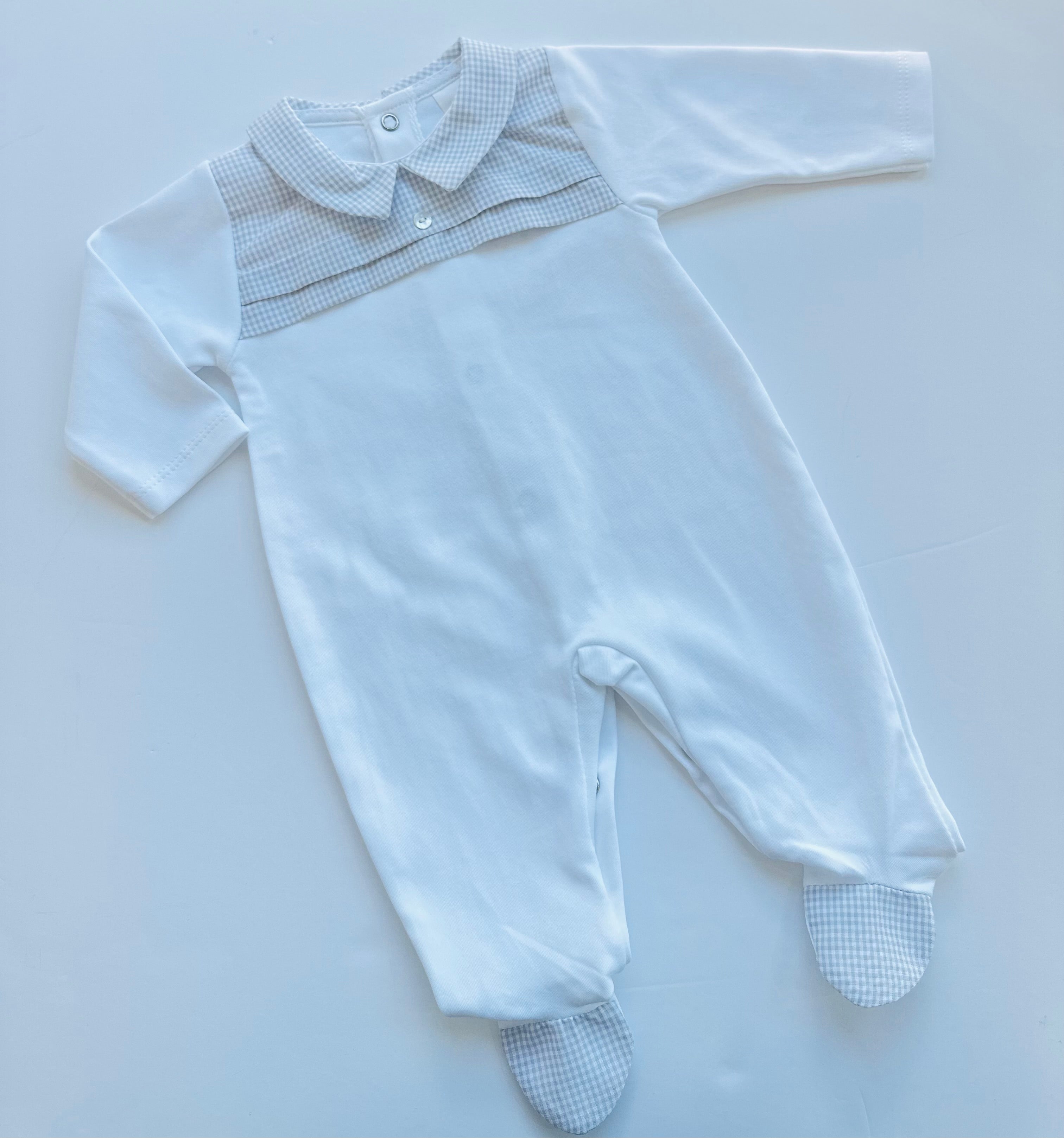MIA BELLA Luxury Smocked Velour Baby Grow / BabyGrow / White / Navy SG68V