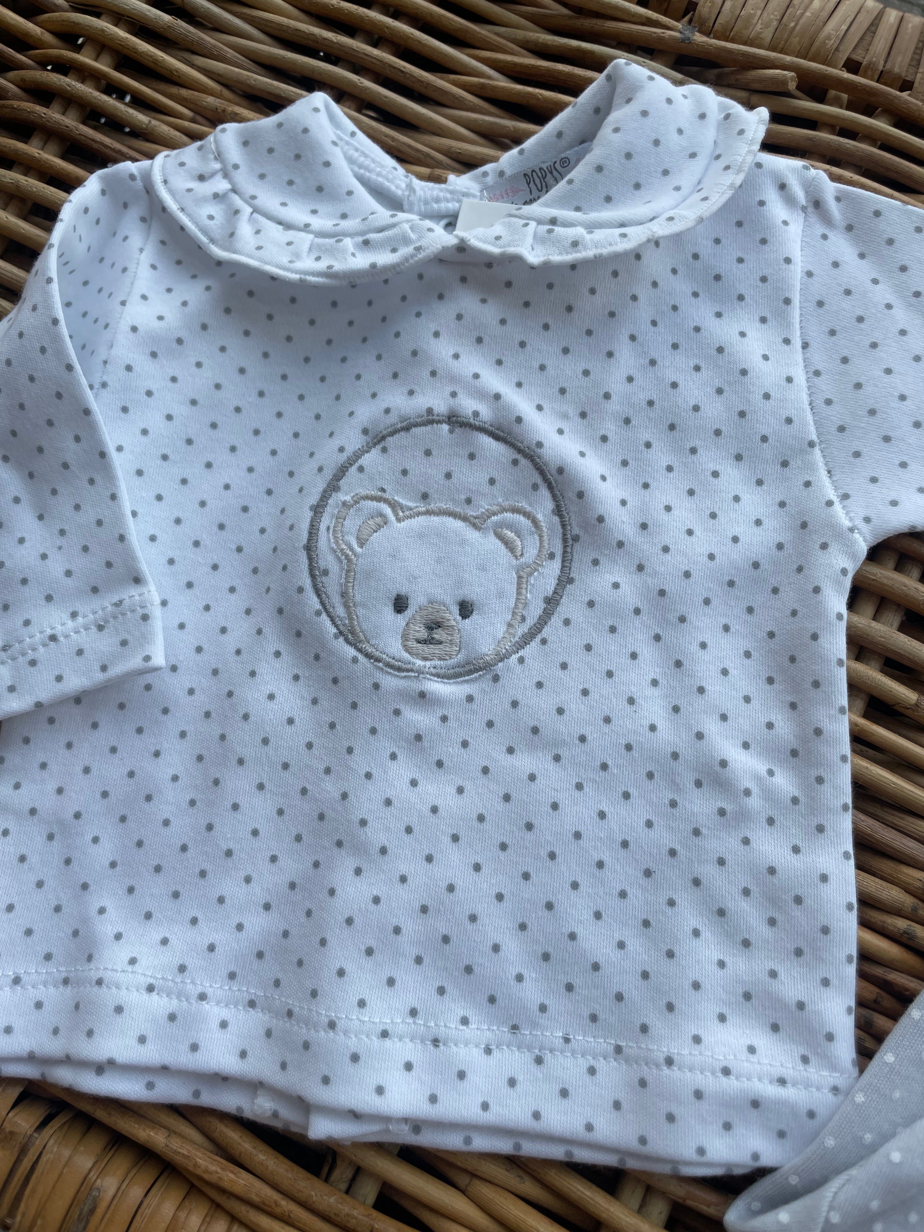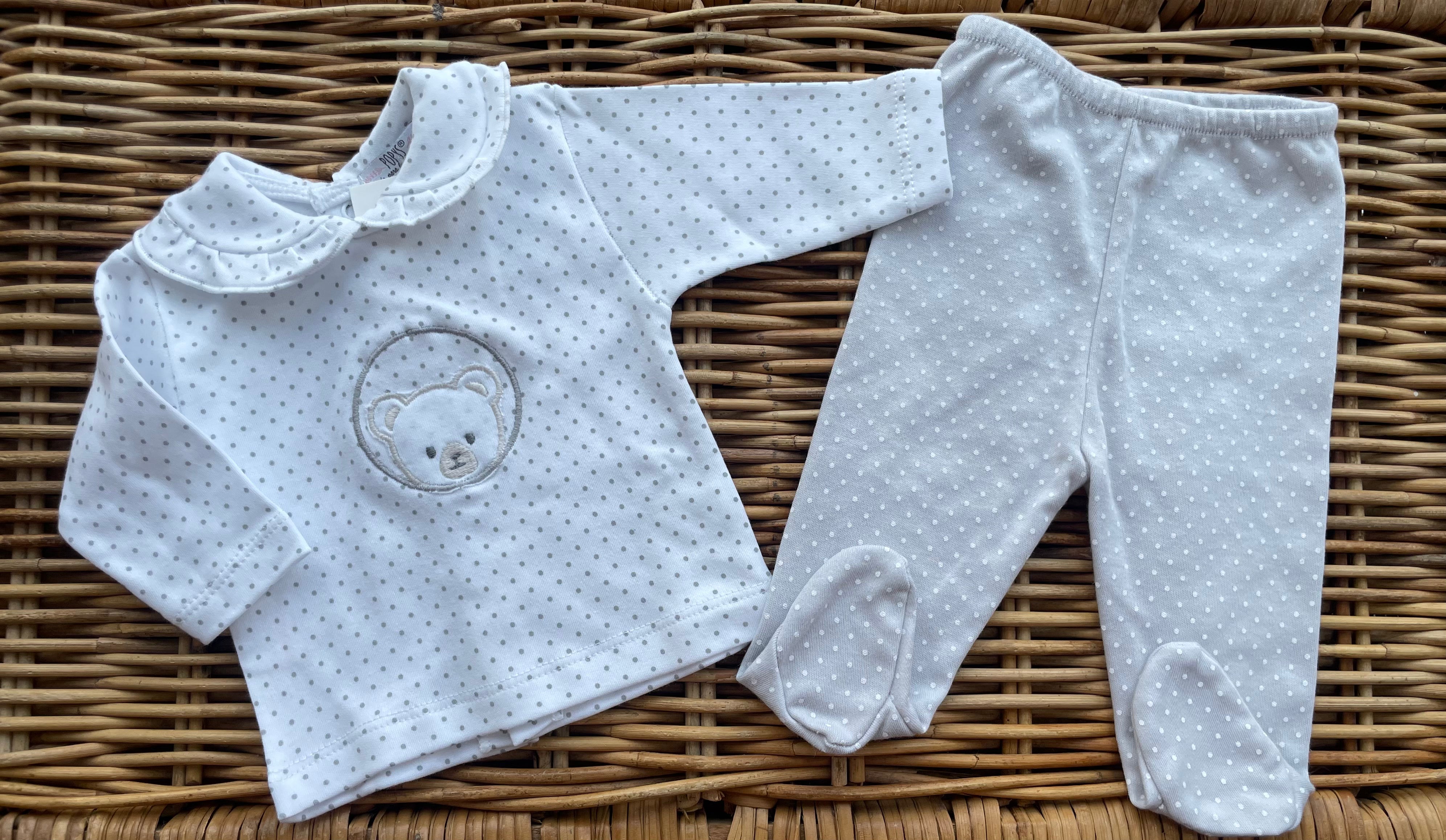 Mia Bella White Velour Babygrow and Bib Grey Trim TRE23117