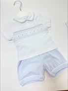Mia Bella Smocked Style 2 Piece Shorts Set Pale Blue 301