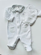Mia Bella White Velour Babygrow and Bib Grey Trim TRE23117