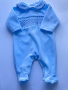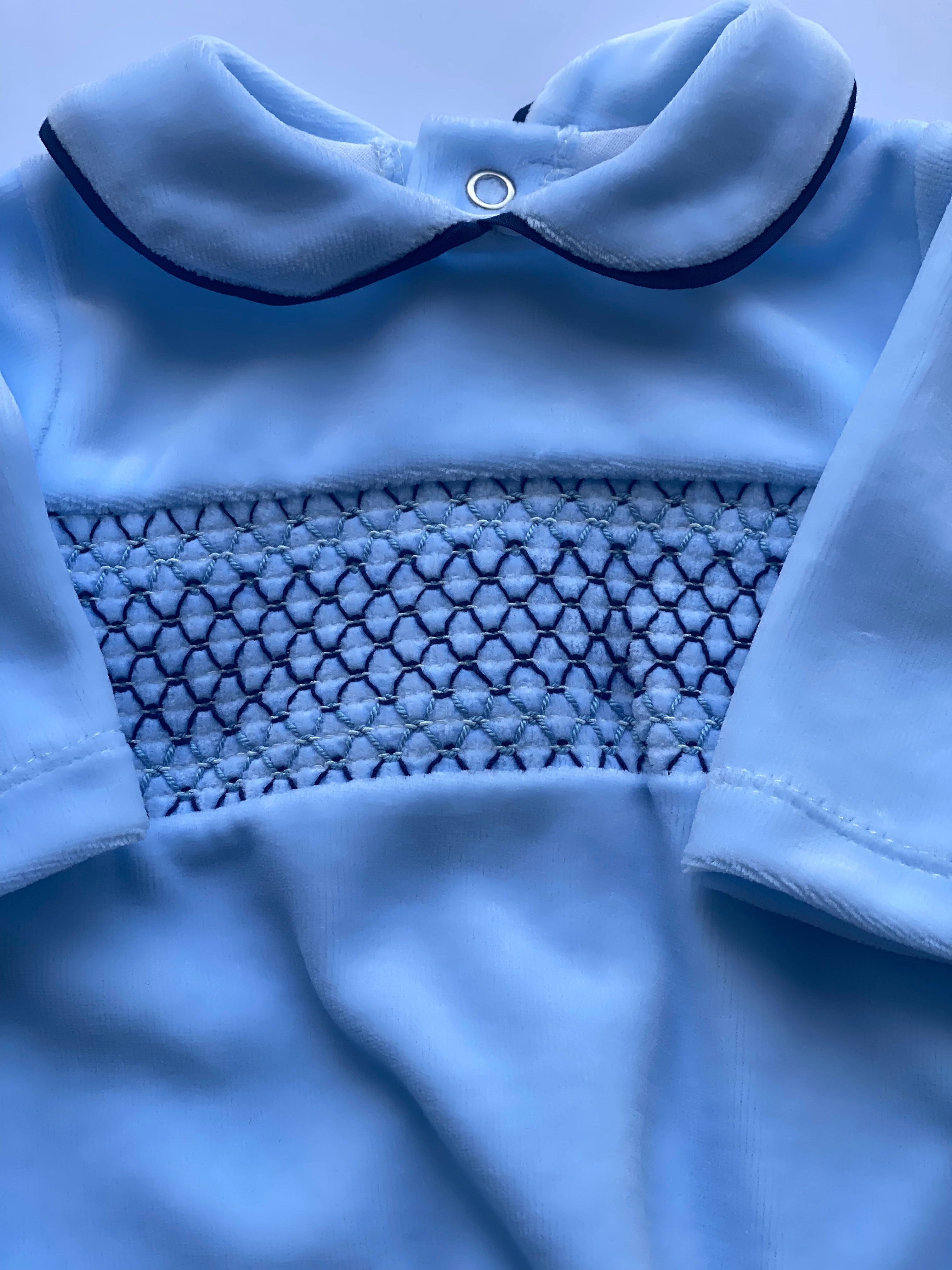 MIA BELLA Luxury Velour Smocked Style BabyGrow Pale Blue / Navy SG68V