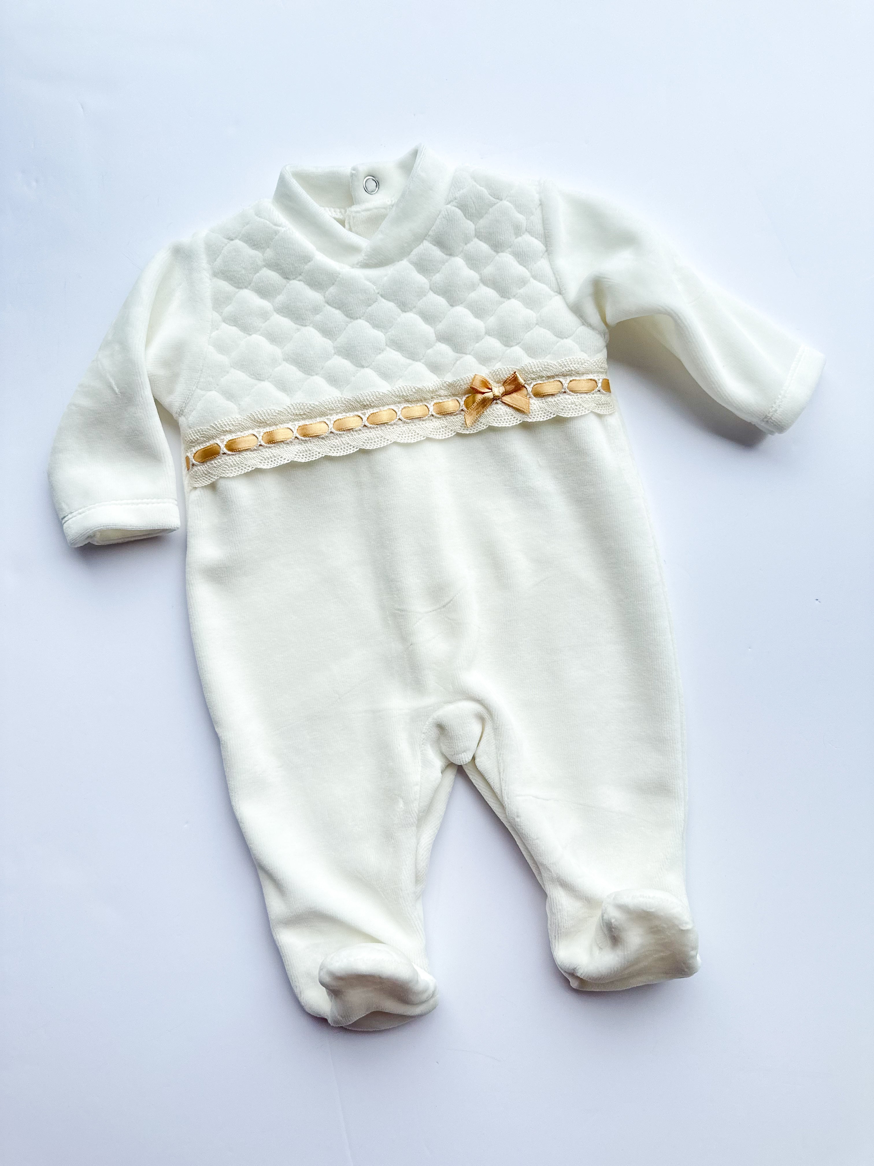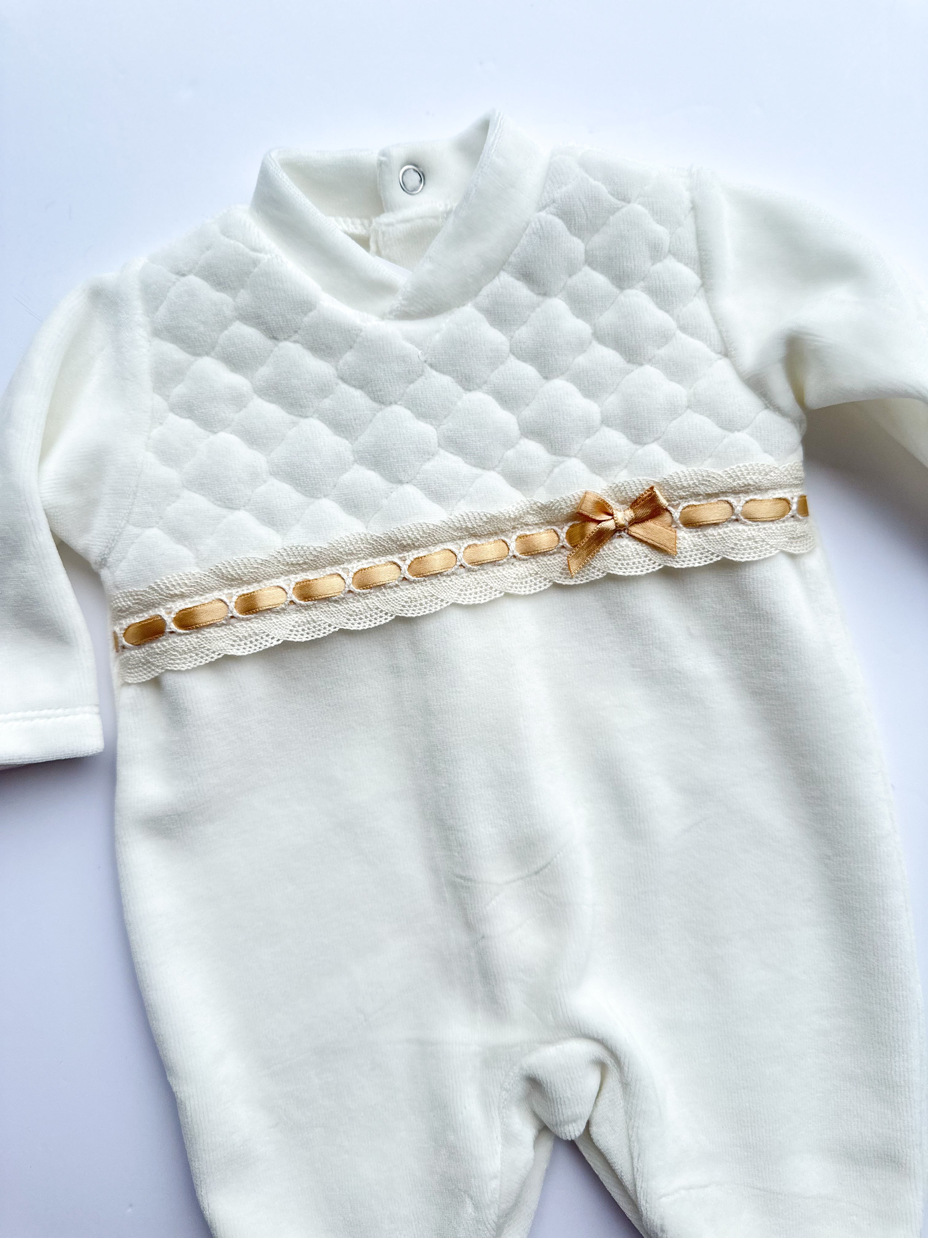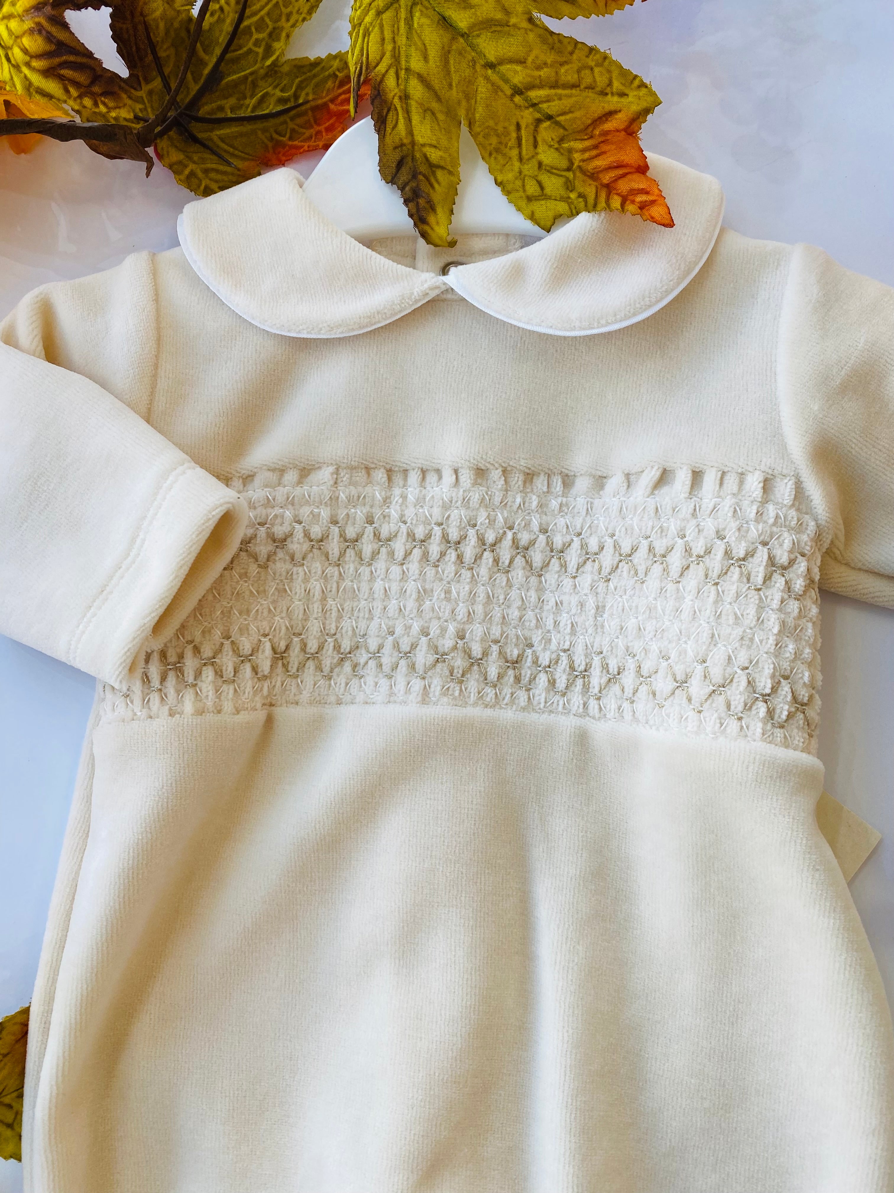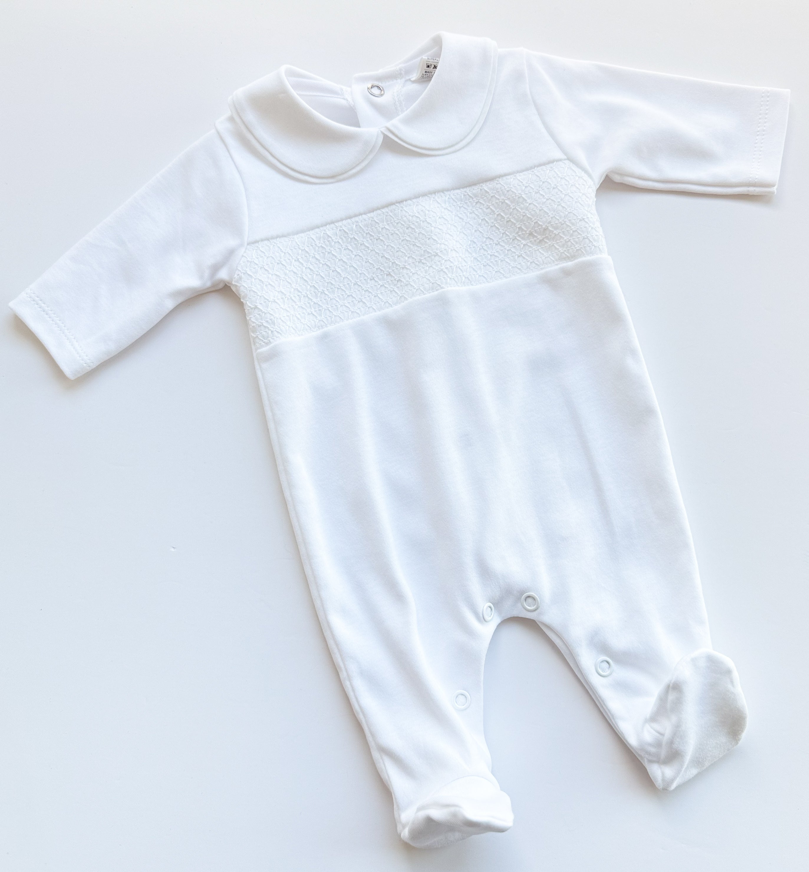 MIA BELLA Luxury Velour Smocked Style BabyGrow White