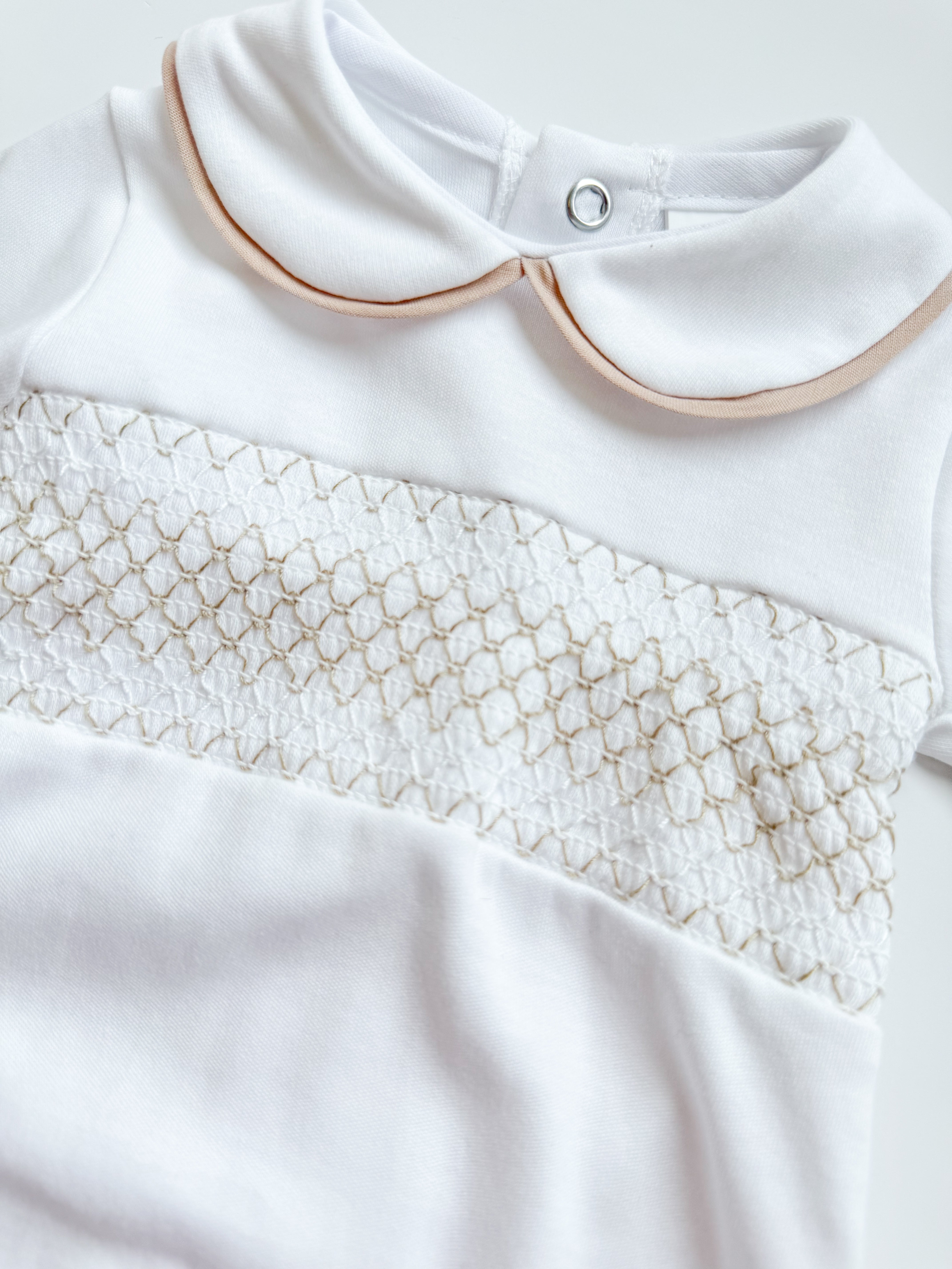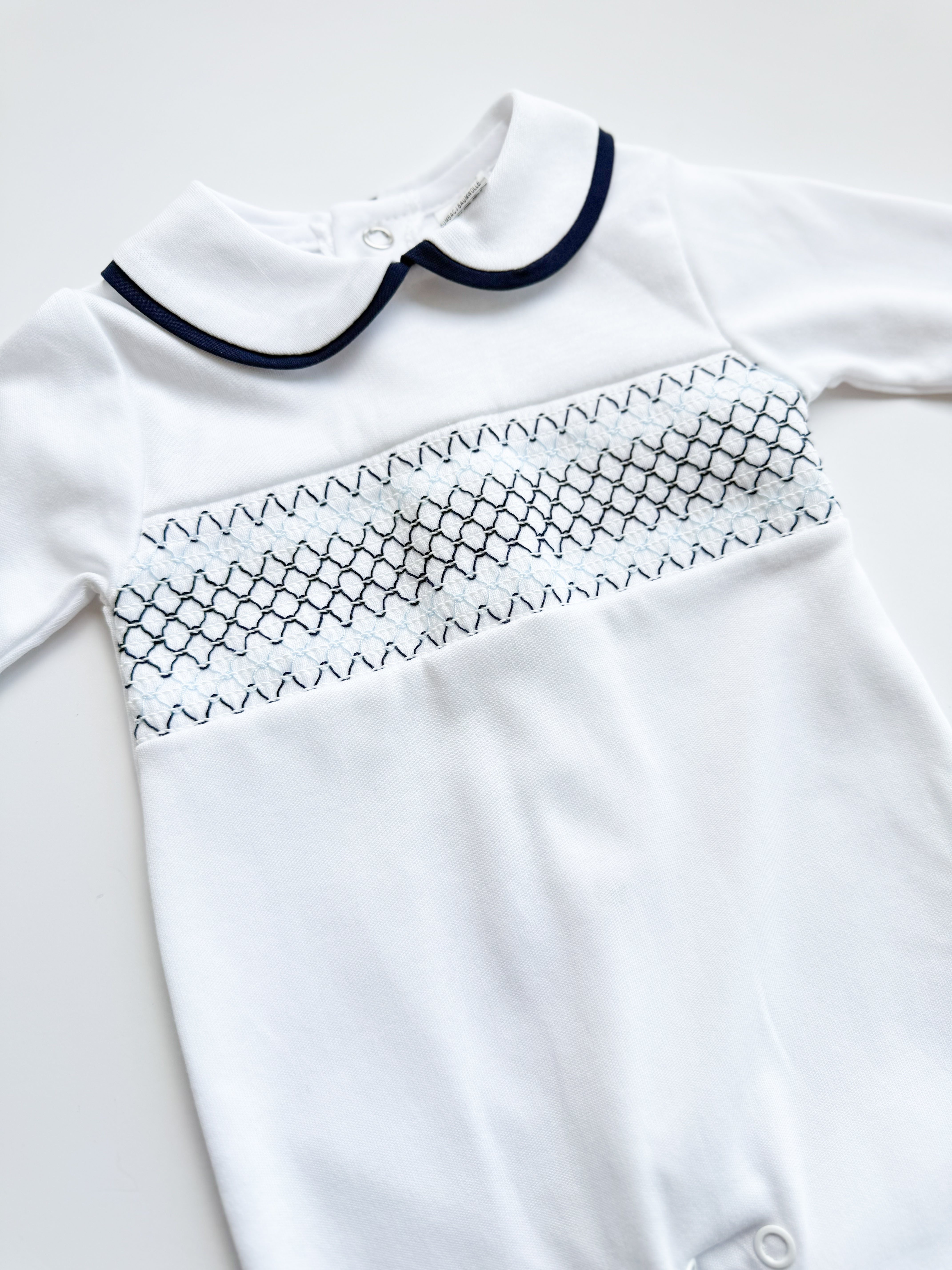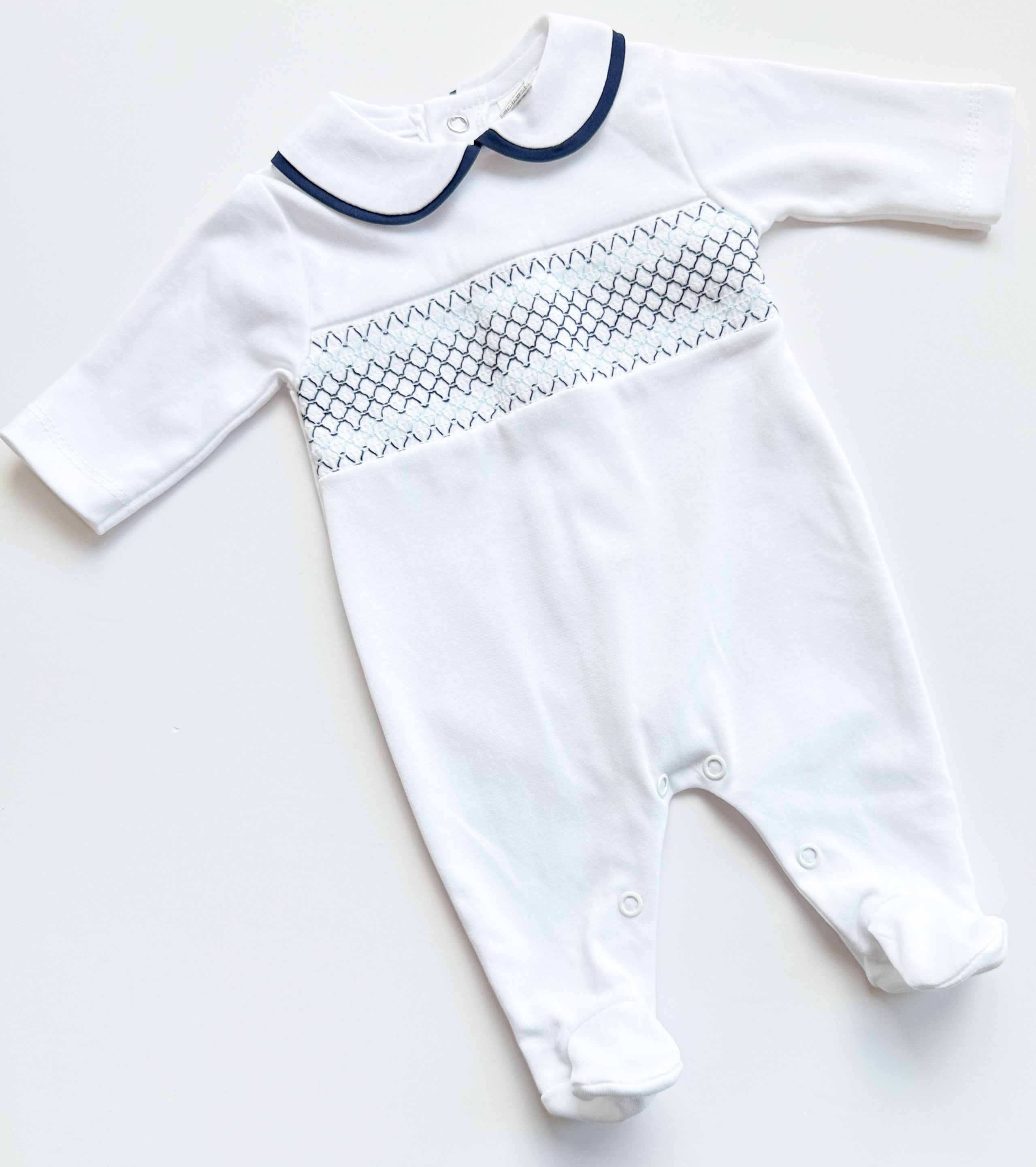 MIA BELLA Smocked Style Cotton Babygrow White/Navy