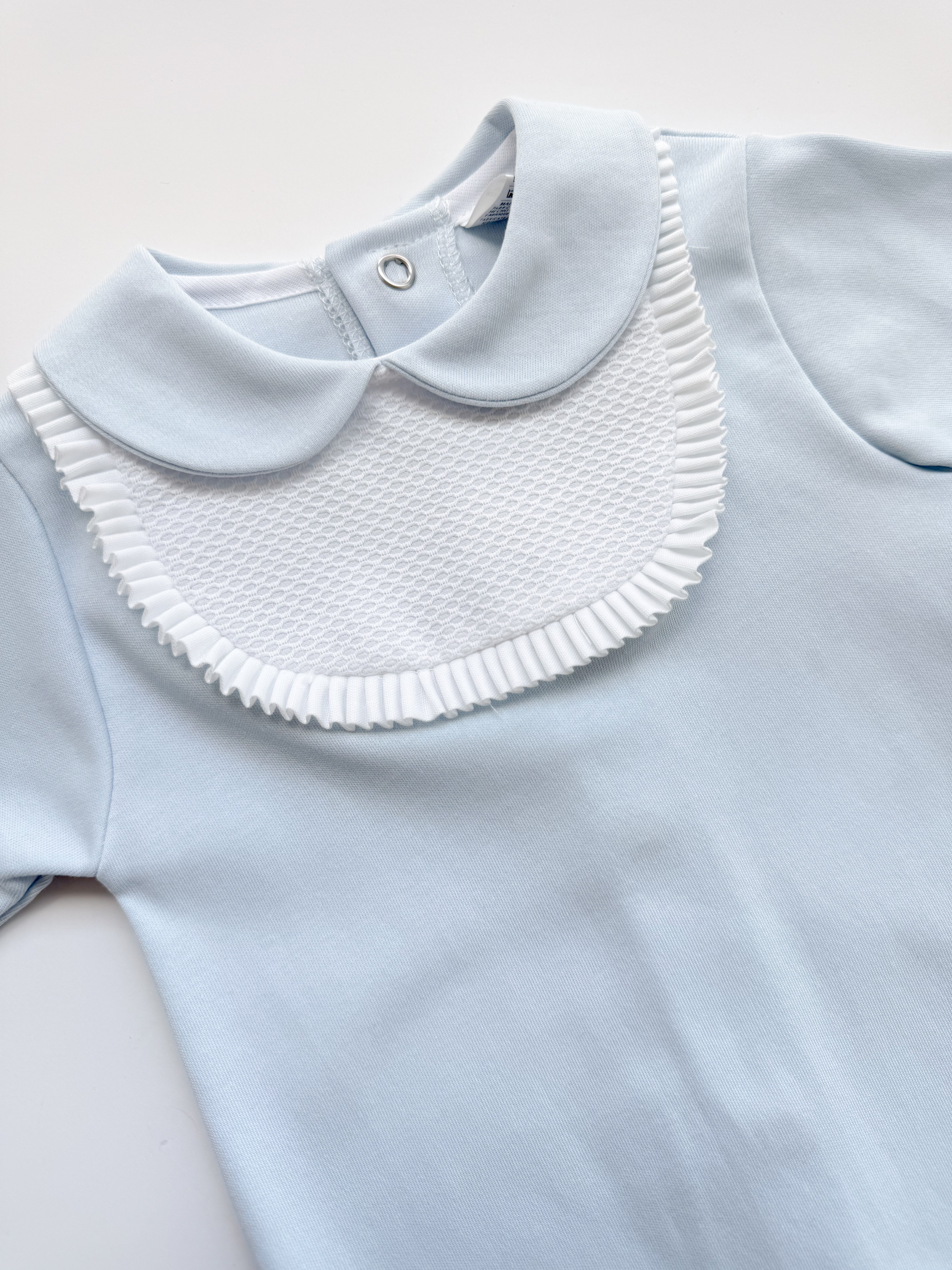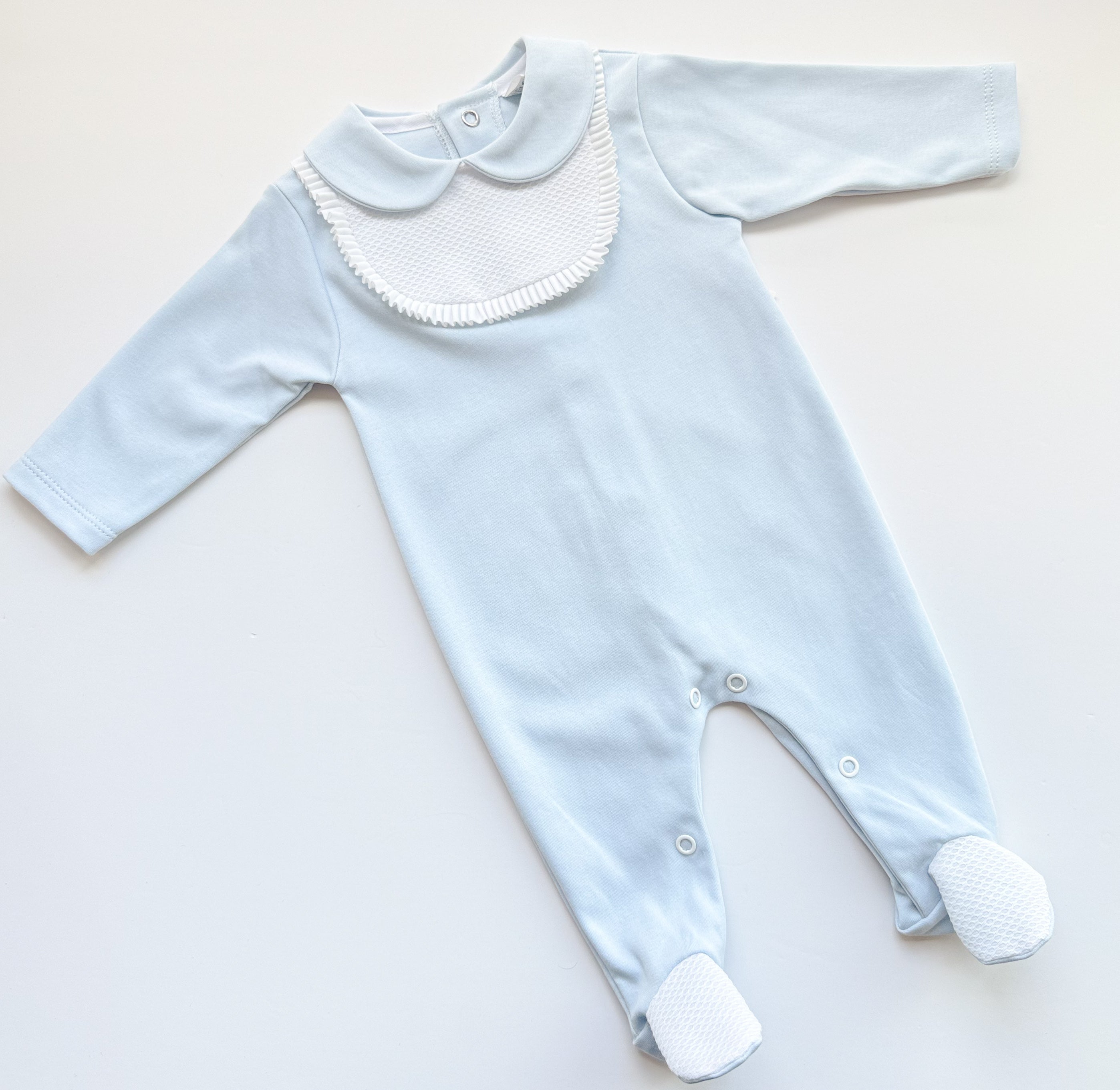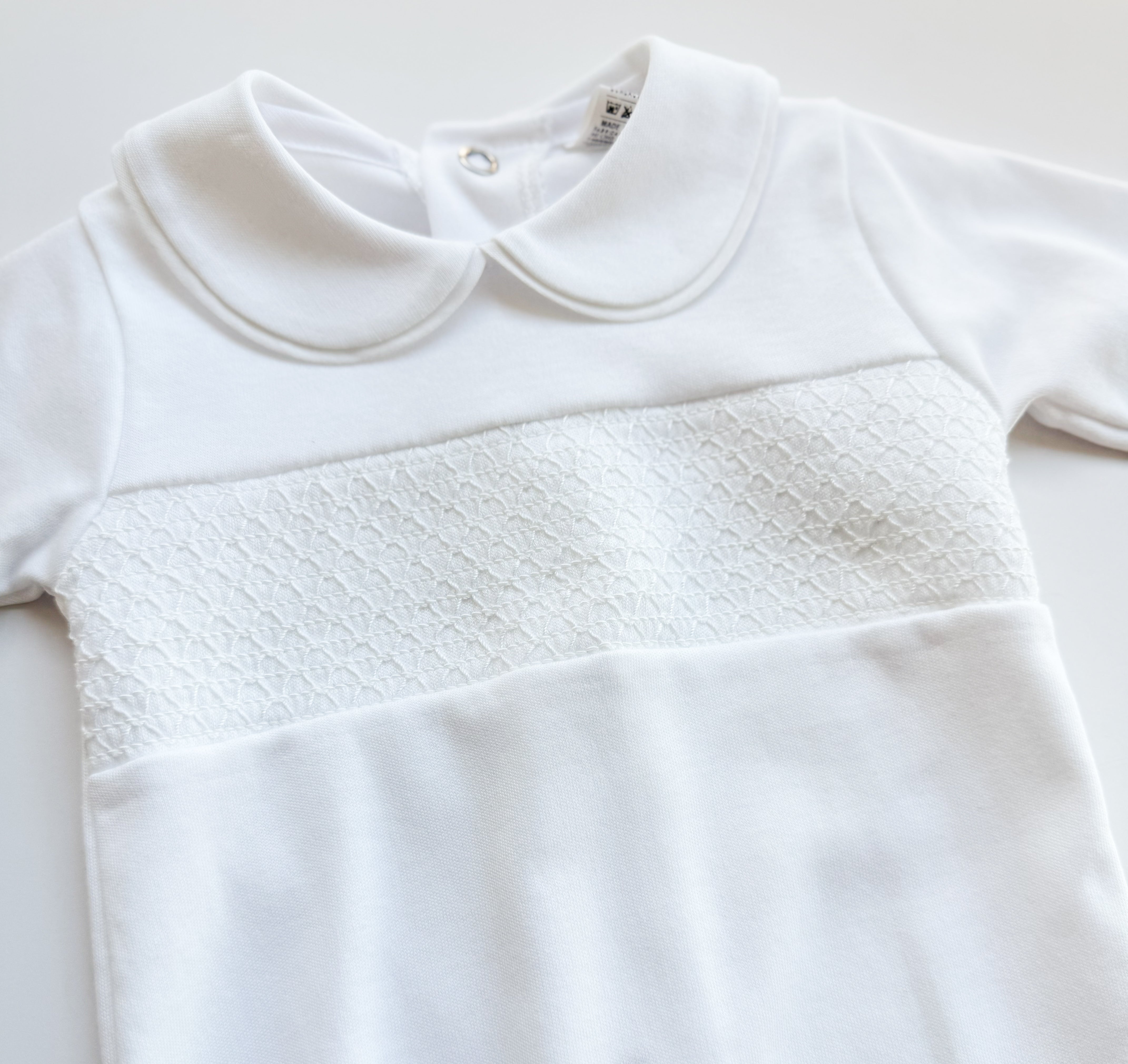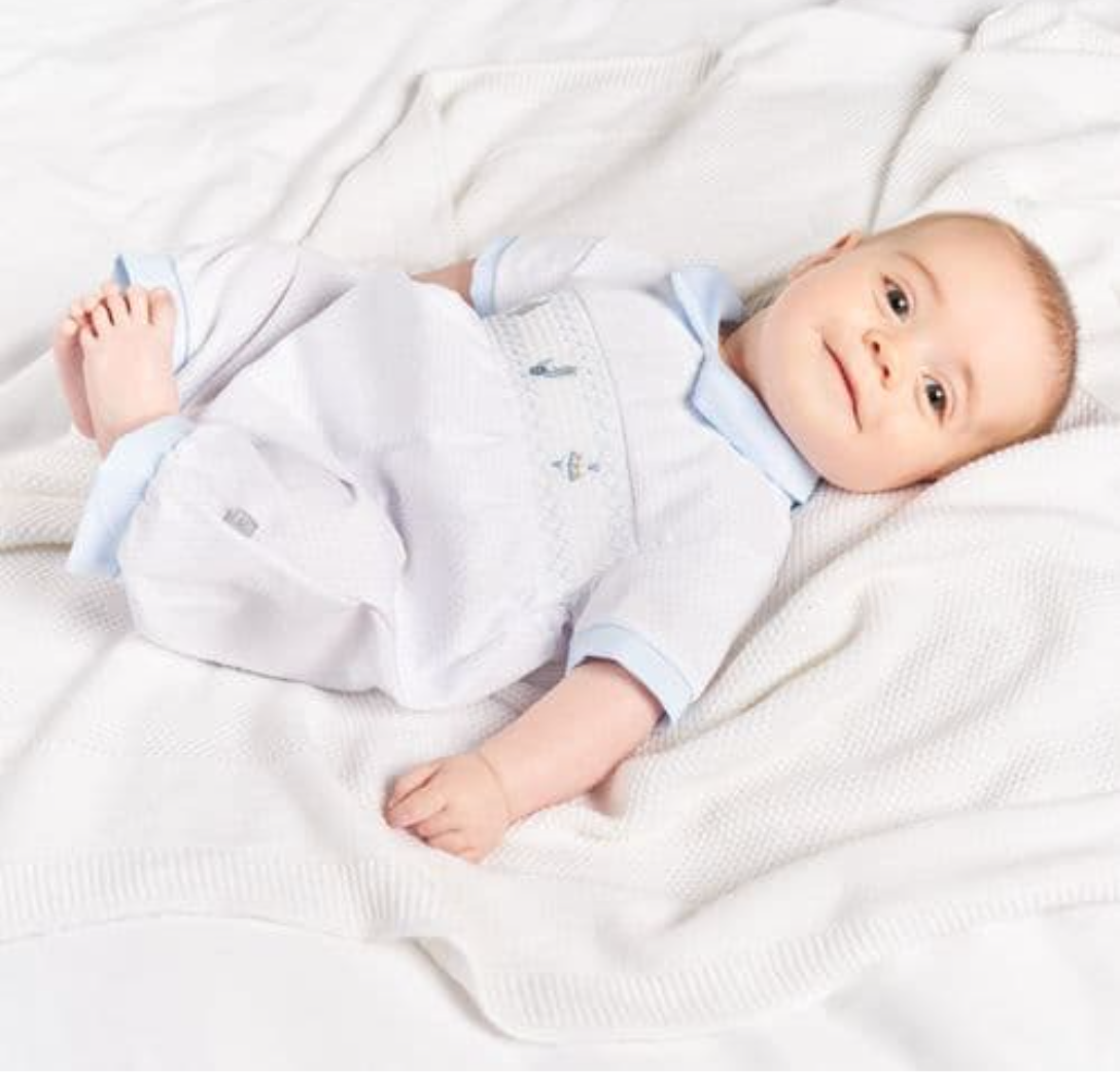 MIA BELLA Smocked Style Cotton Babygrow White/Navy