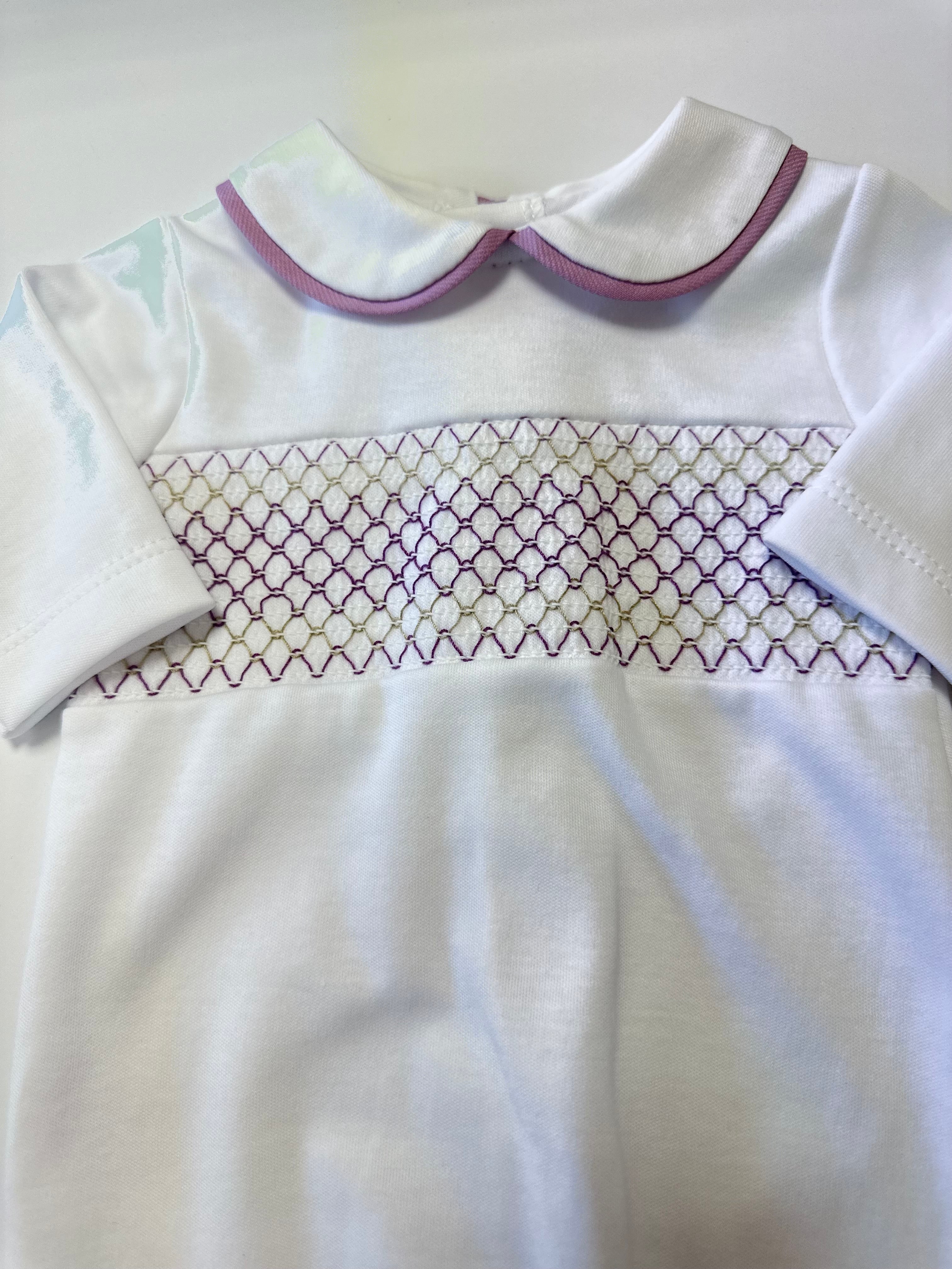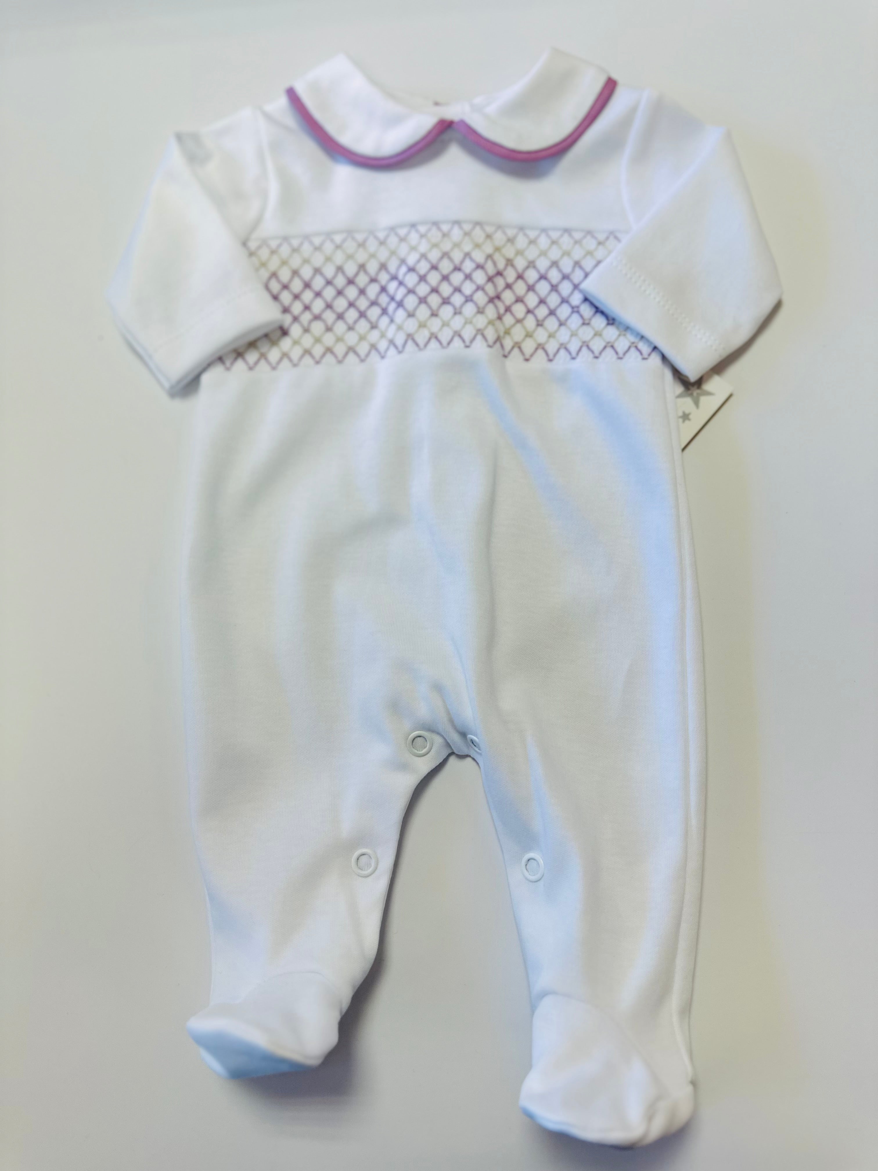 MIA BELLA Smocked Style Babygrow White & Lilac