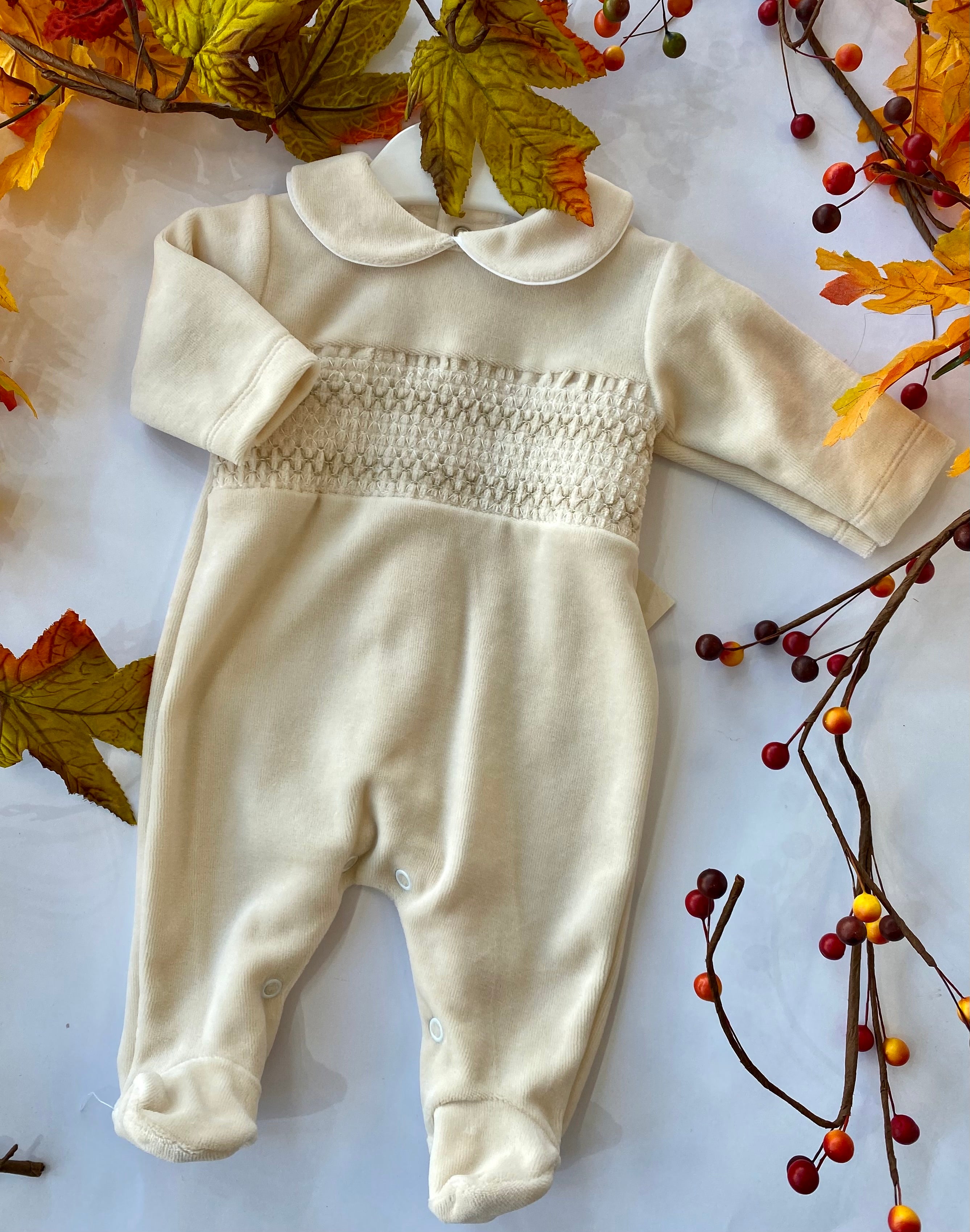MIA BELLA Luxury Velour Smocked Style BabyGrow Camel / Soft Beige SG68V