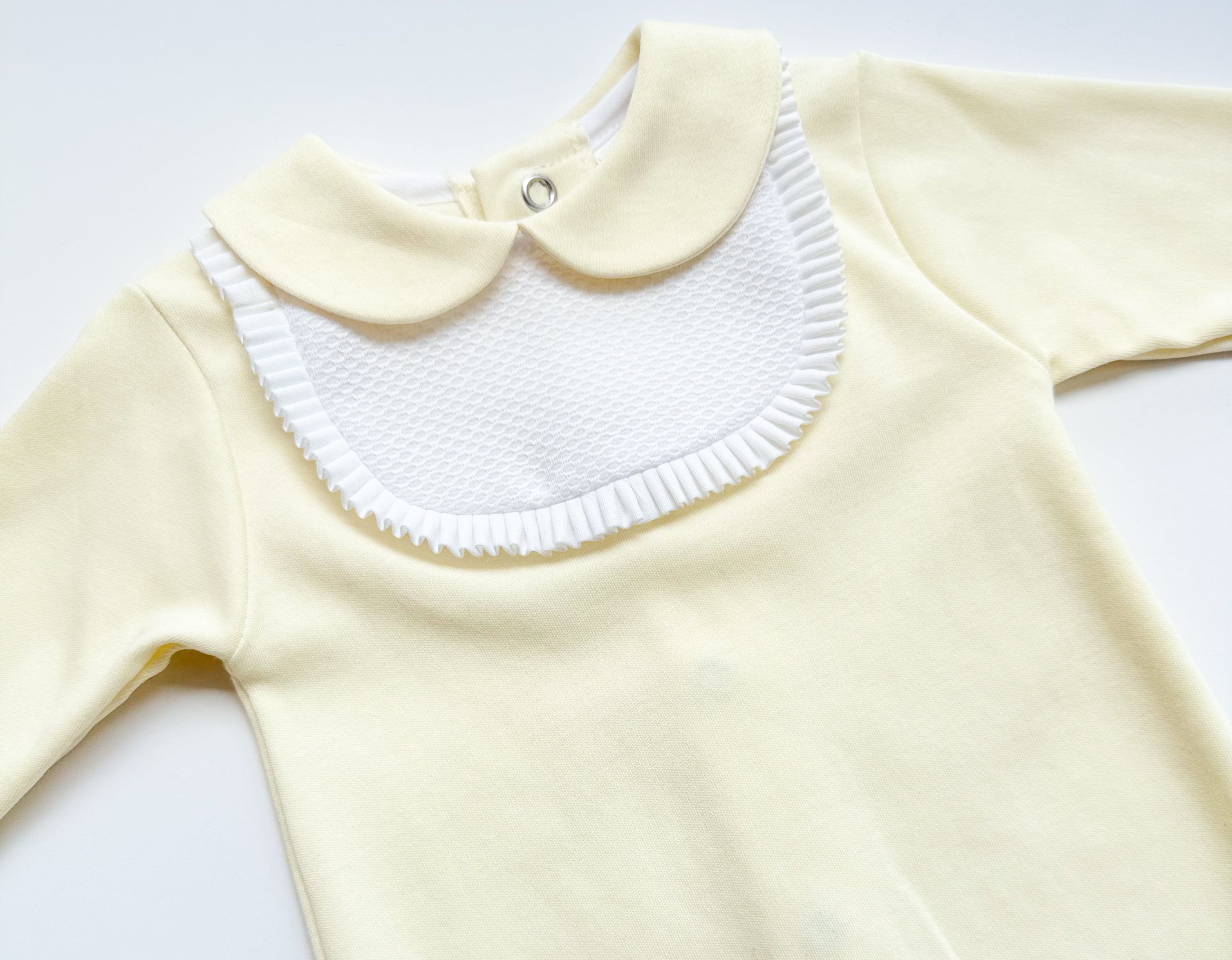 MIA BELLA Smocked Style Cotton Babygrow Lemon
