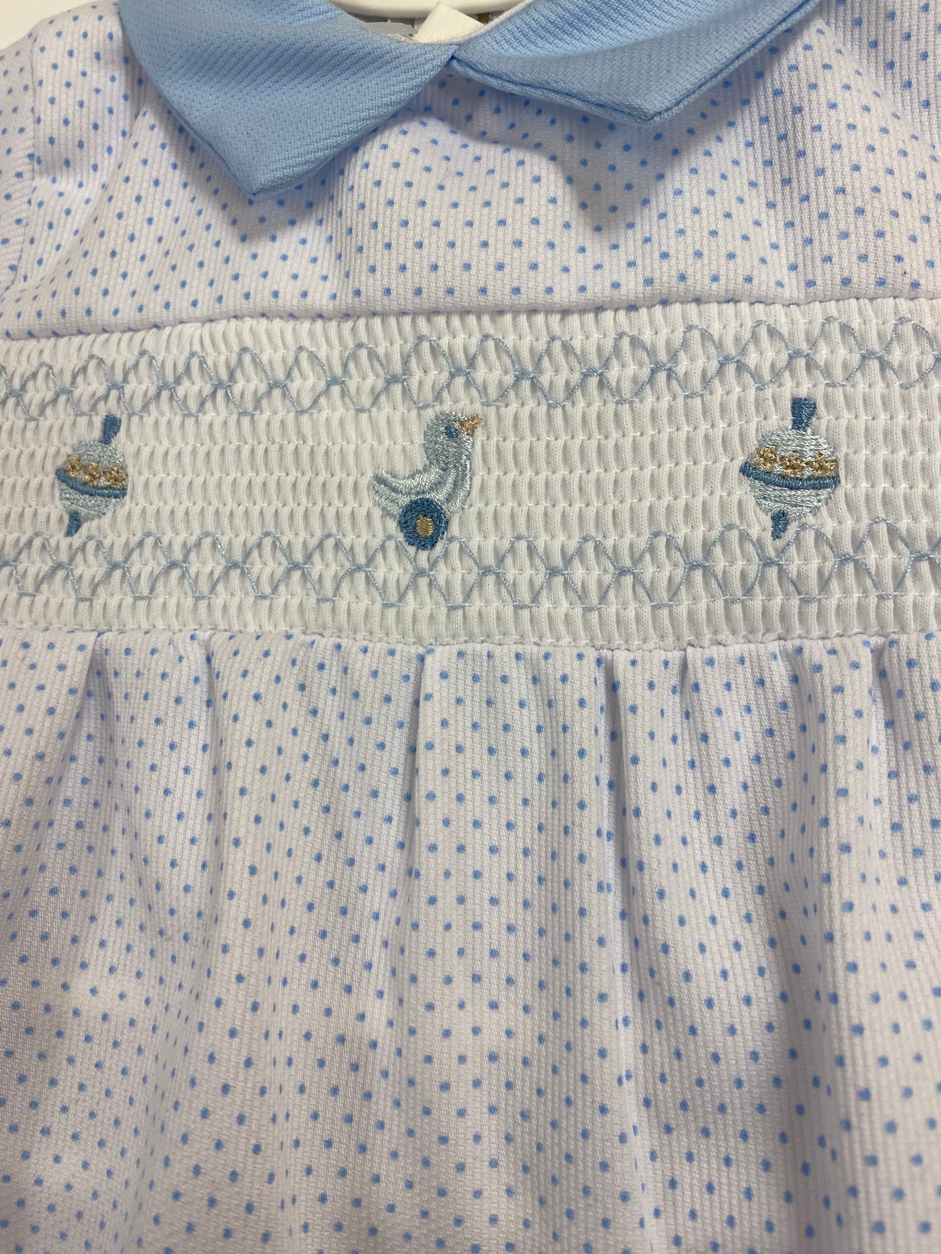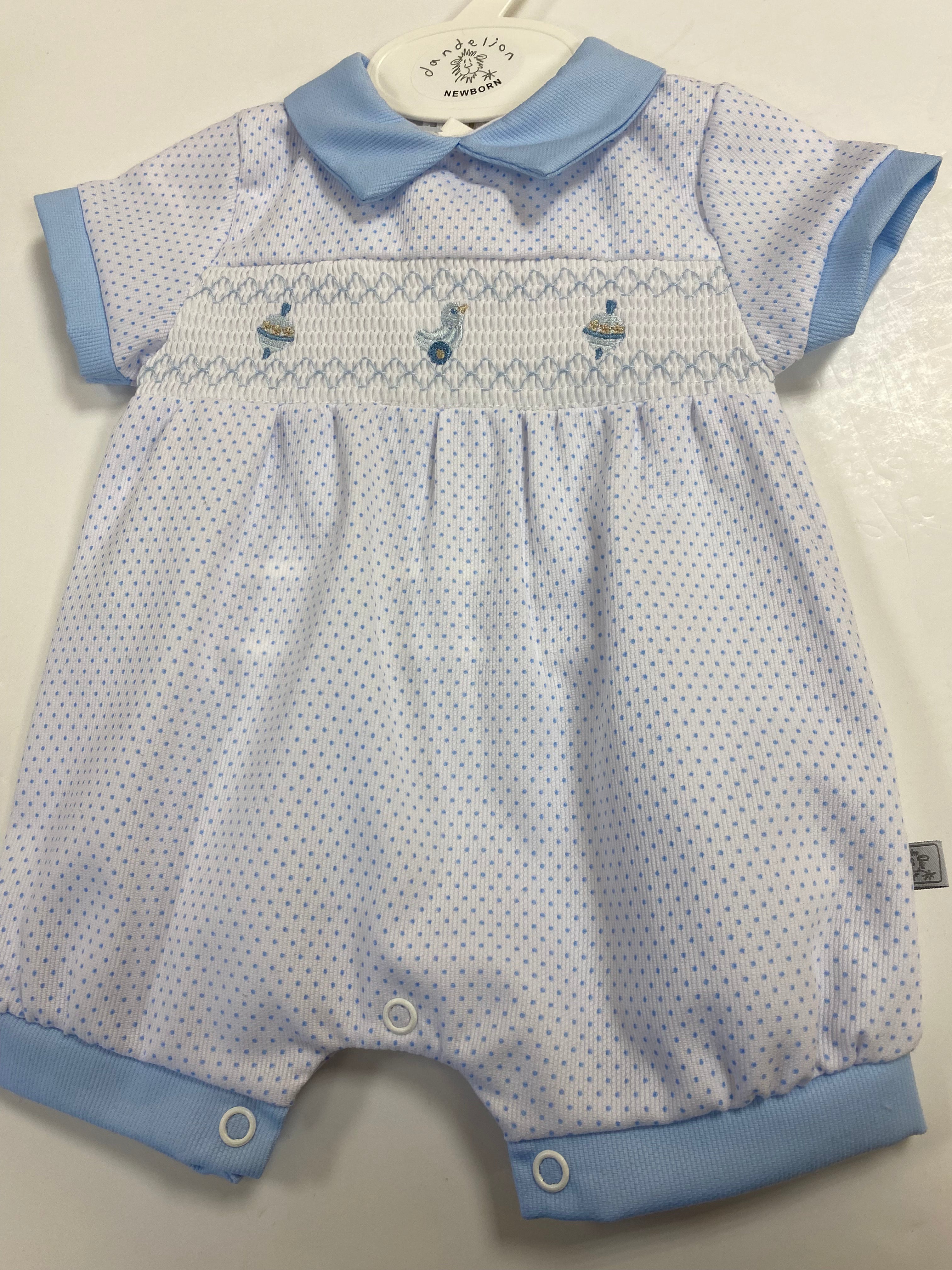 Dandelion AV6104 Smocked Baby Boys Blue Duck Romper
