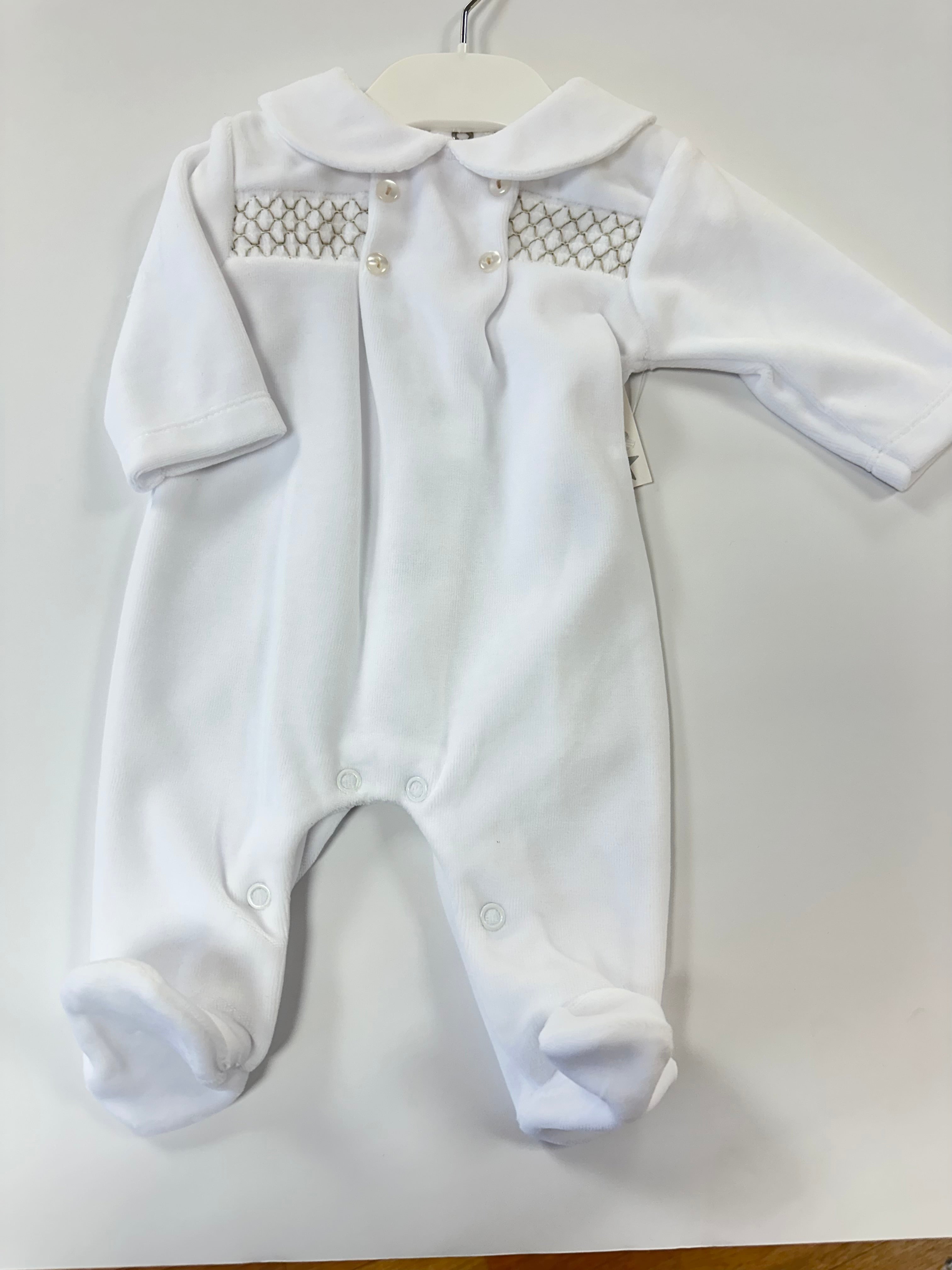 Mia Bella White/Camel Velour Baby Grow