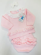 Mia Bella 2 Piece Knitted Frilled Jam Pants Set C5514A Baby Pink