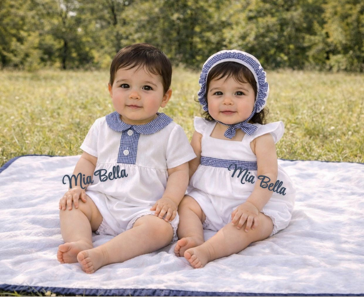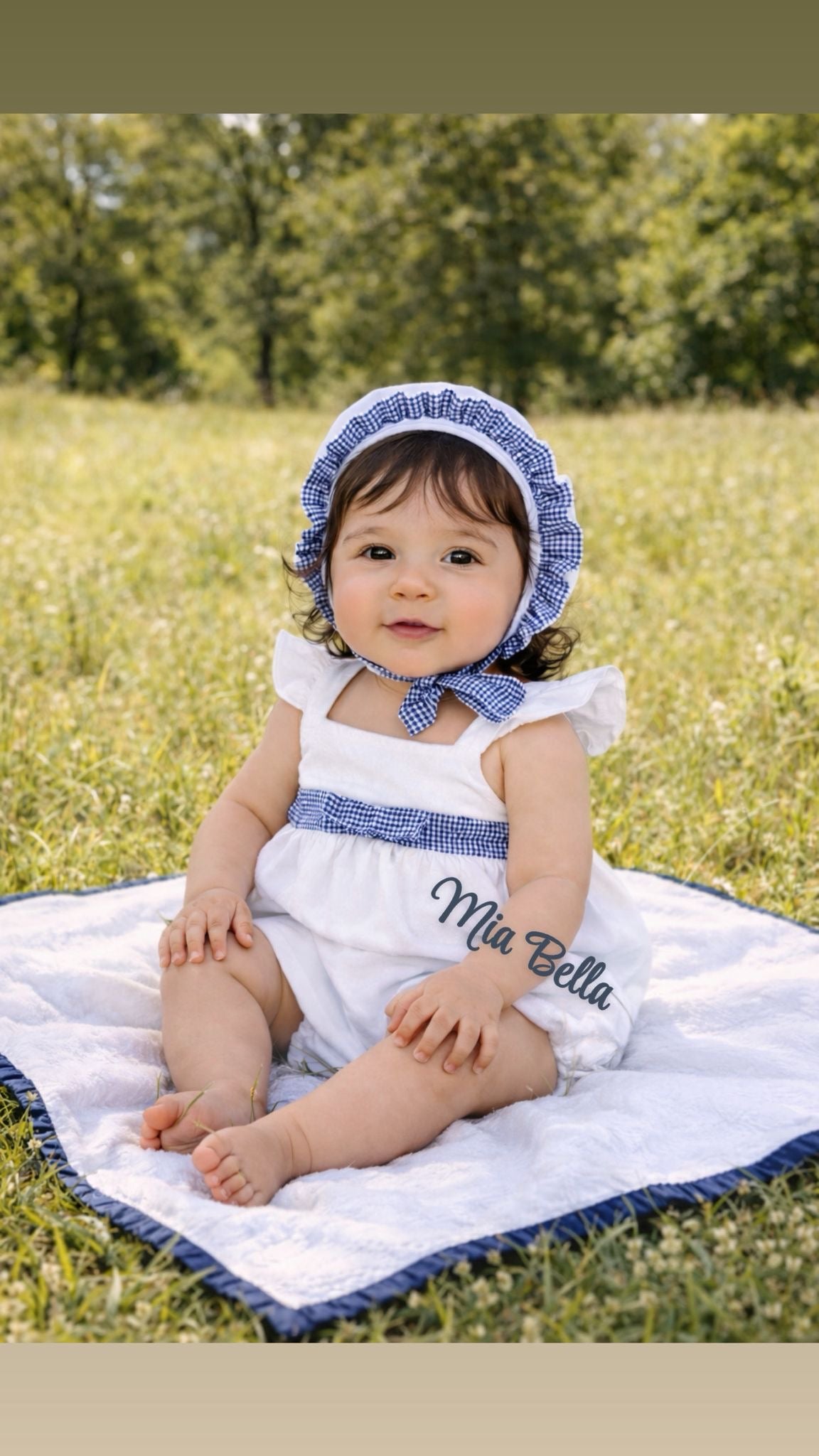 Rapife White & navy girls Romper & bonnet
