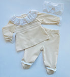 MIA BELLA 2 Piece Smocked Style Set Camel/White