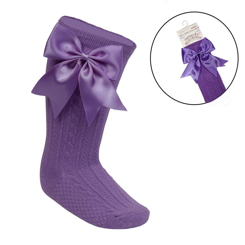 Girls Knee High Bow Socks Purple