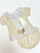 MIA BELLA Luxury Beige & Lace Fine Knit Jam Pant Set