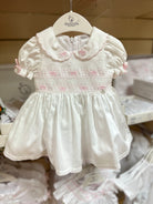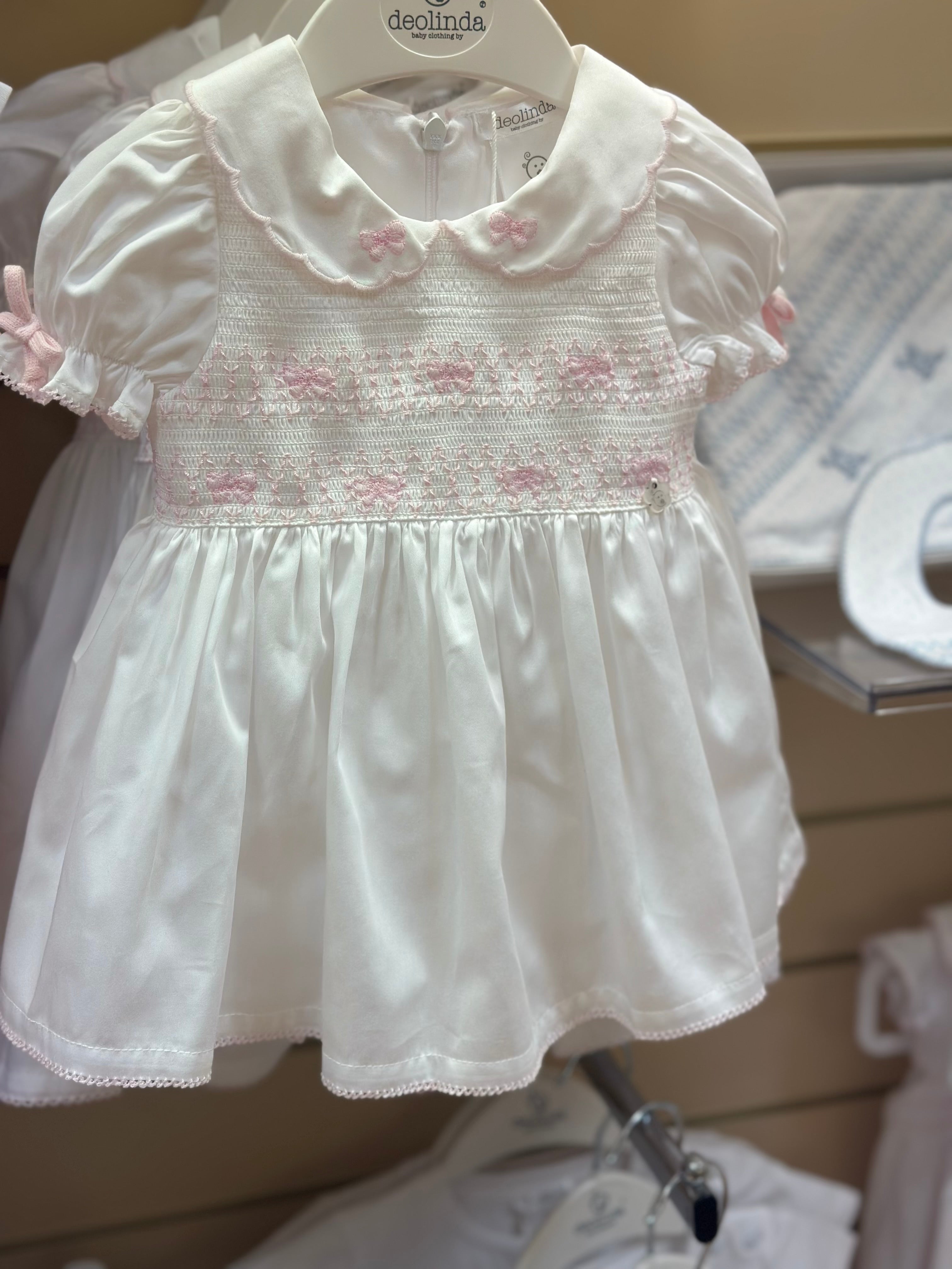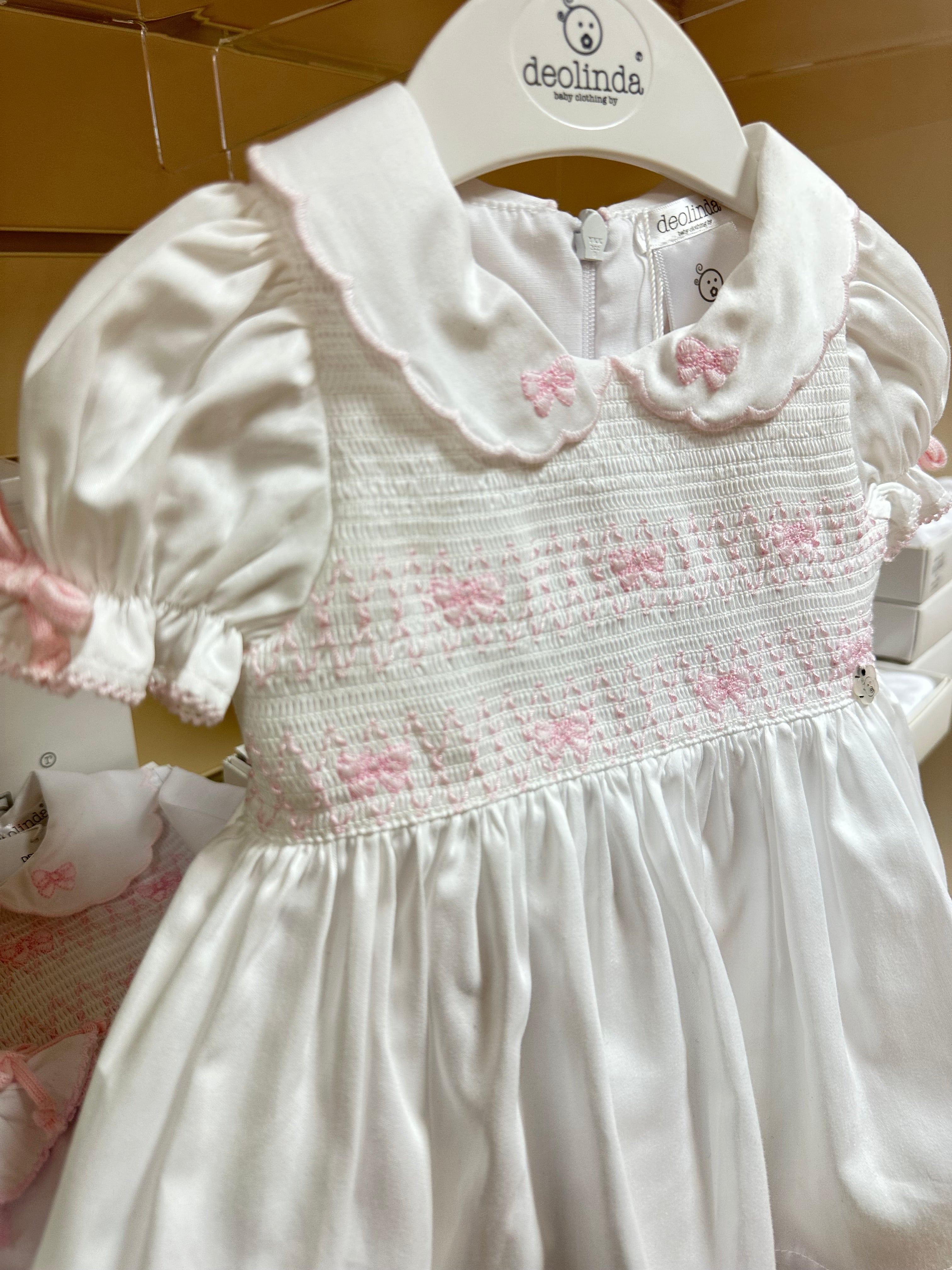 Deolinda white & pink bow smocked Dress