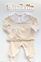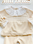 MIA BELLA 2 Piece Velour Smocked Style Set Camel/White