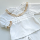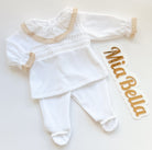 MIA BELLA 2 Piece Velour Smocked Style Set White/Camel