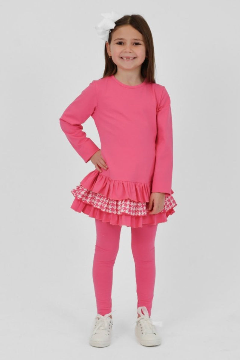 Harris Kids Rasberry Pink Ruffle Dogtooth Print Legging Set