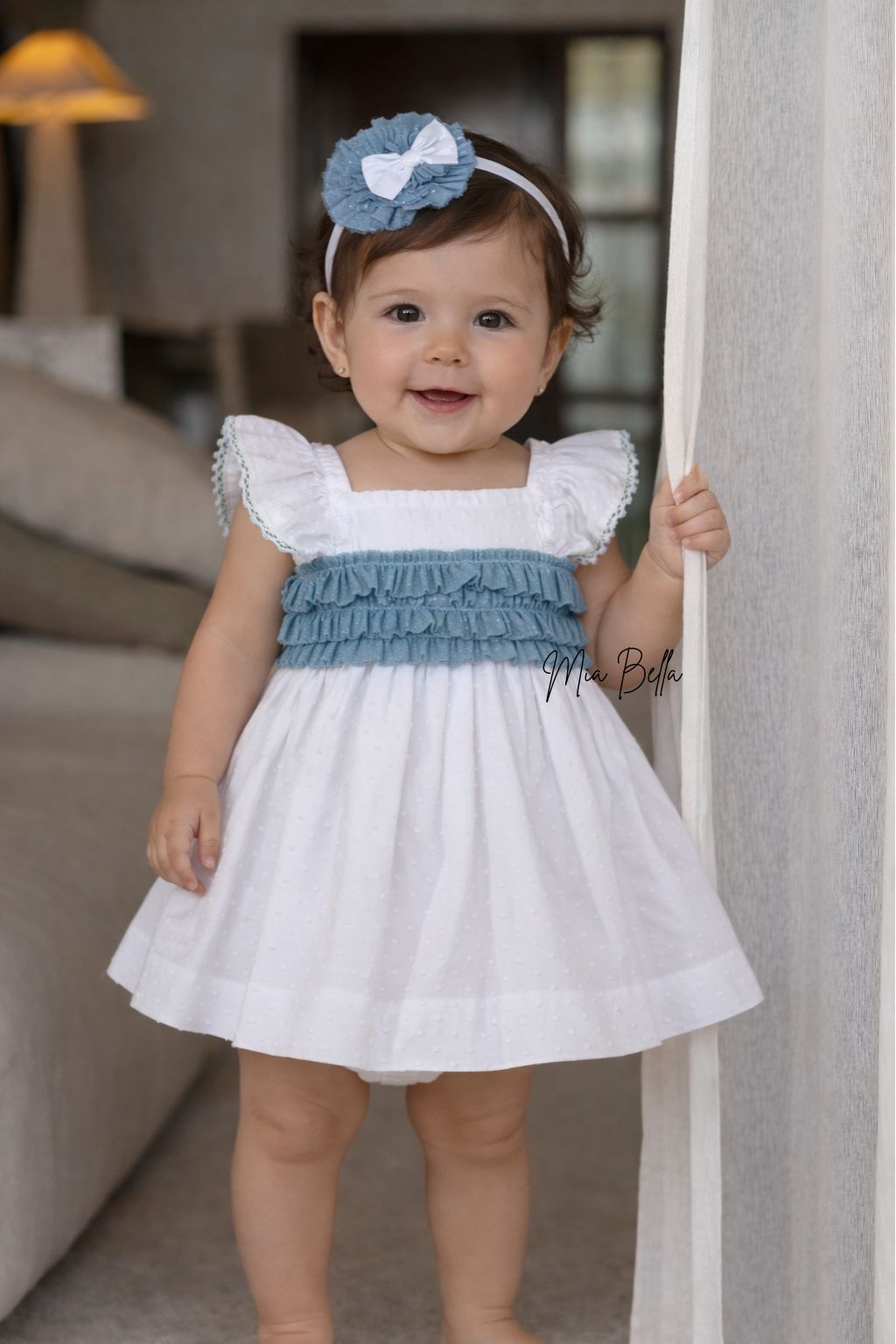 PREORDER Miranda White/Blue Baby Dress & Pants