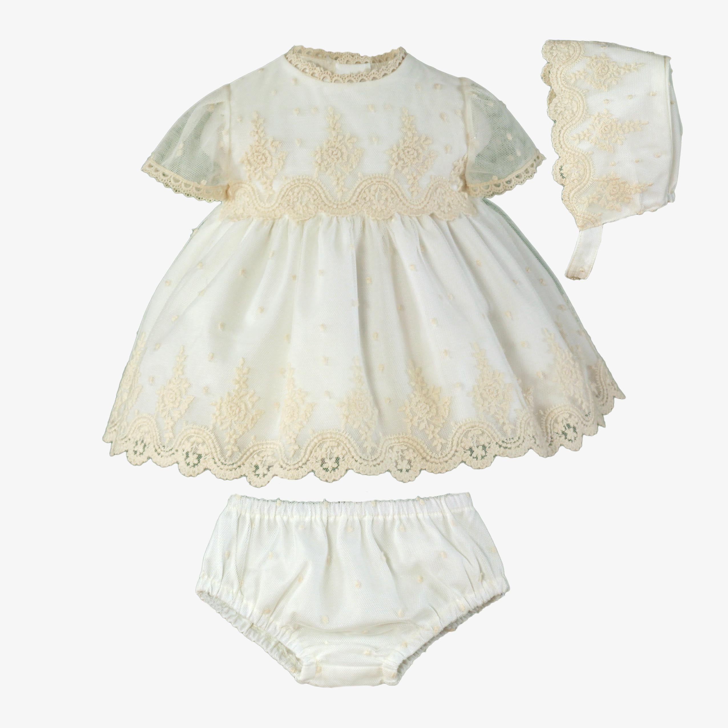 Miranda Ivory Girls Lace Dress, Pants & Bonnet