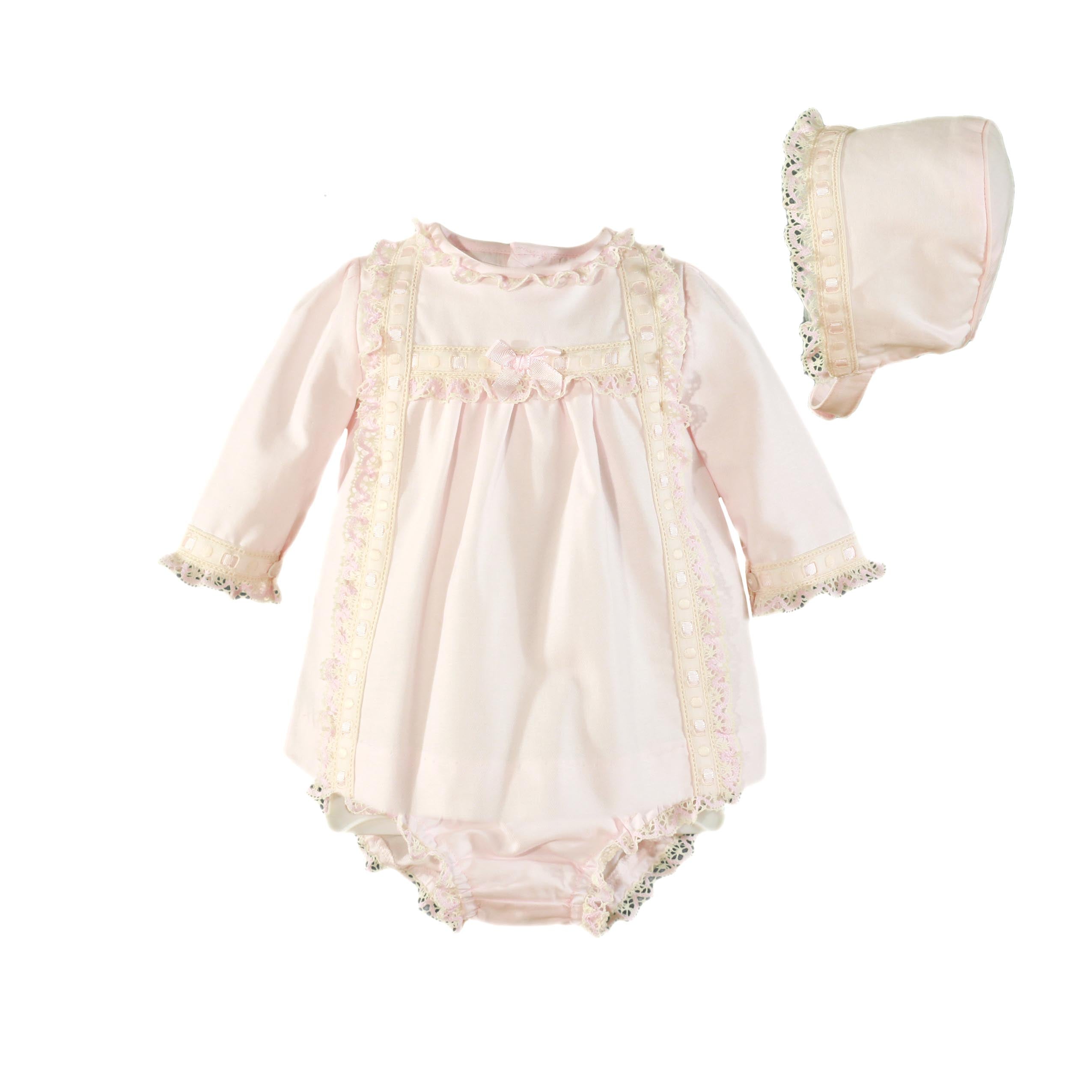 Miranda Pink/Cream Dress, Pants & Bonnet