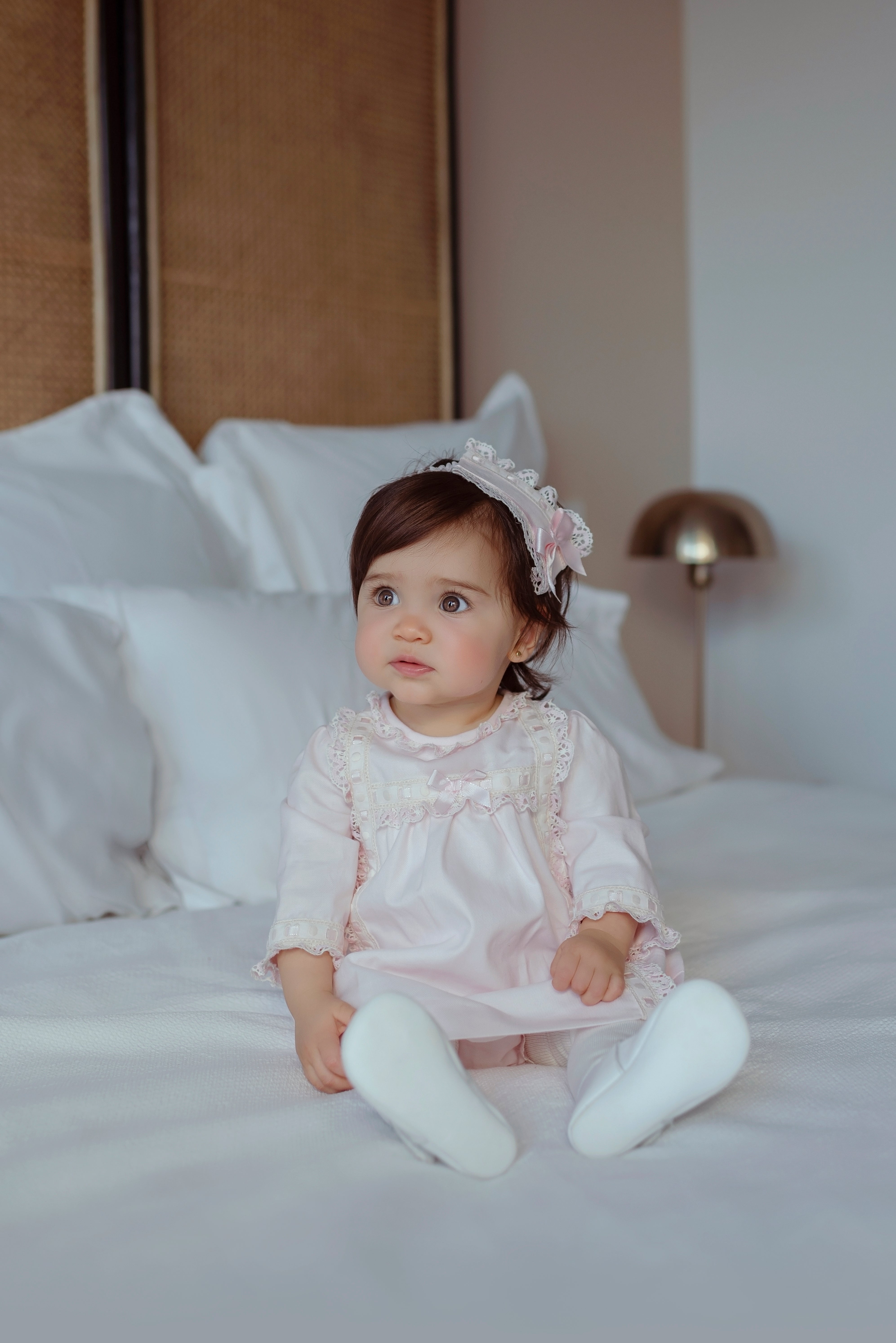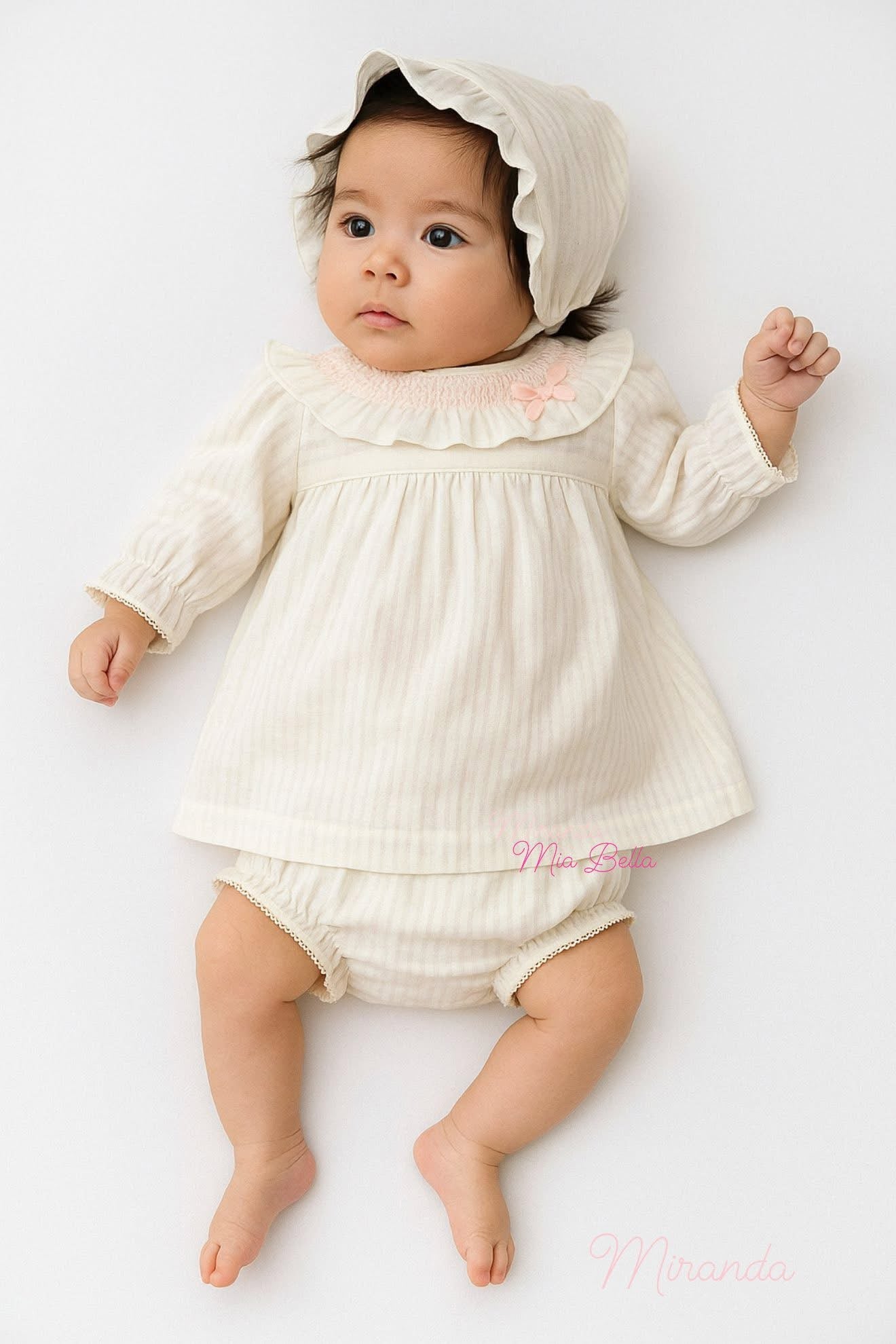 Miranda Cream/Pink Dress, Pants & Bonnet