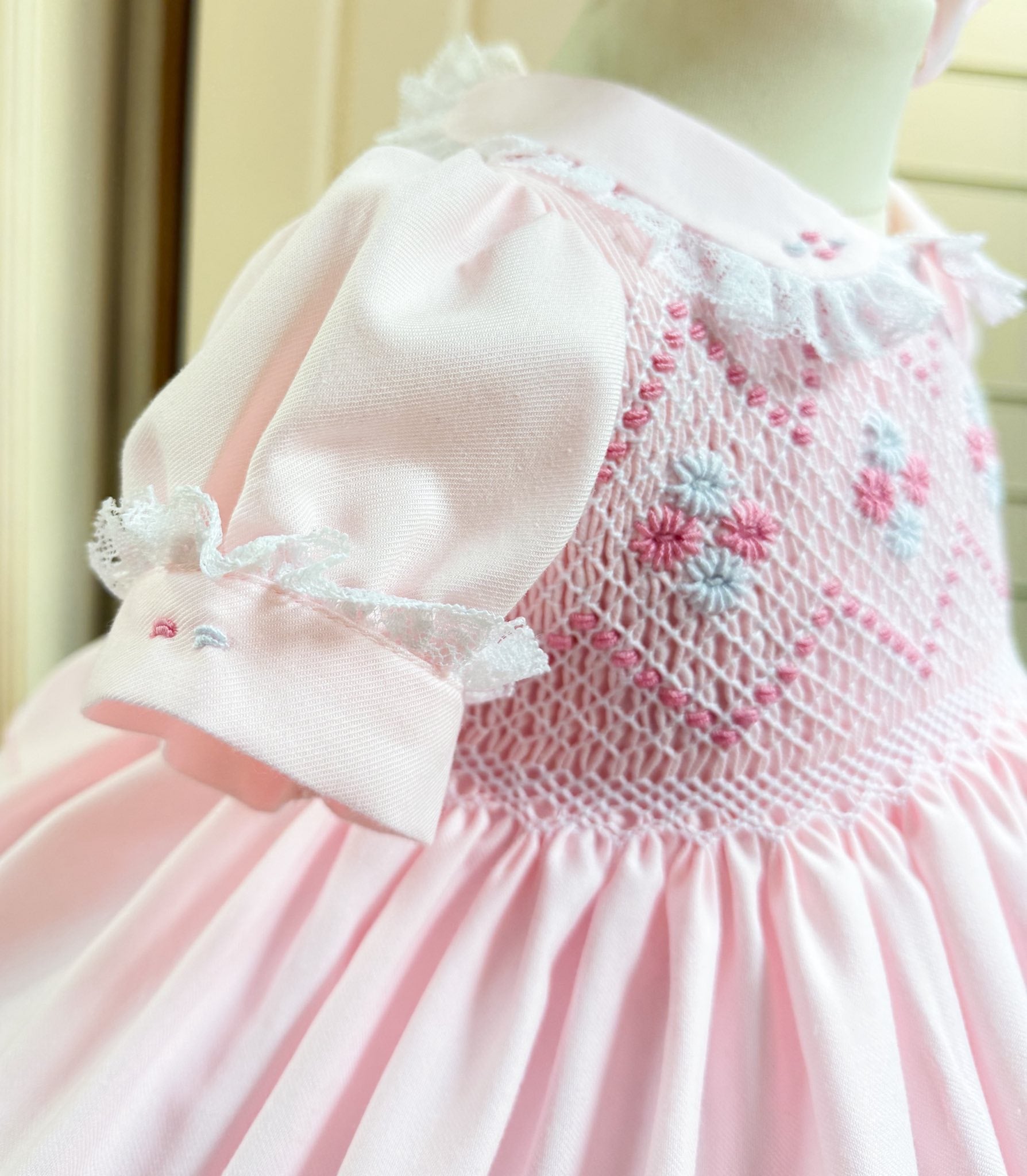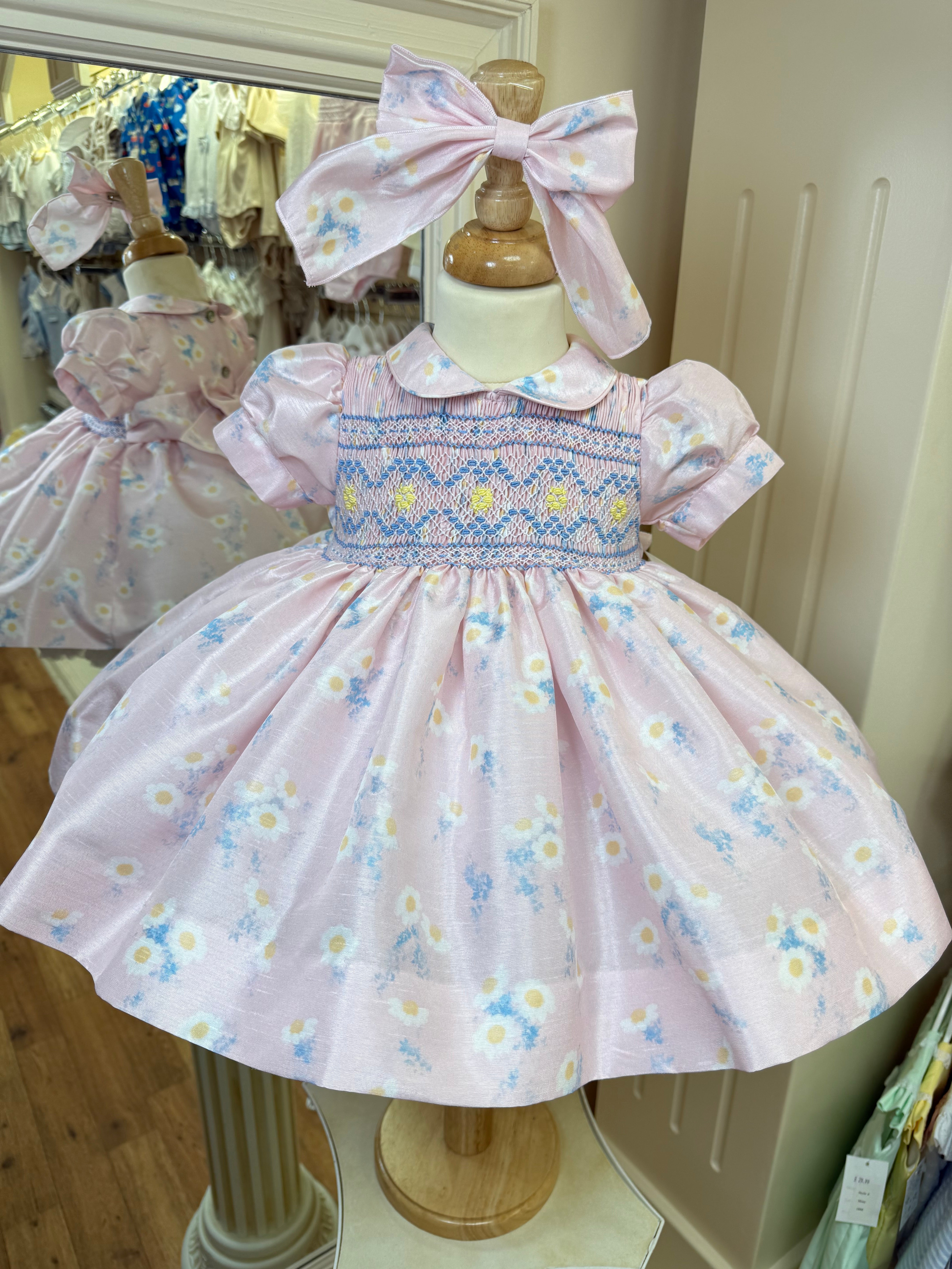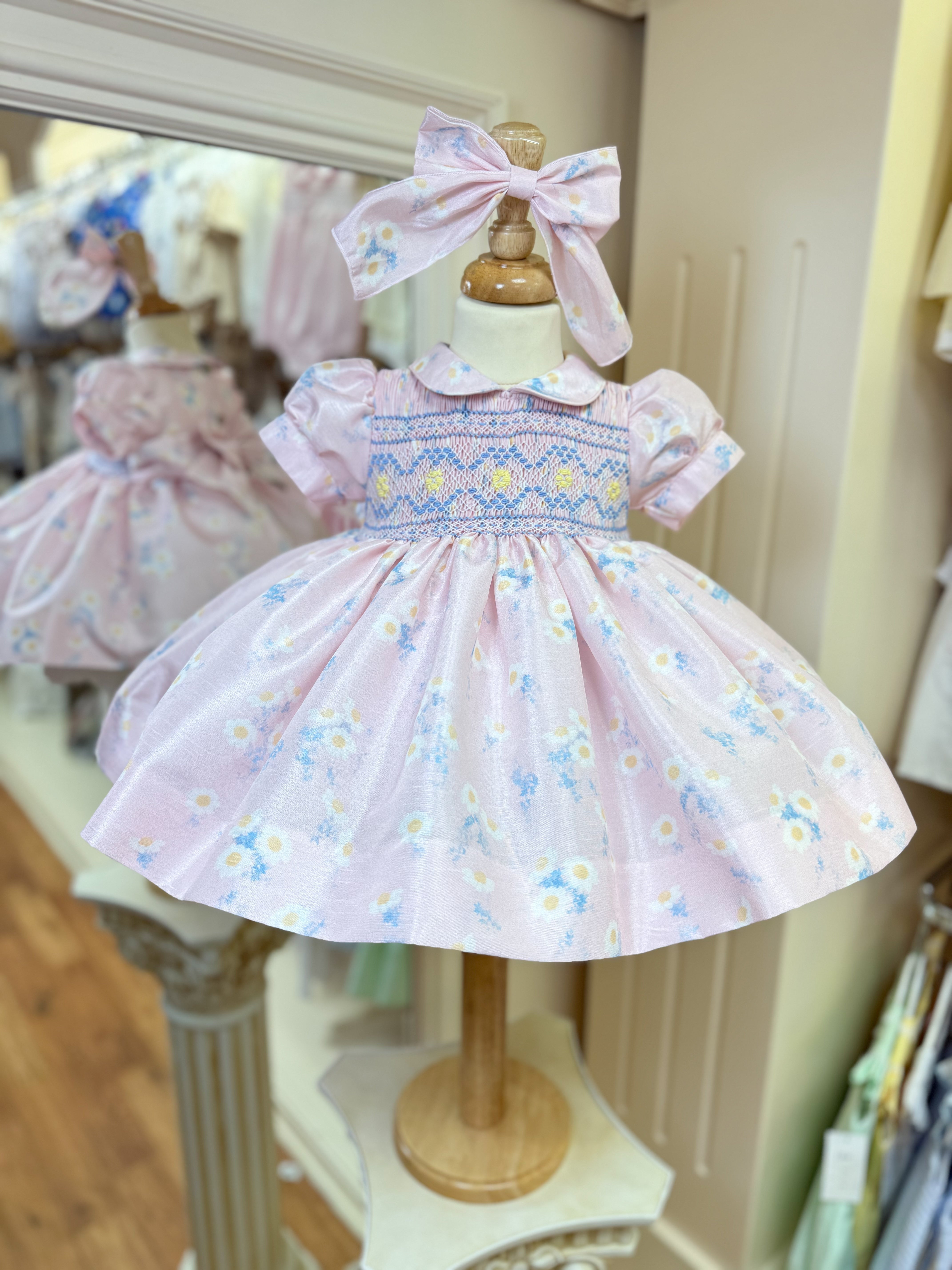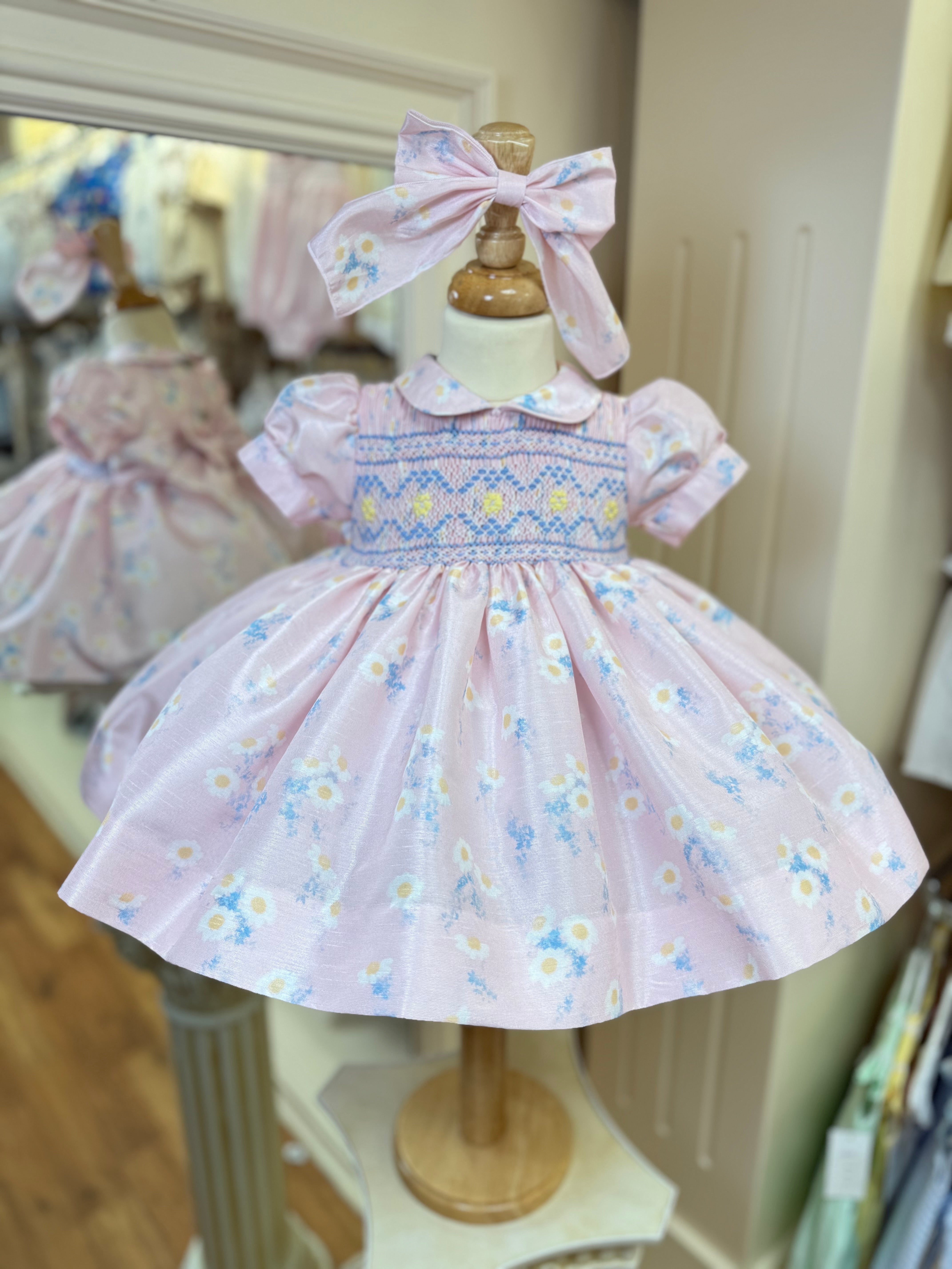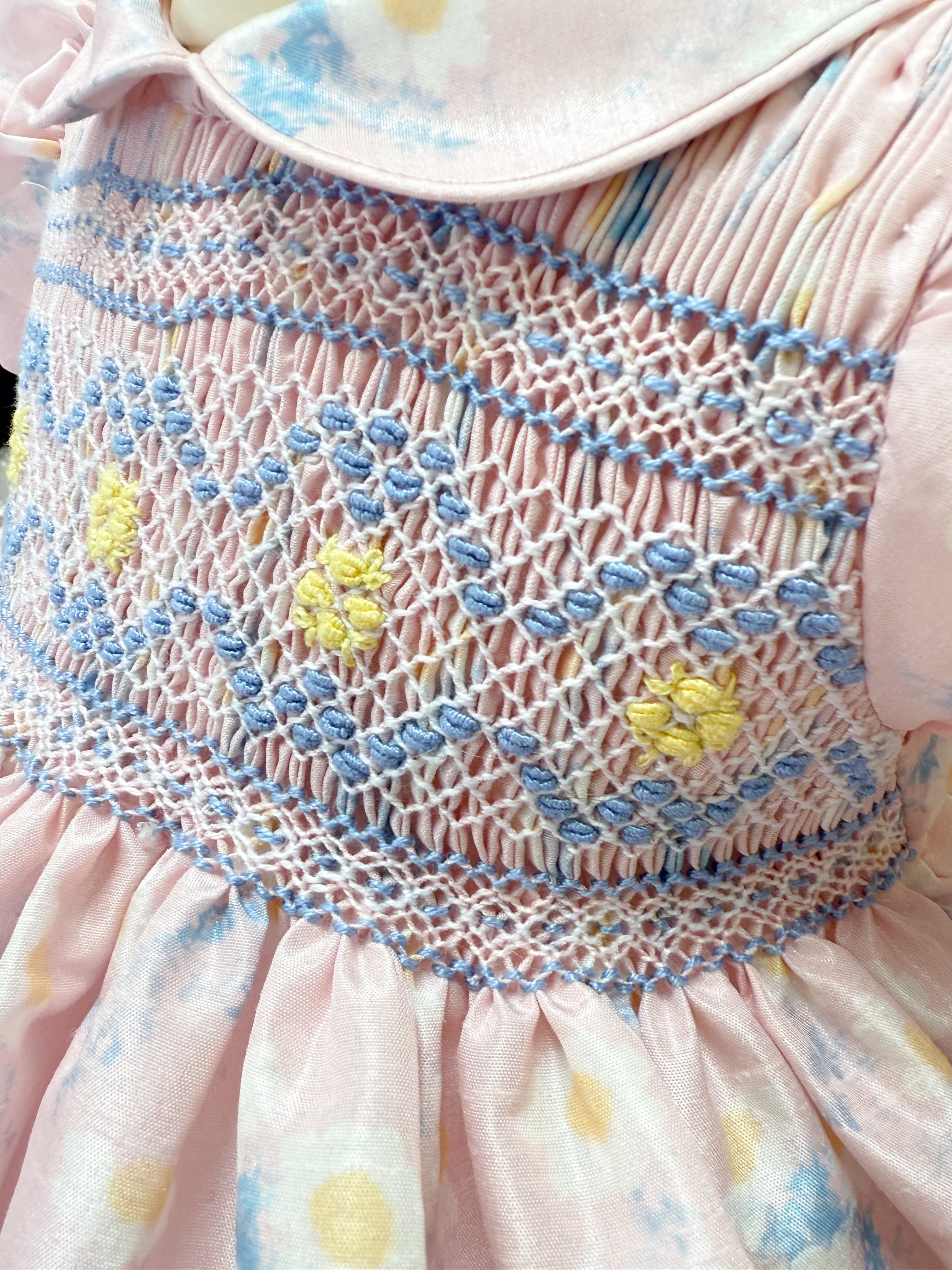 Naxos Blossom Pink Floral Hand Smocked Dress