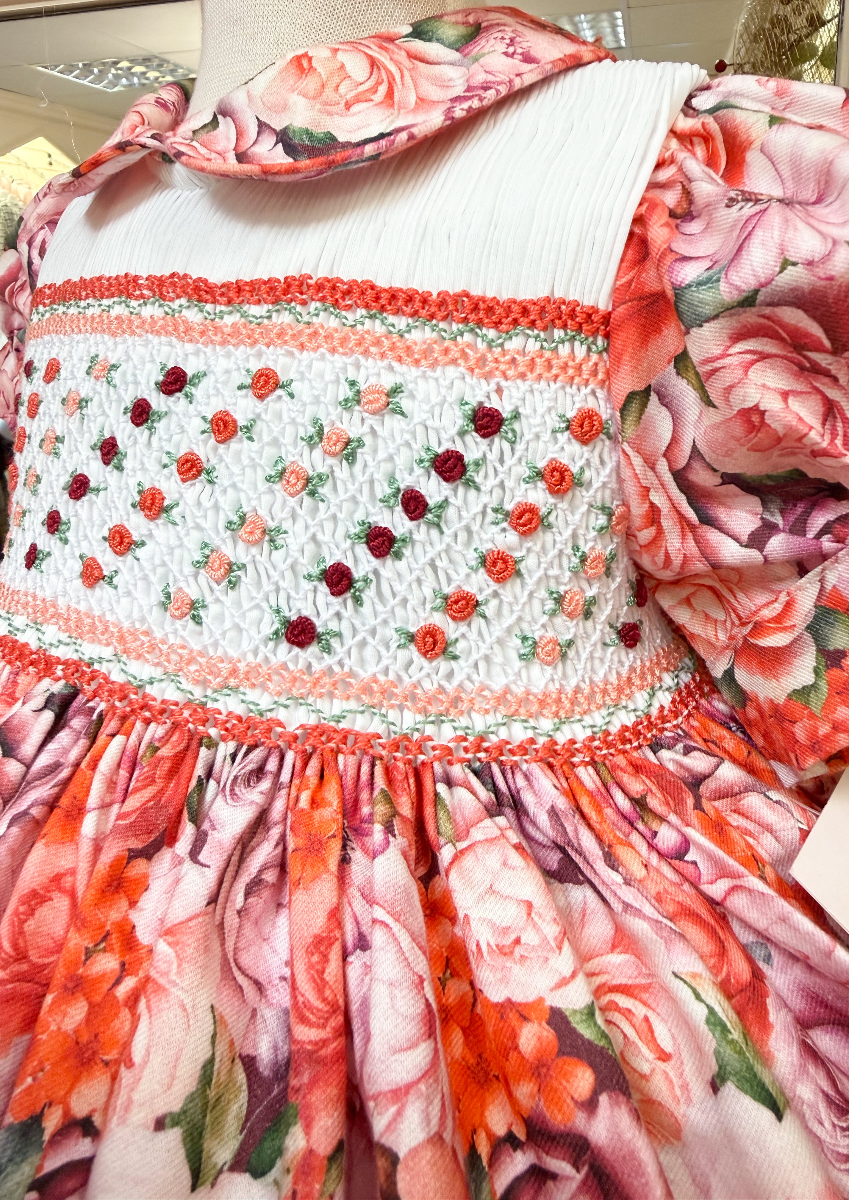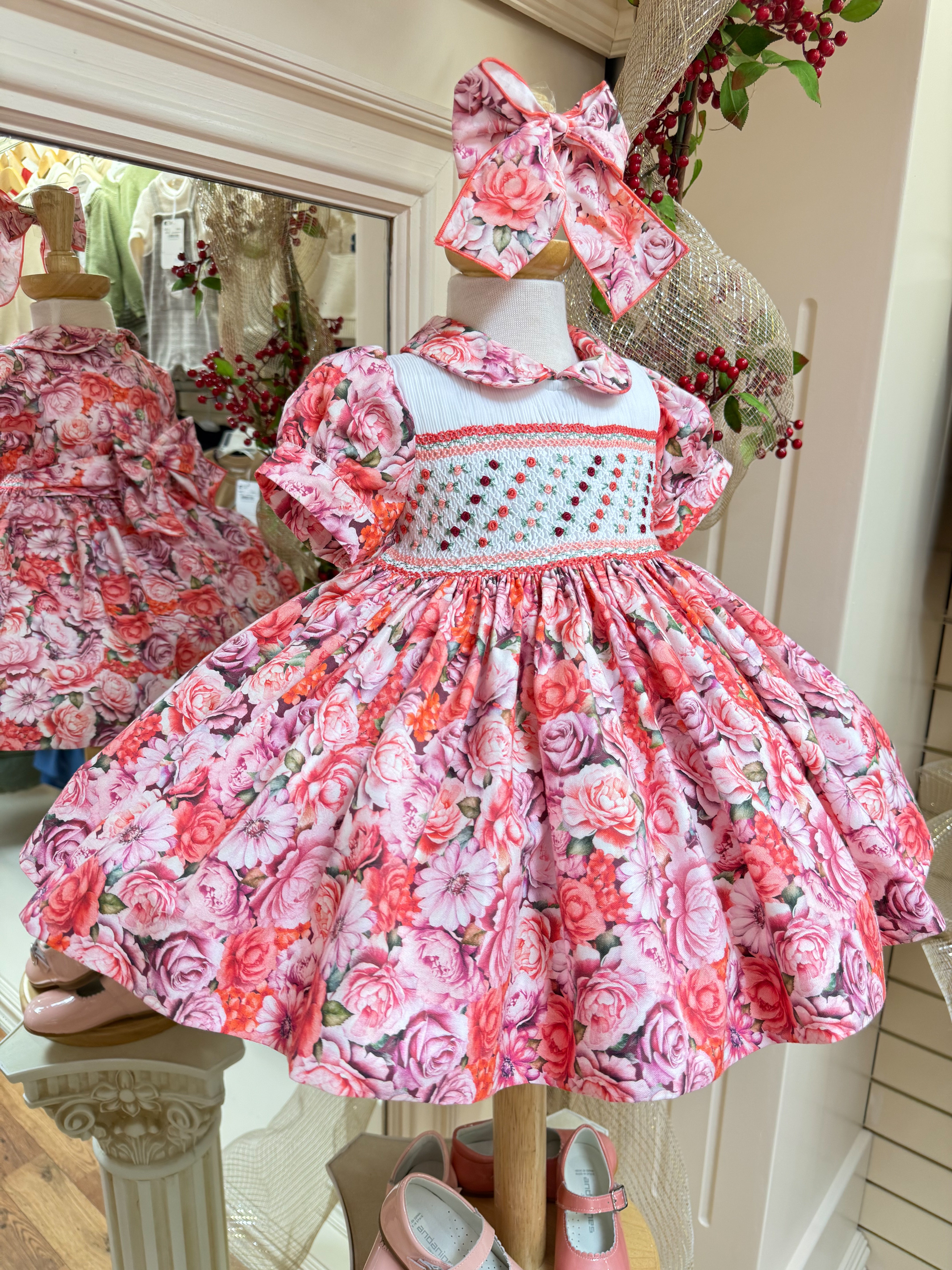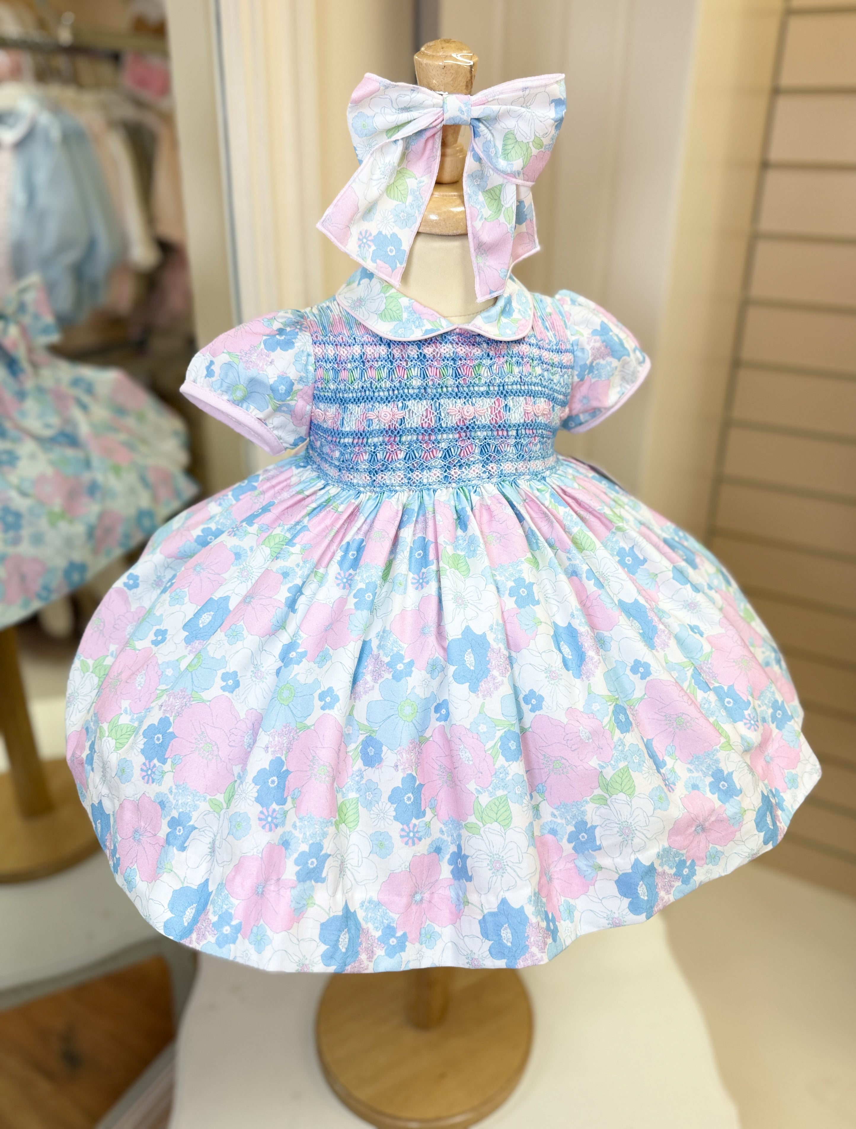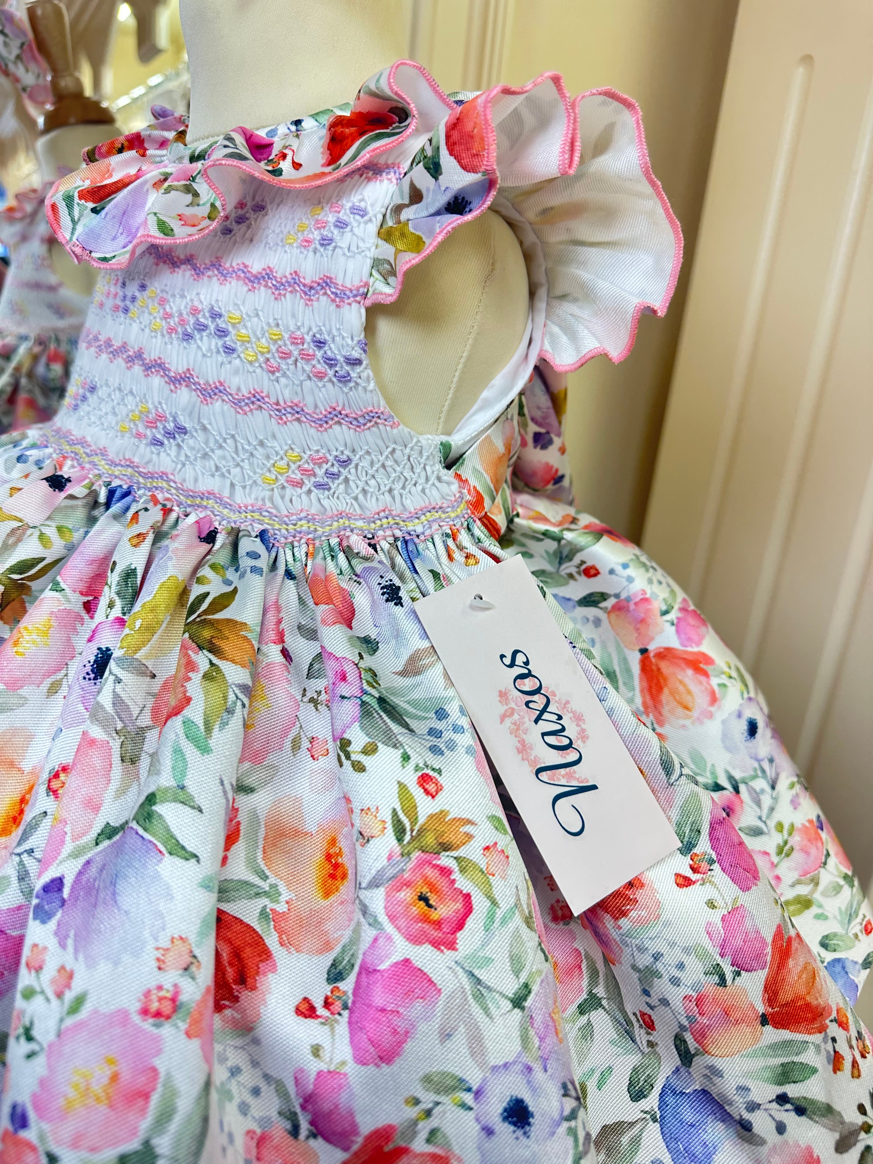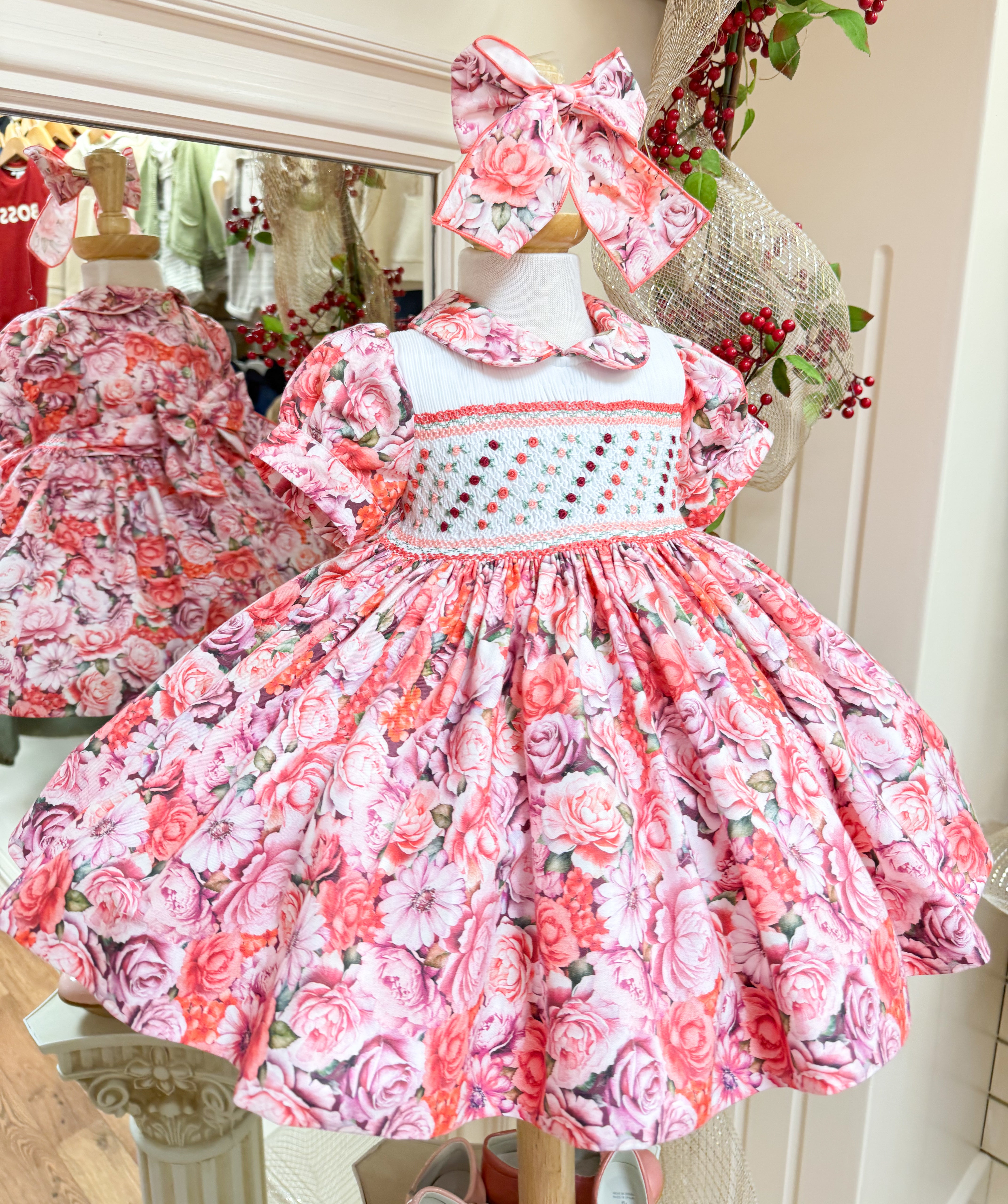 Naxos Blossom Pink Floral Hand Smocked Dress
