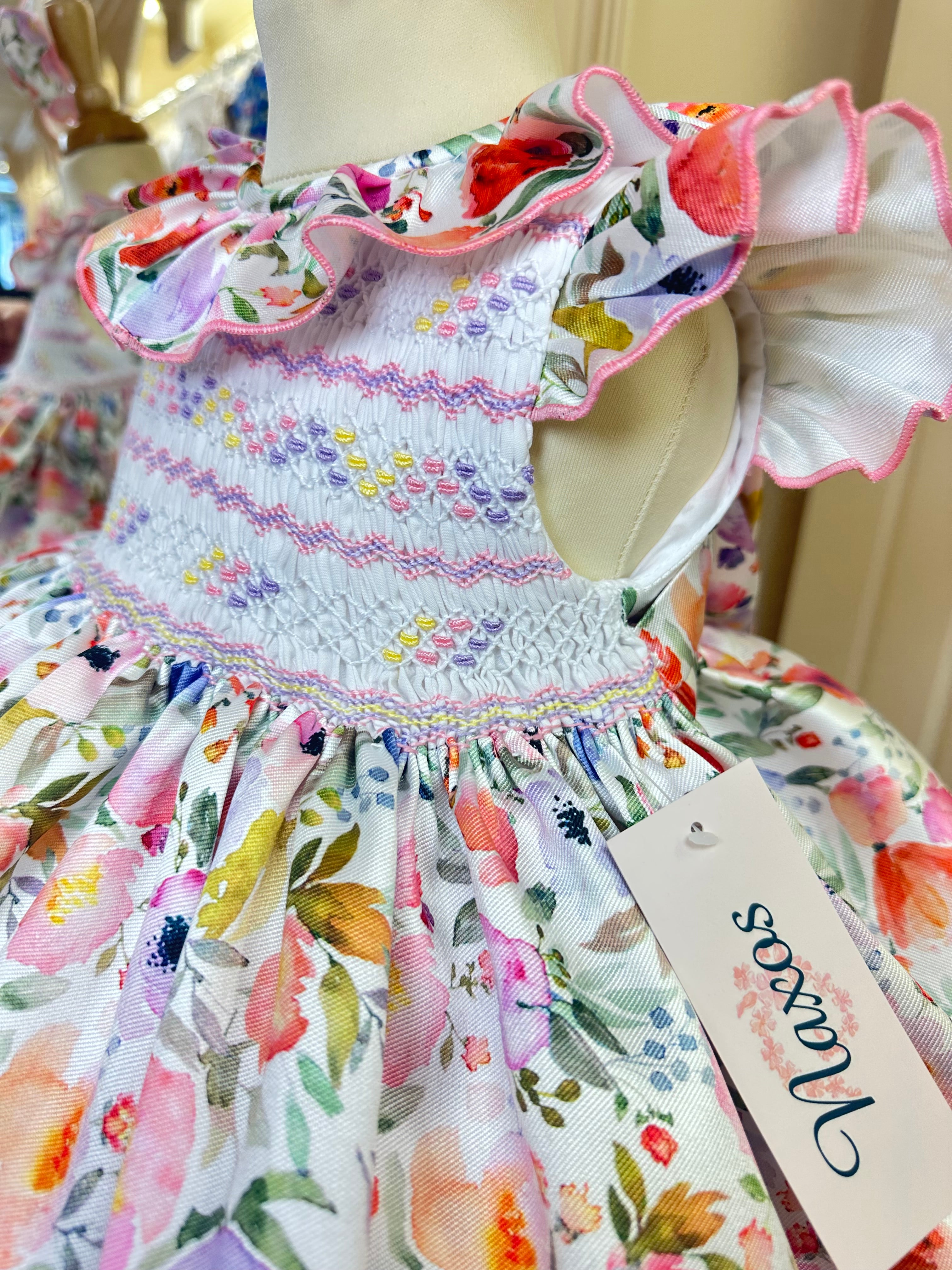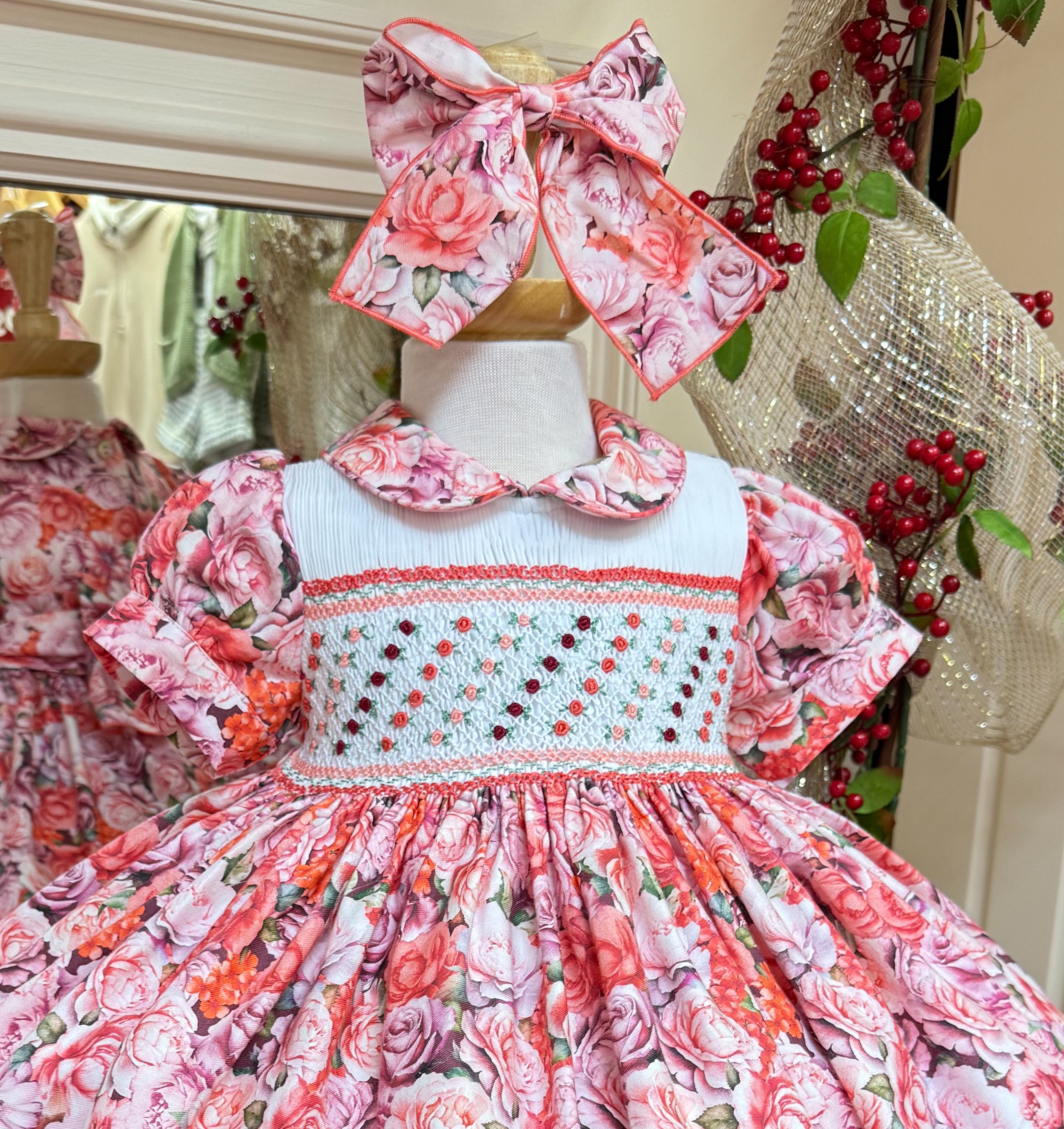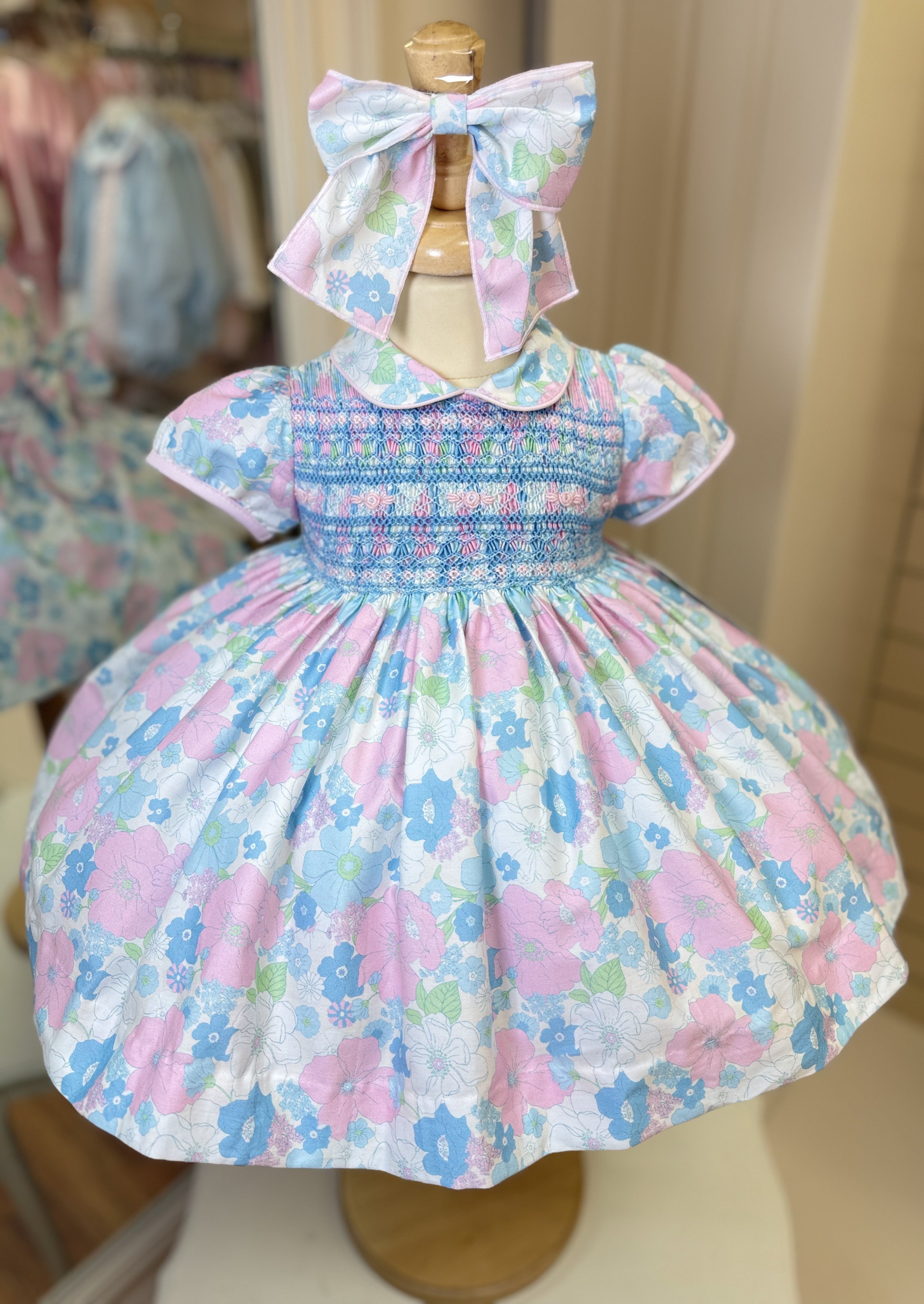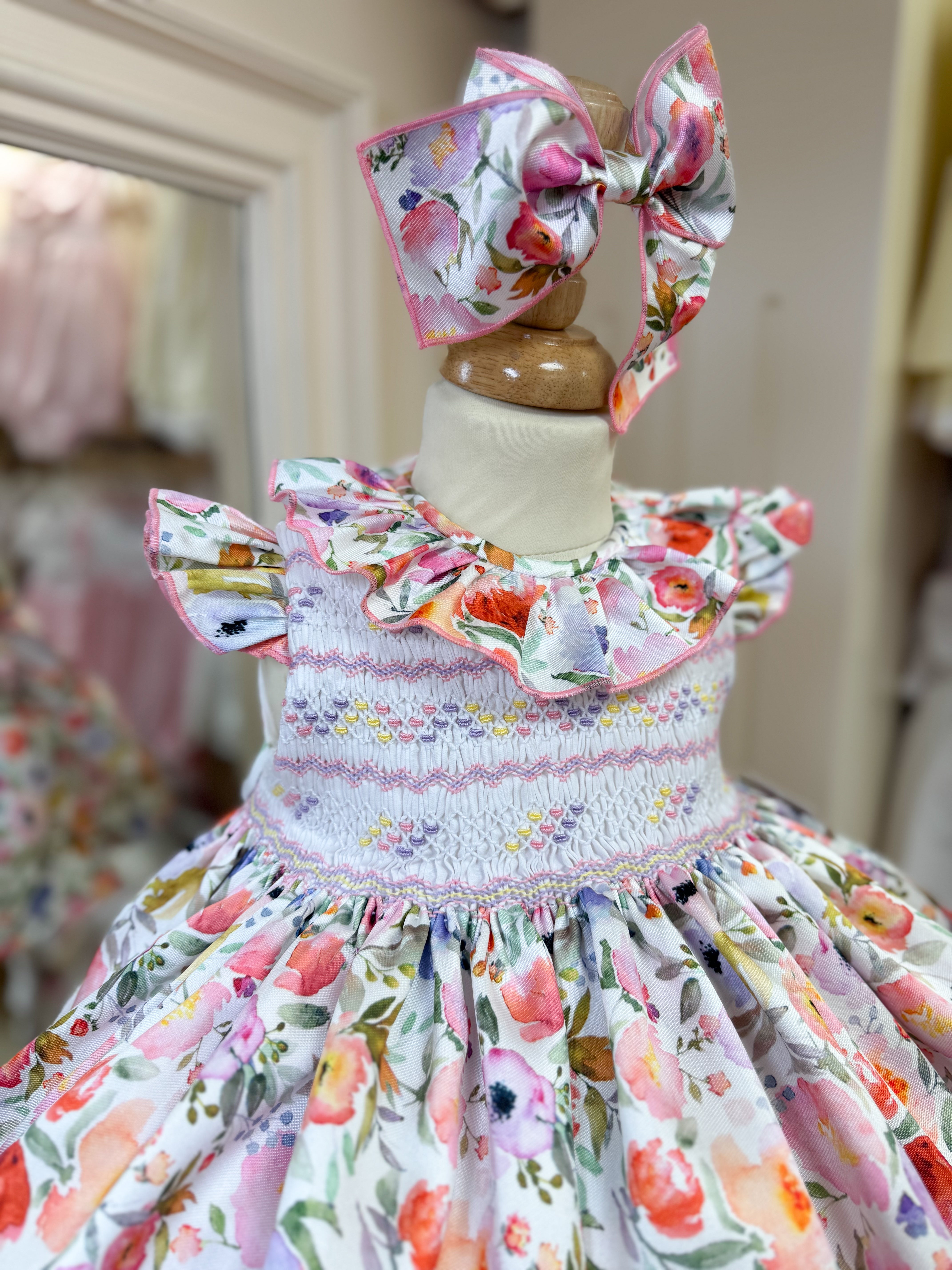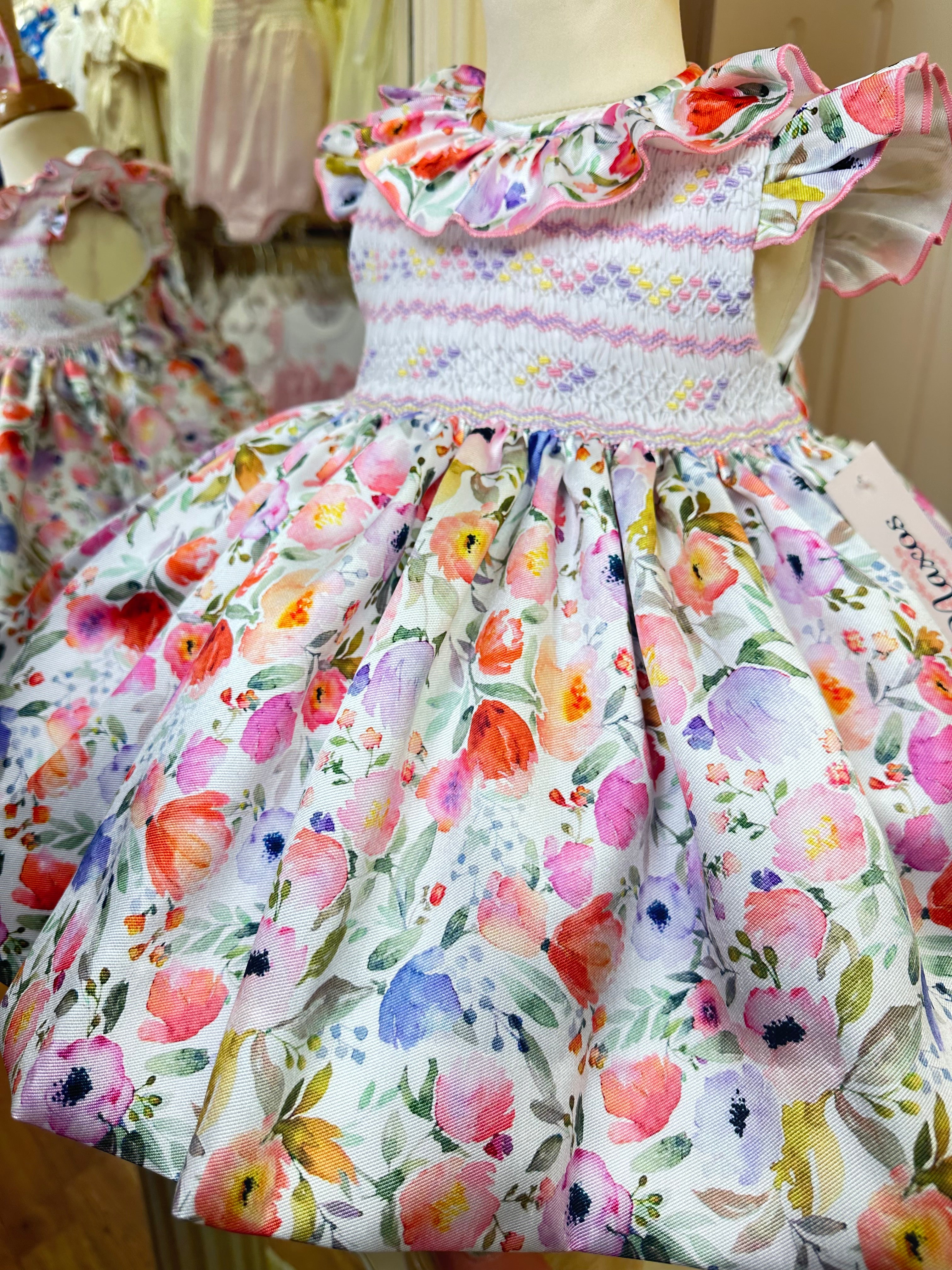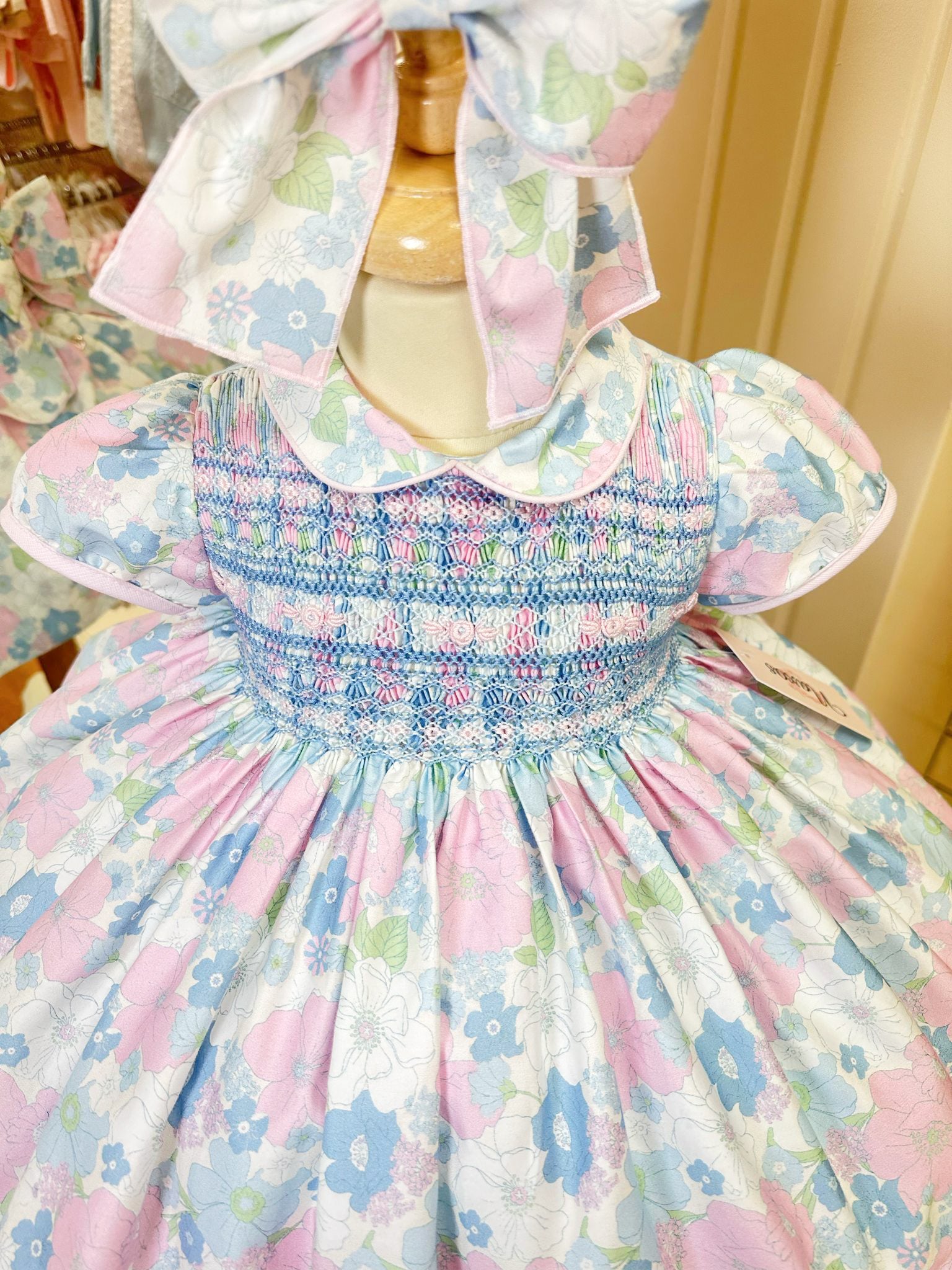 Naxos Blossom Pink Floral Hand Smocked Dress