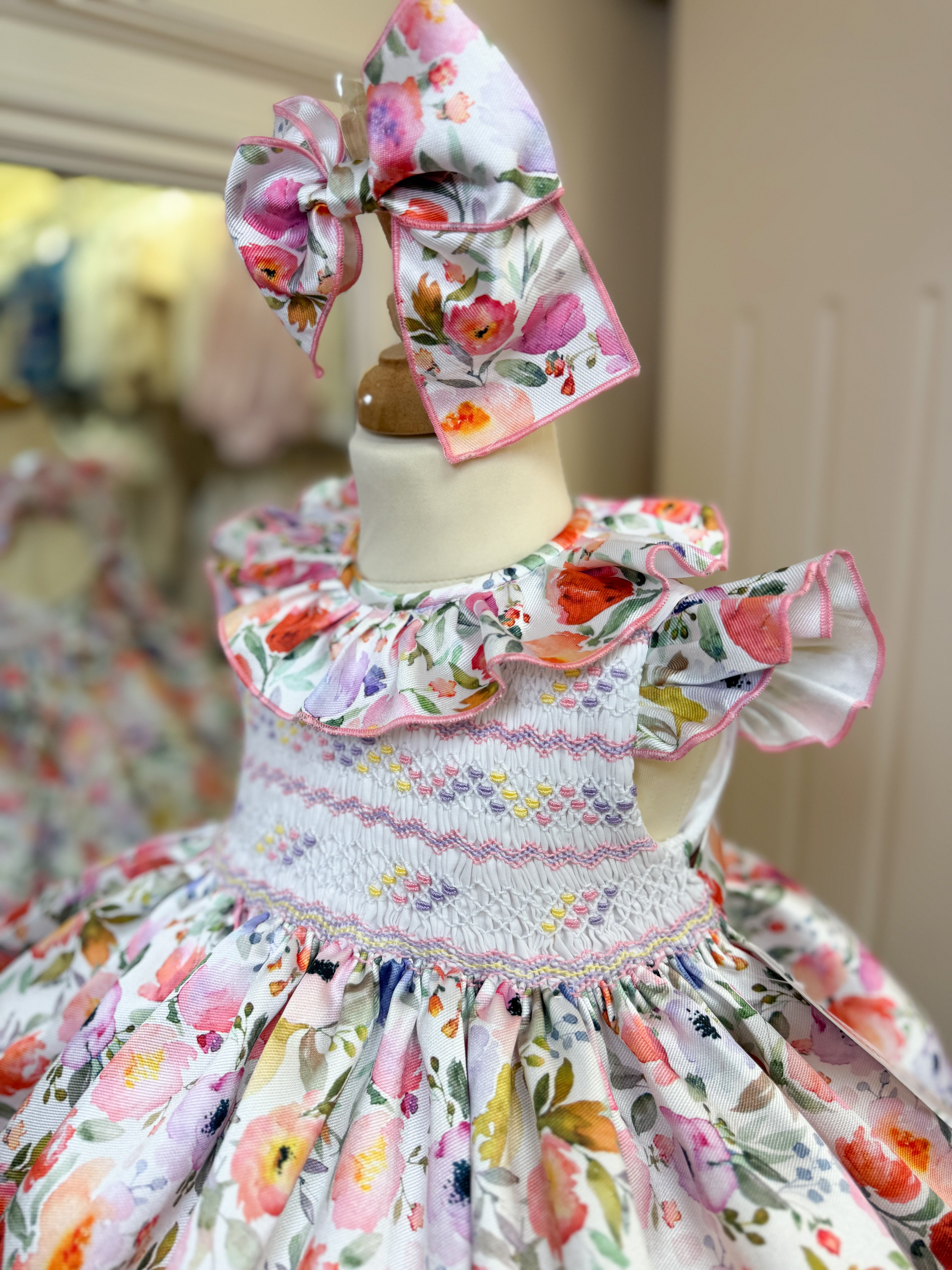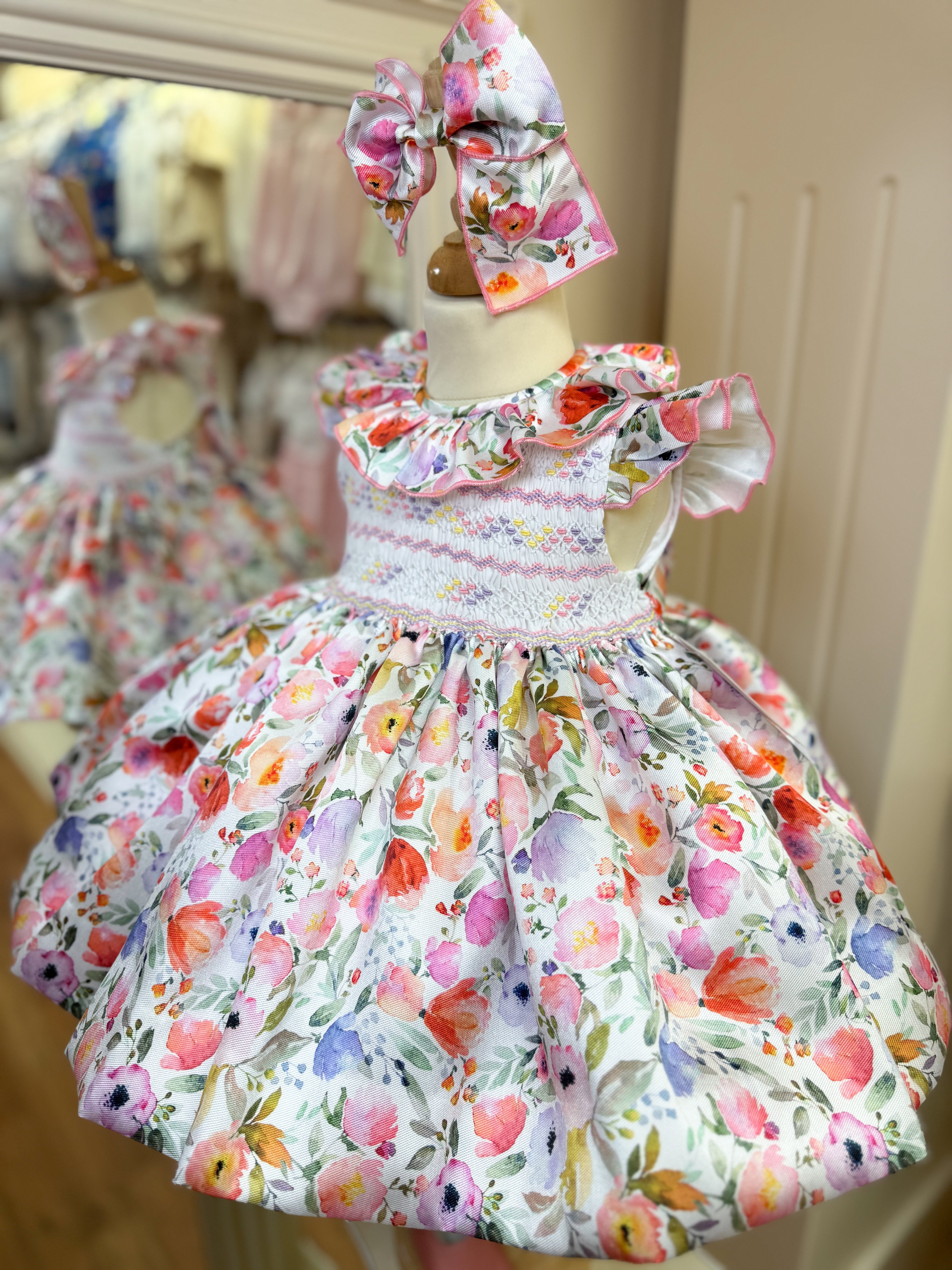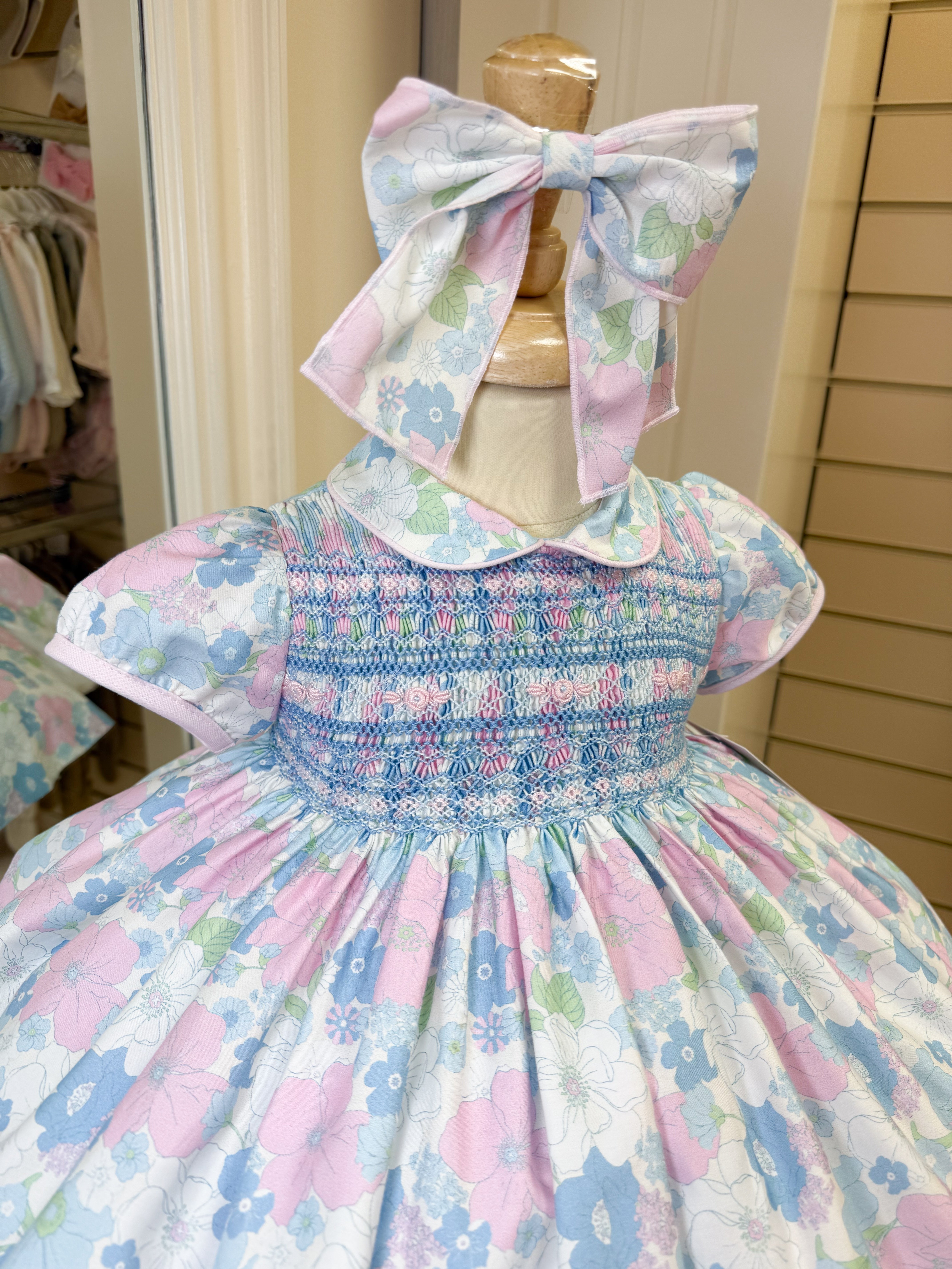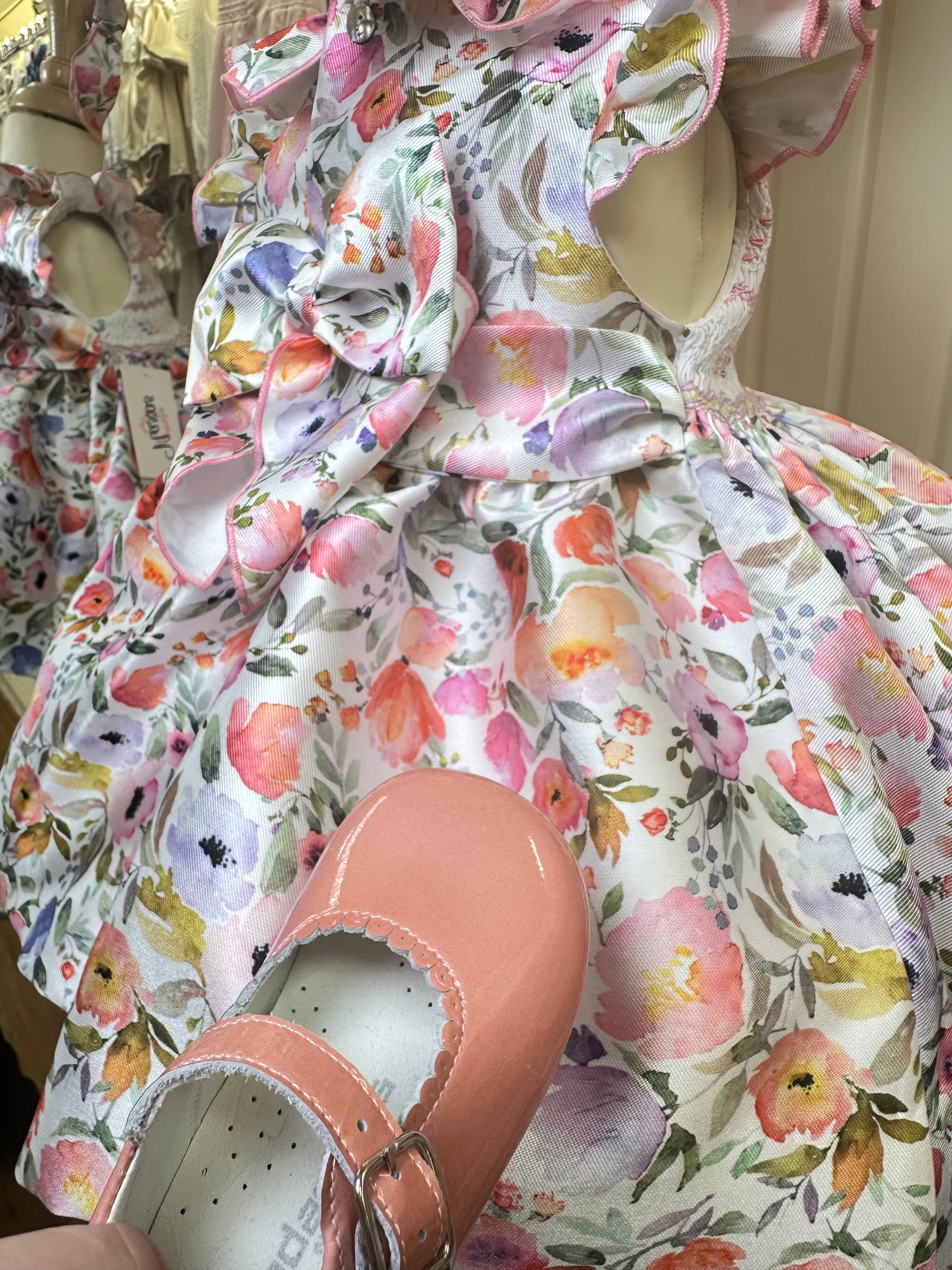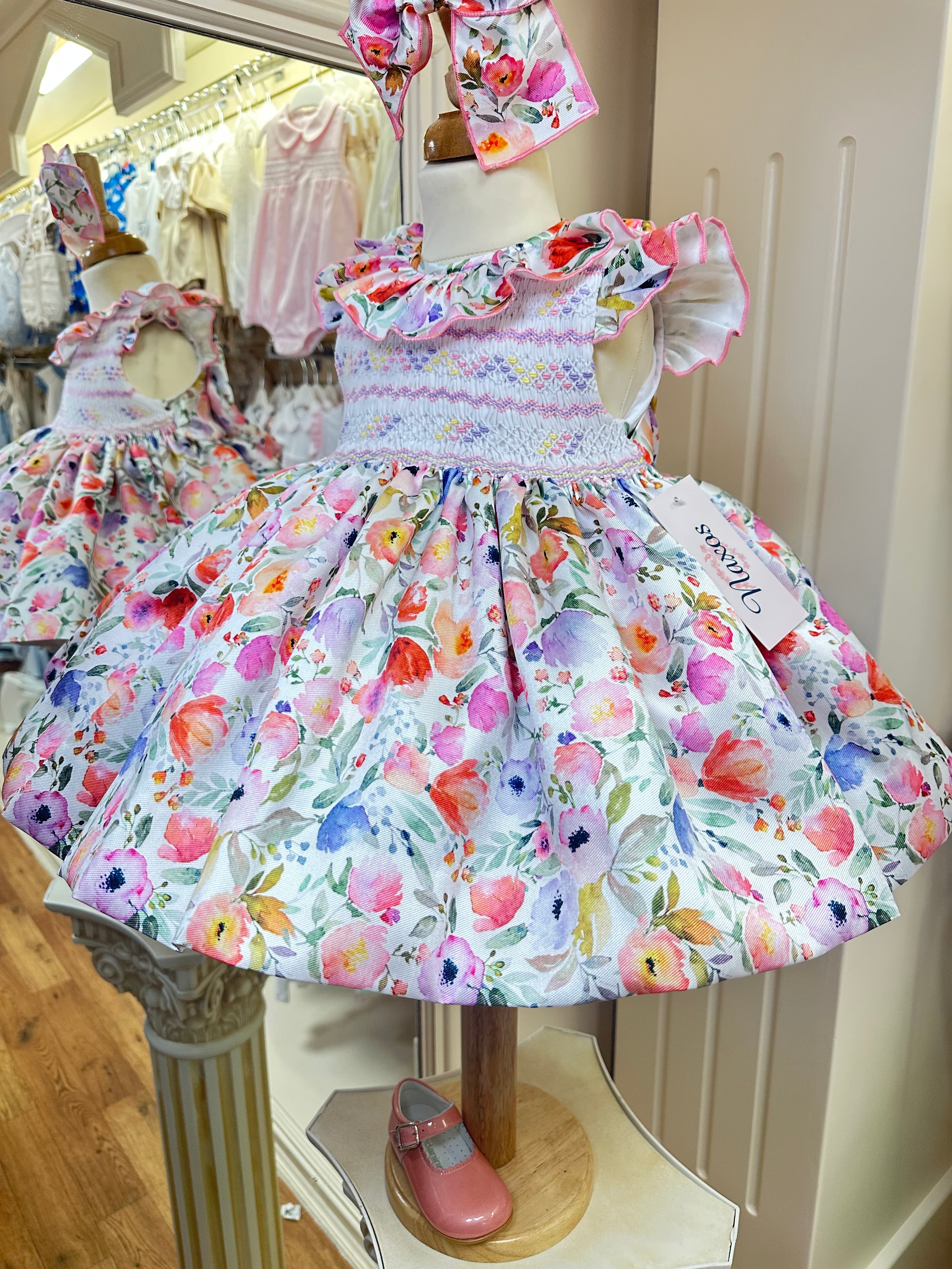 Naxos Blossom Pink Floral Hand Smocked Dress